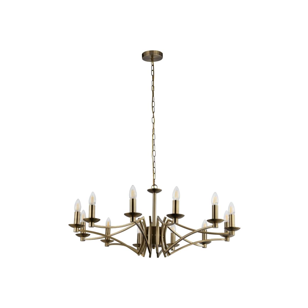 Modern chandelier boasting antique brass finish. The Ascot 12 light chandelier is a modern take on the classic chandelier design. Featuring a stylish modern arm design and antique brass finish. Perfect for both modern and traditional homes, this chandelier will compliment dining areas, lounges and staircases. Choose from either our warm white or cool white E14 bulbs.