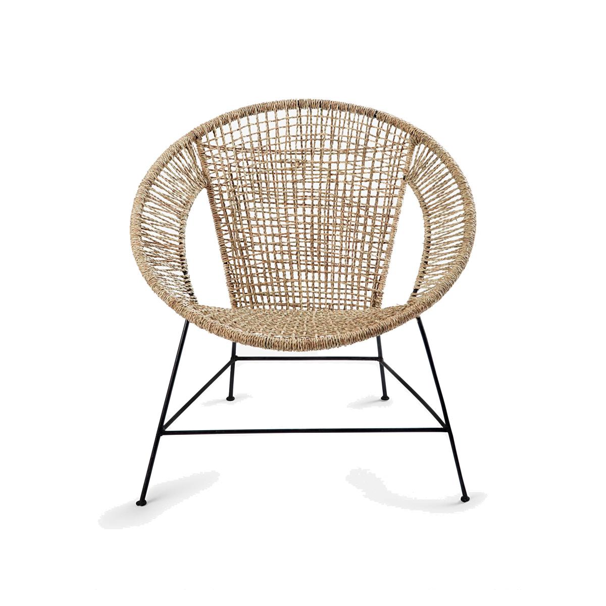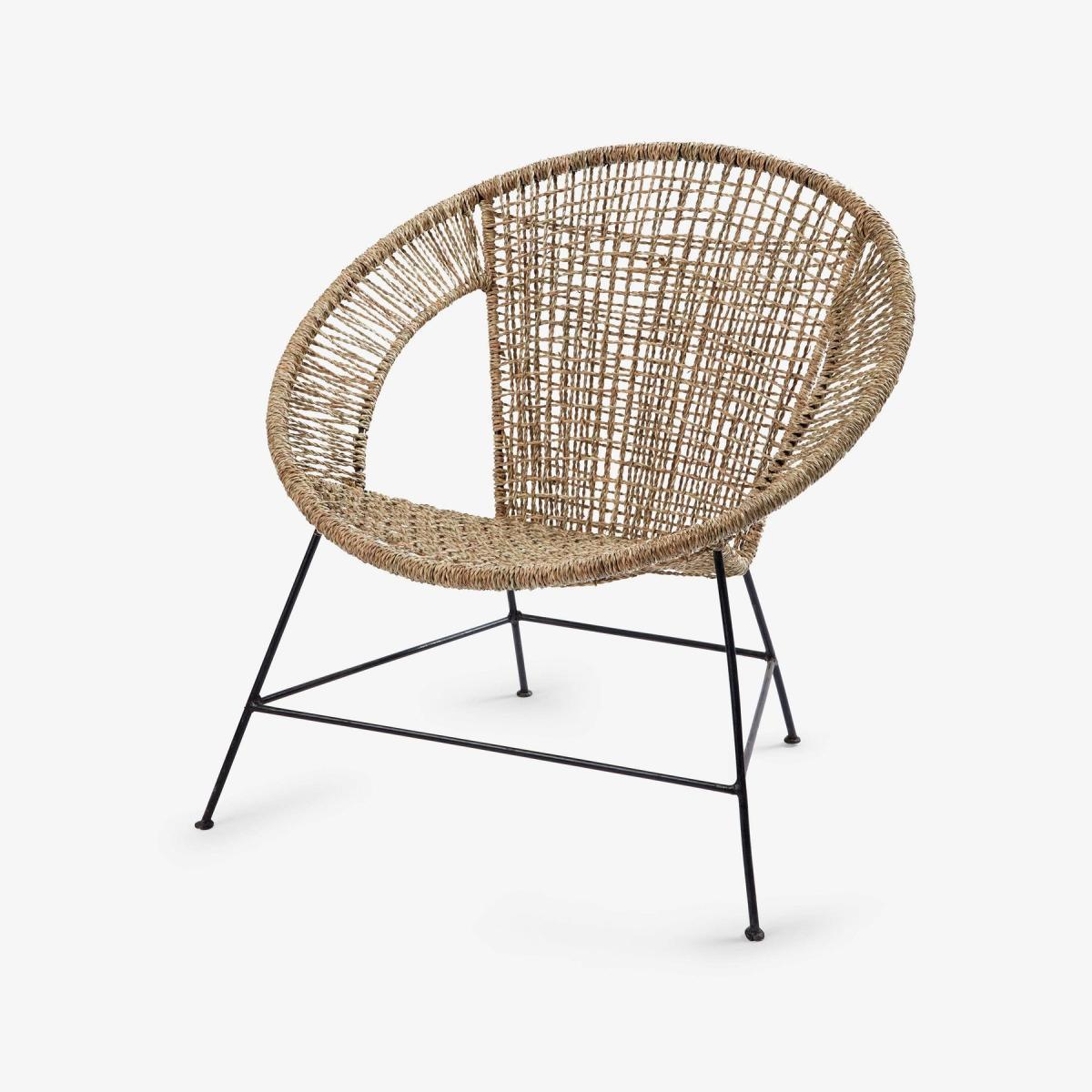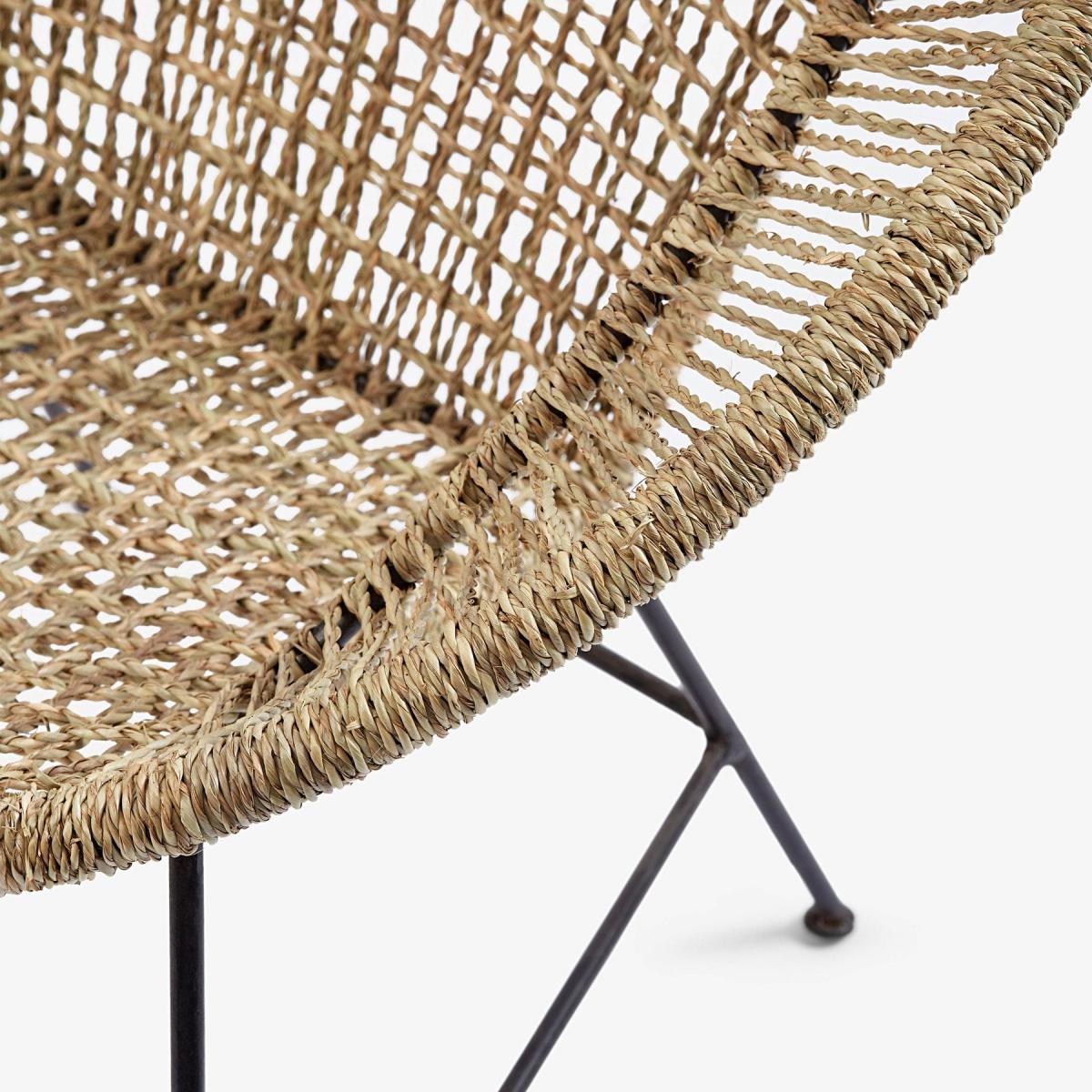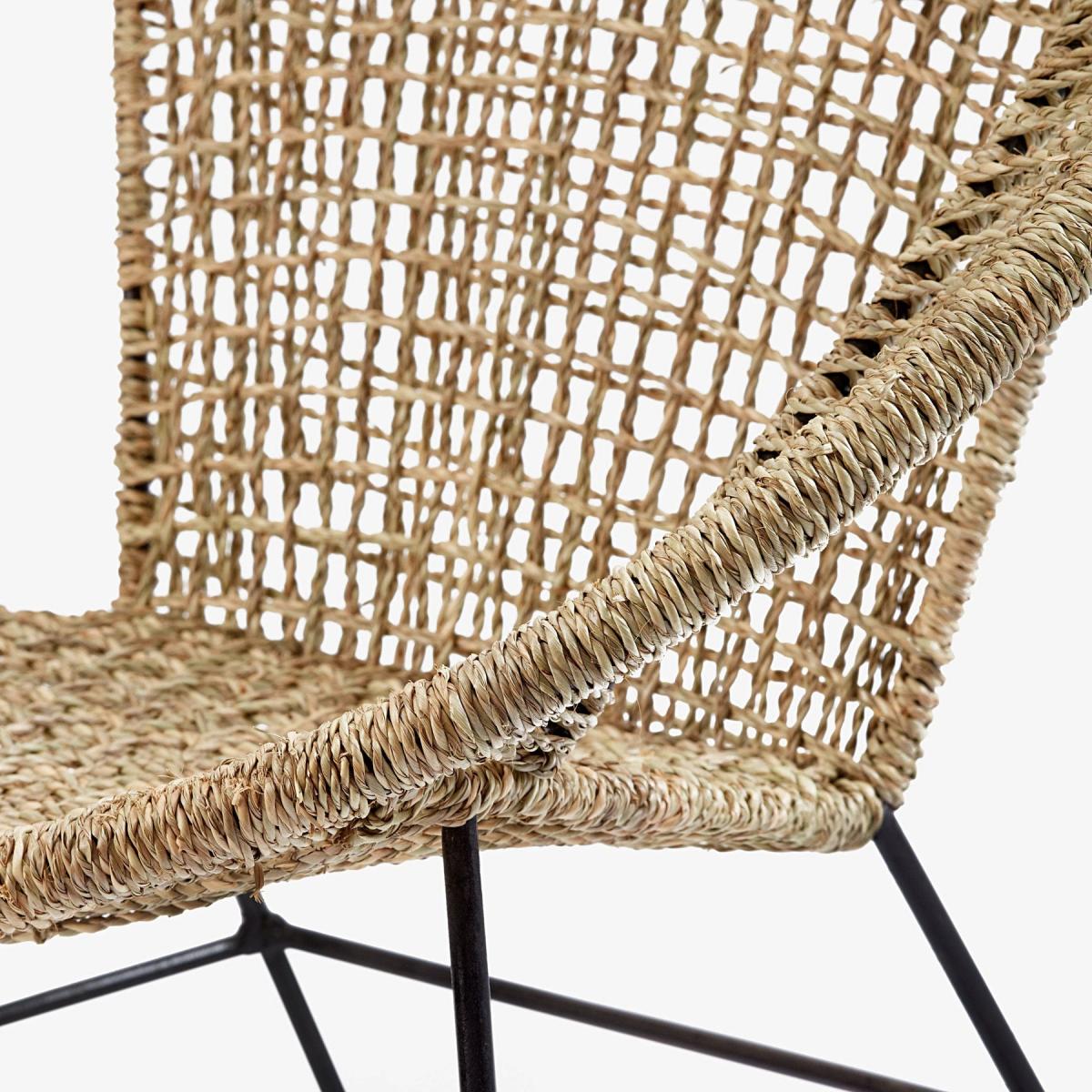 Meet our indoor Ash handmade woven accent chair in black with metal legs. A nod to bohemian style with a modern shape design for a refreshing twist to the norm. The woven detailing showcases the stunning authentic craftsmanship of the design that will age beautifully over the years. Will effortlessly suit bohemian decors. Use in the conservatory or garden room to relax in style.