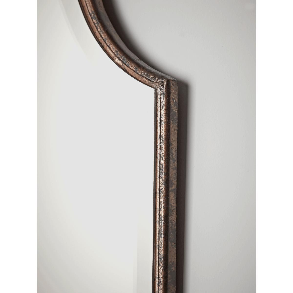 With a burnished copper frame, this mirror will add a decorative element to any room, reflecting the light in your space. Each frame features a curved design to the top and bottom, with two straight edges.