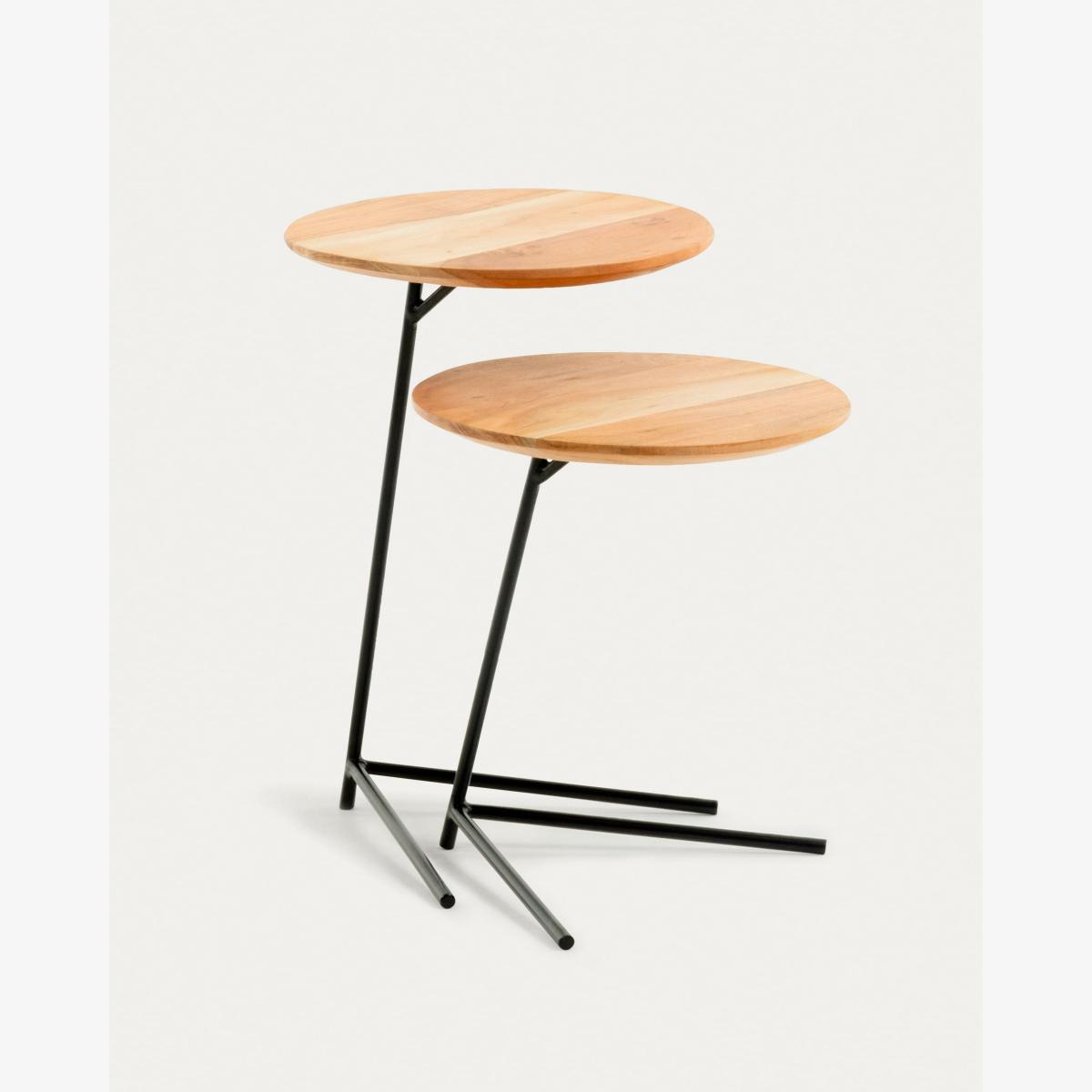 Asha set of 2 solid acacia wood and steel side table, Ø 40 cm / Ø 40 cm