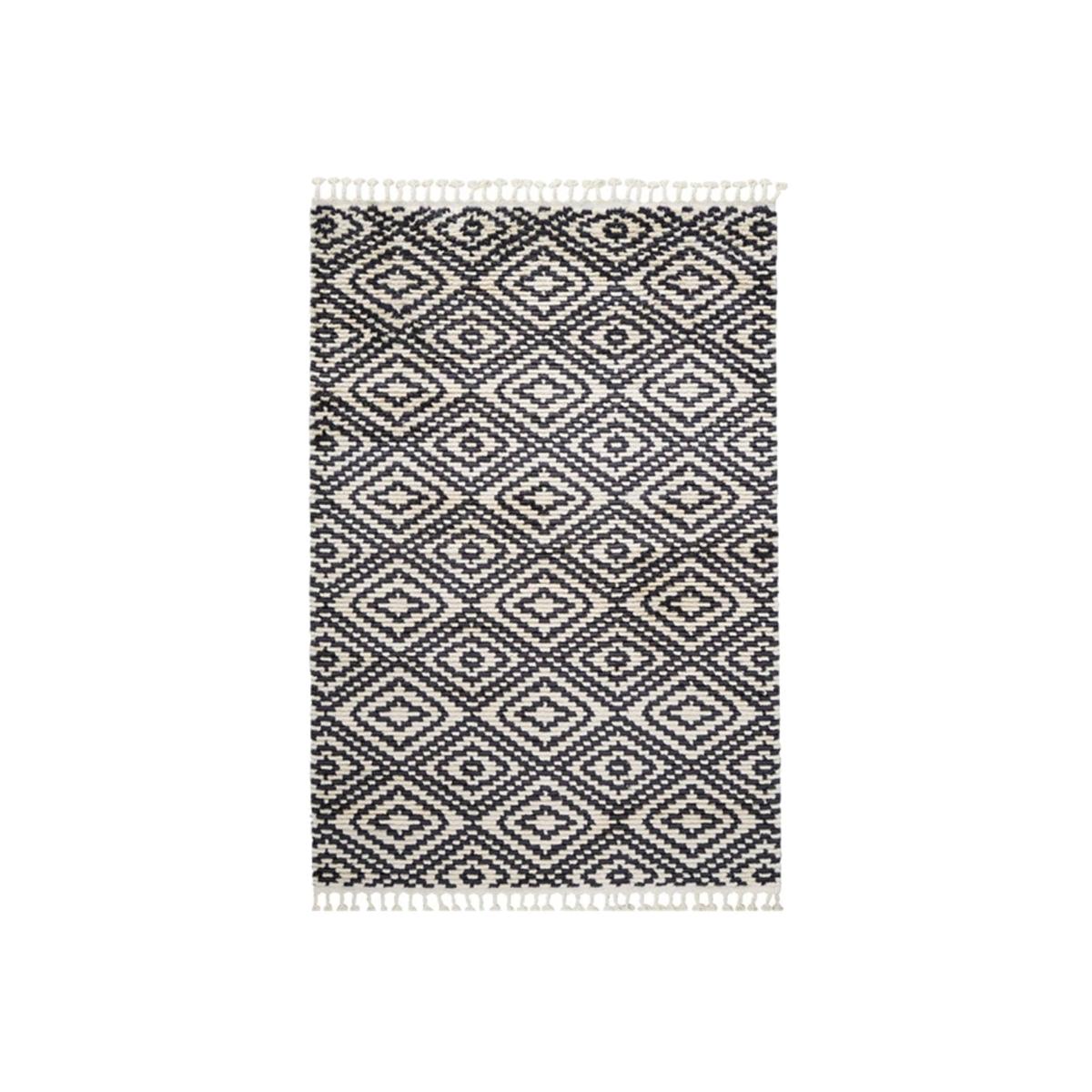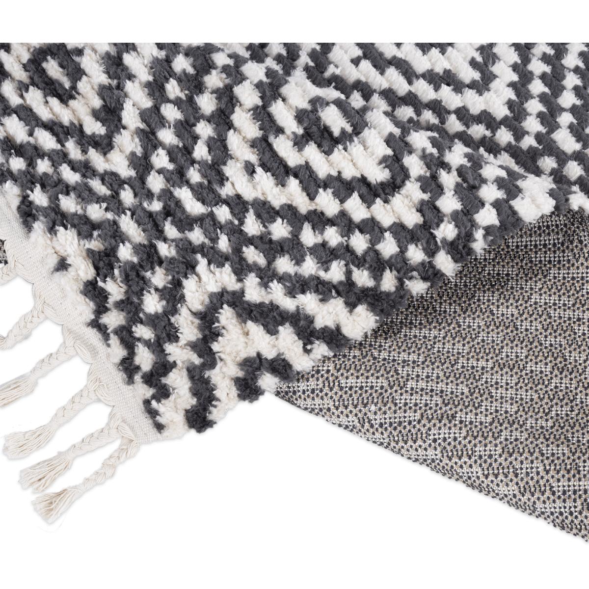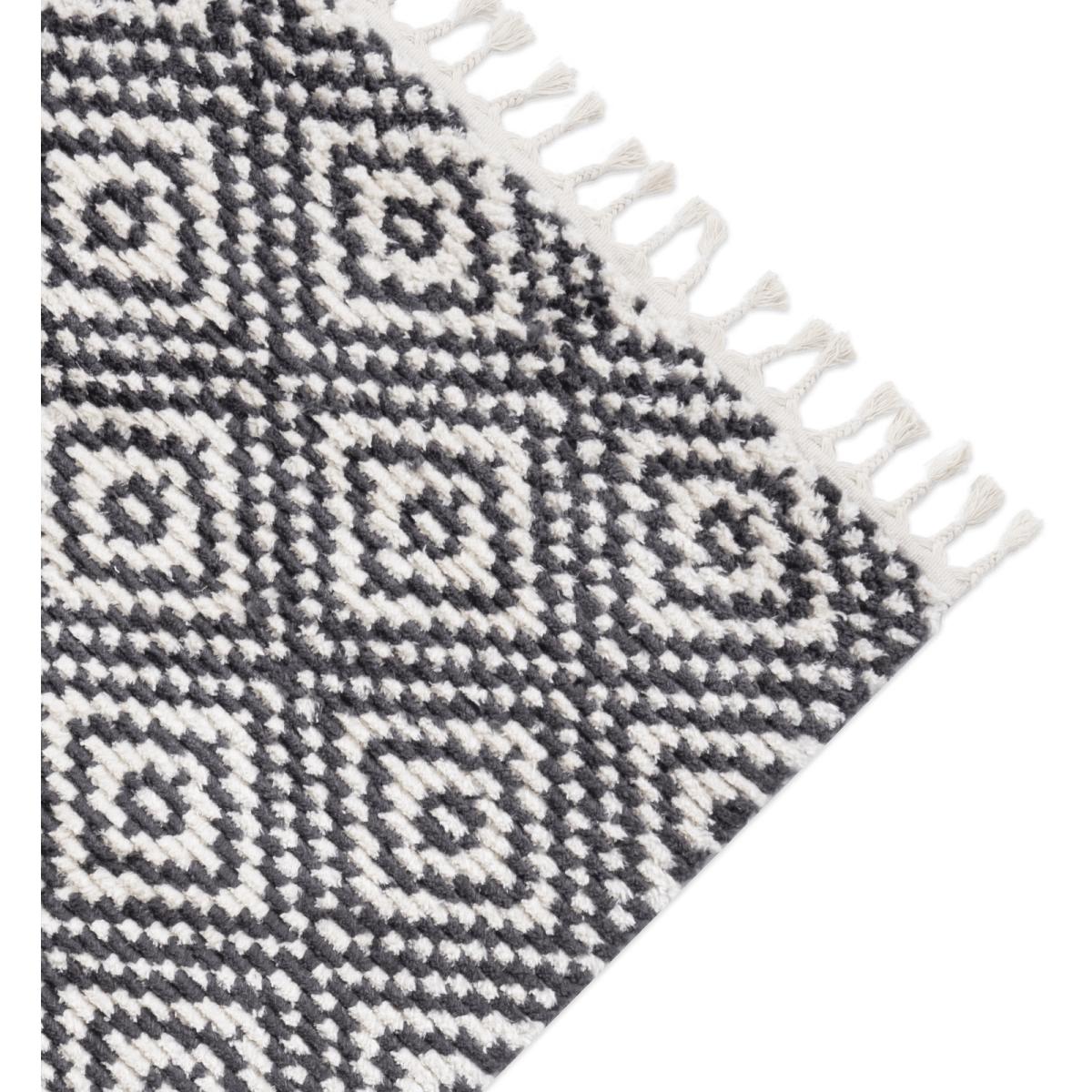 Our large Ashberg graphic geometric rug adds boho charm to your home with tassled edges, and in neutral tones to suit any palette.