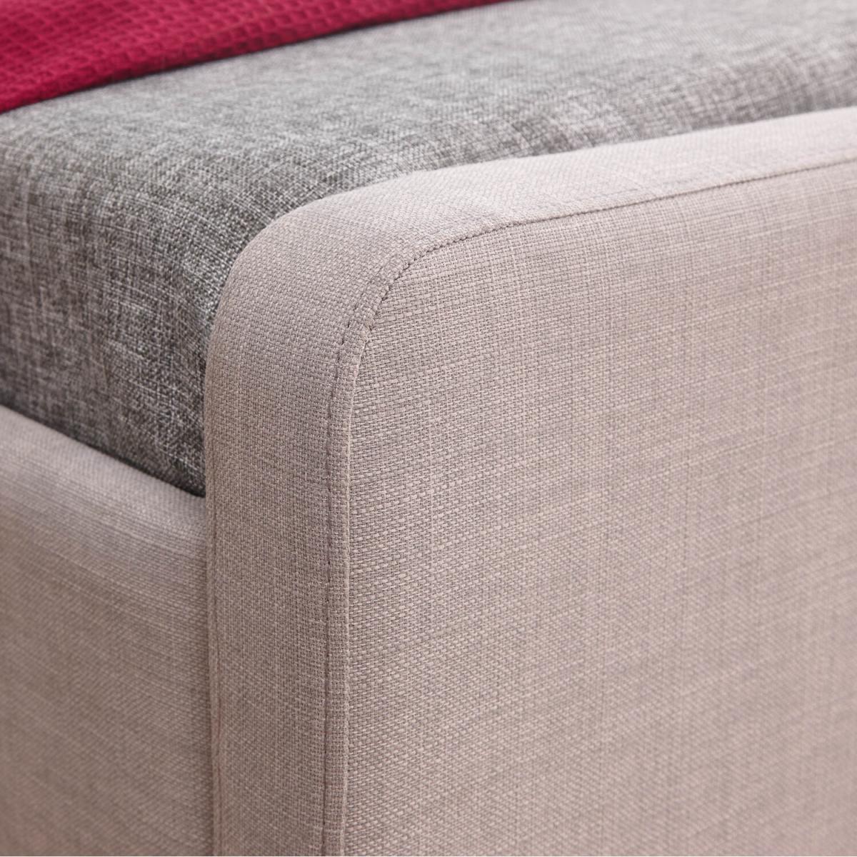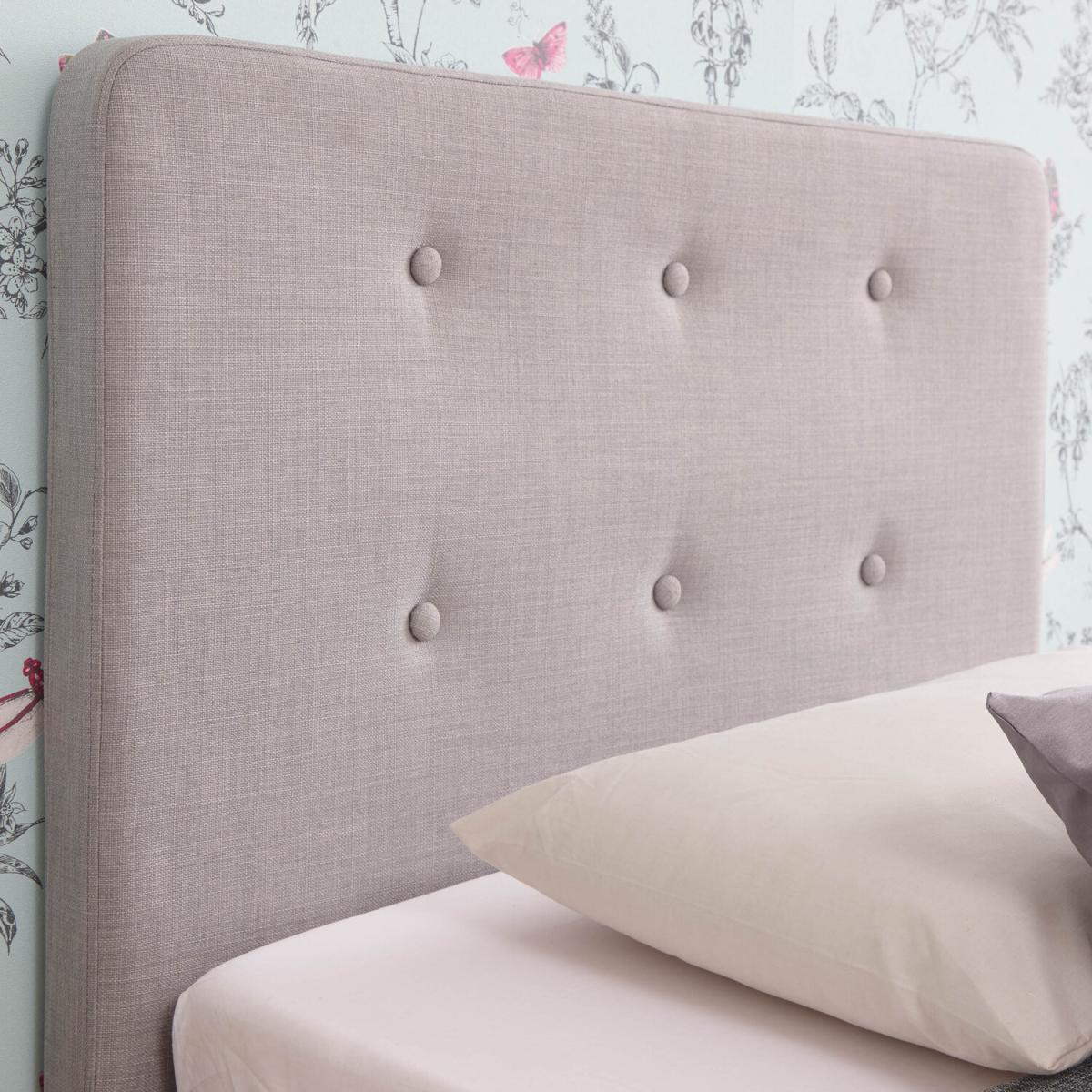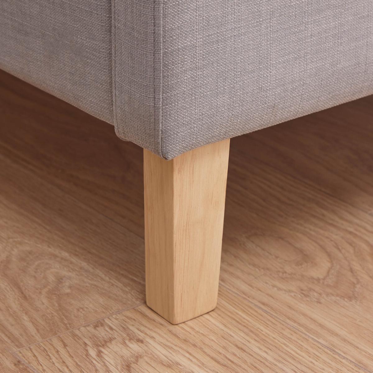 The perfect choice for a contemporary home, this retro-inspired bedframe personifies effortless chic. The simple padded frame is supported on pale wooden legs and covered with a smart grey hopsack. A neat, buttoned headboard showcases restrained modern style. A great match for a no-fuss, minimalist setting and can be accessorized with colourful fabrics and linen to suit.
