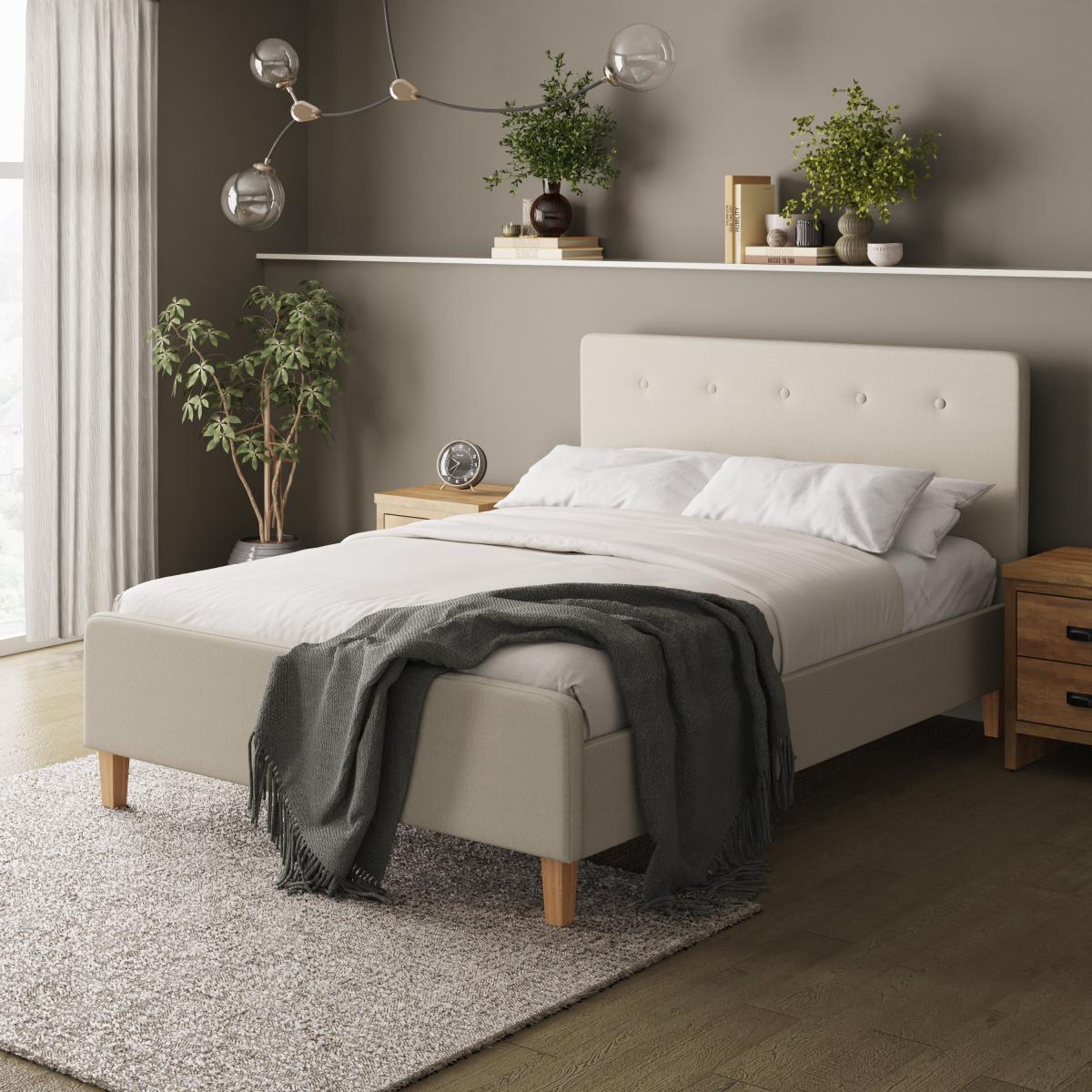 I love the Ashbourne fabric bed in natural for its sleek, understated look that easily complements both modern and traditional interiors. Its neutral tone offers versatility, making it an ideal centrepiece for a cozy, minimalist bedroom or a more eclectic space styled with colourful or textured accents. Practical styling tips include pairing it with layered bedding to add depth or mixing it with wooden or rattan furniture for a natural, warm feel. This bed frame works particularly well in relaxed, cosy bedrooms and can be dressed up with throw pillows and soft lighting for a welcoming vibe. Its simple elegance also makes it easy to update over time with accessories or new textiles.