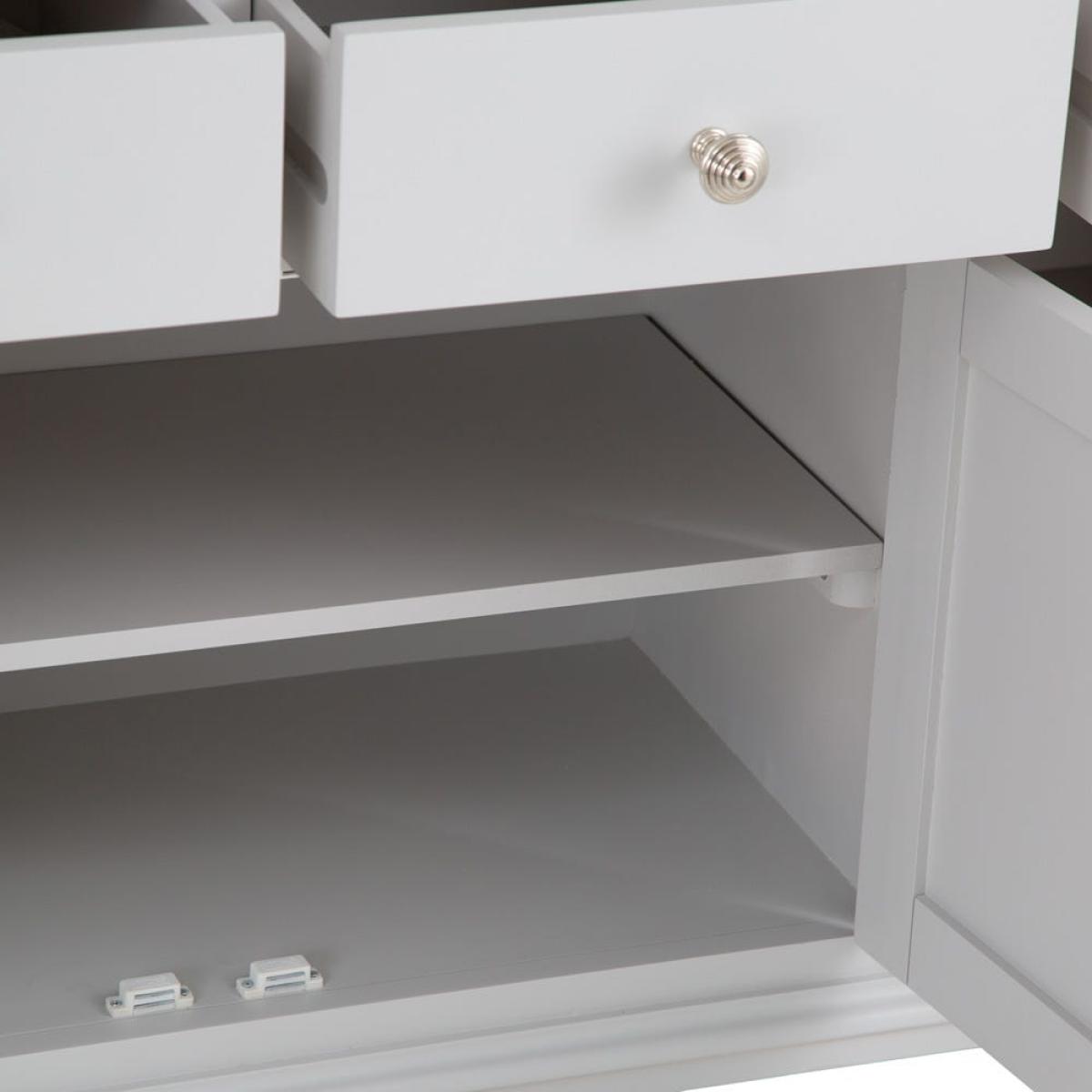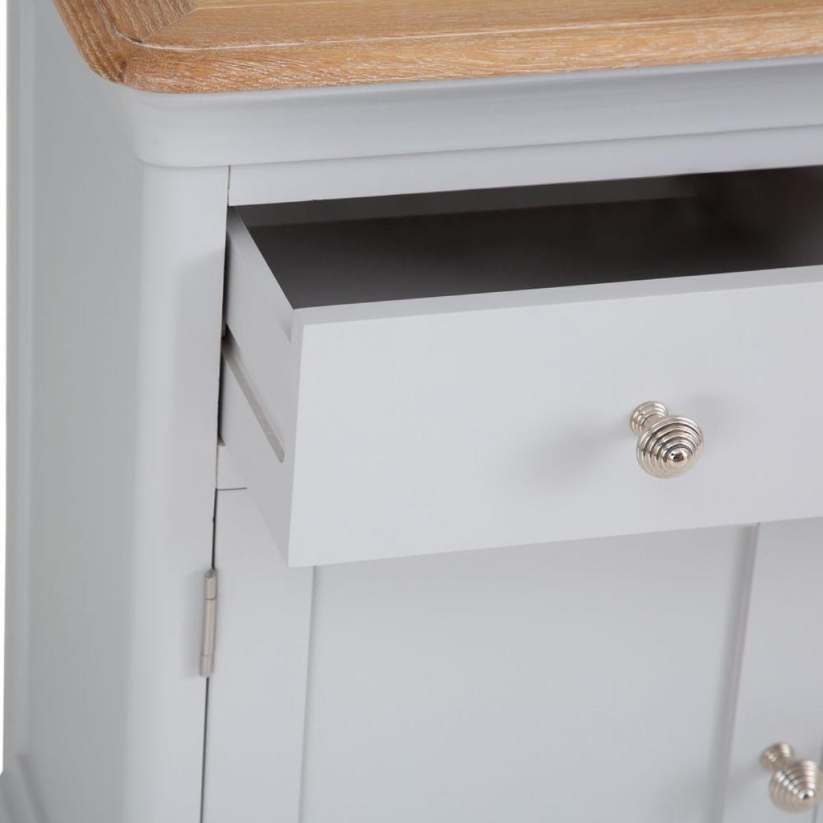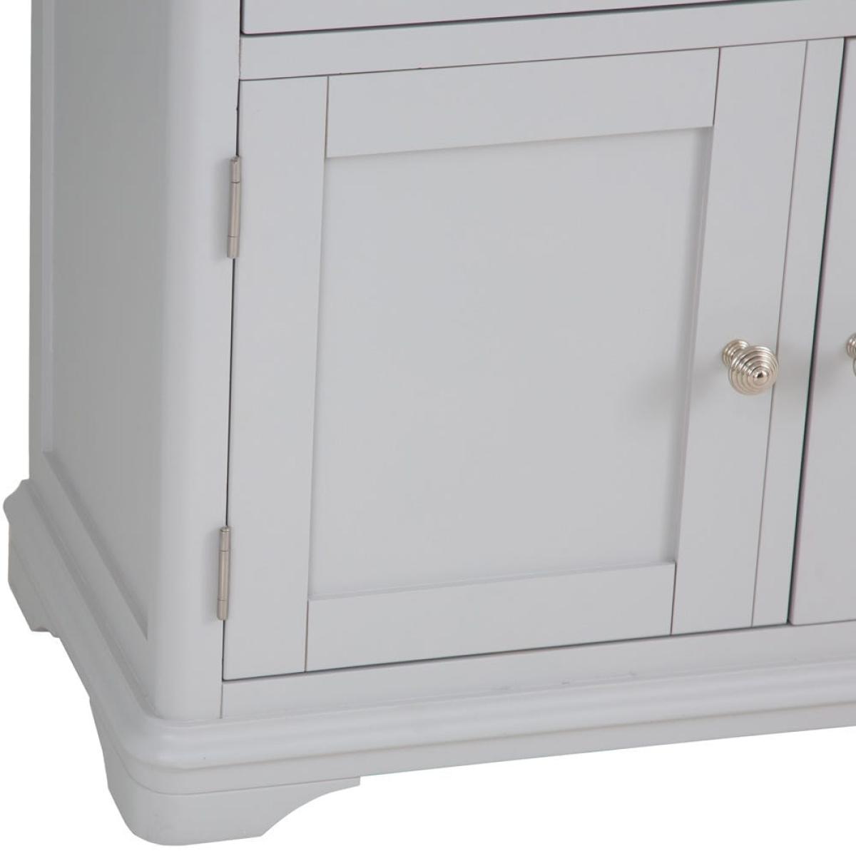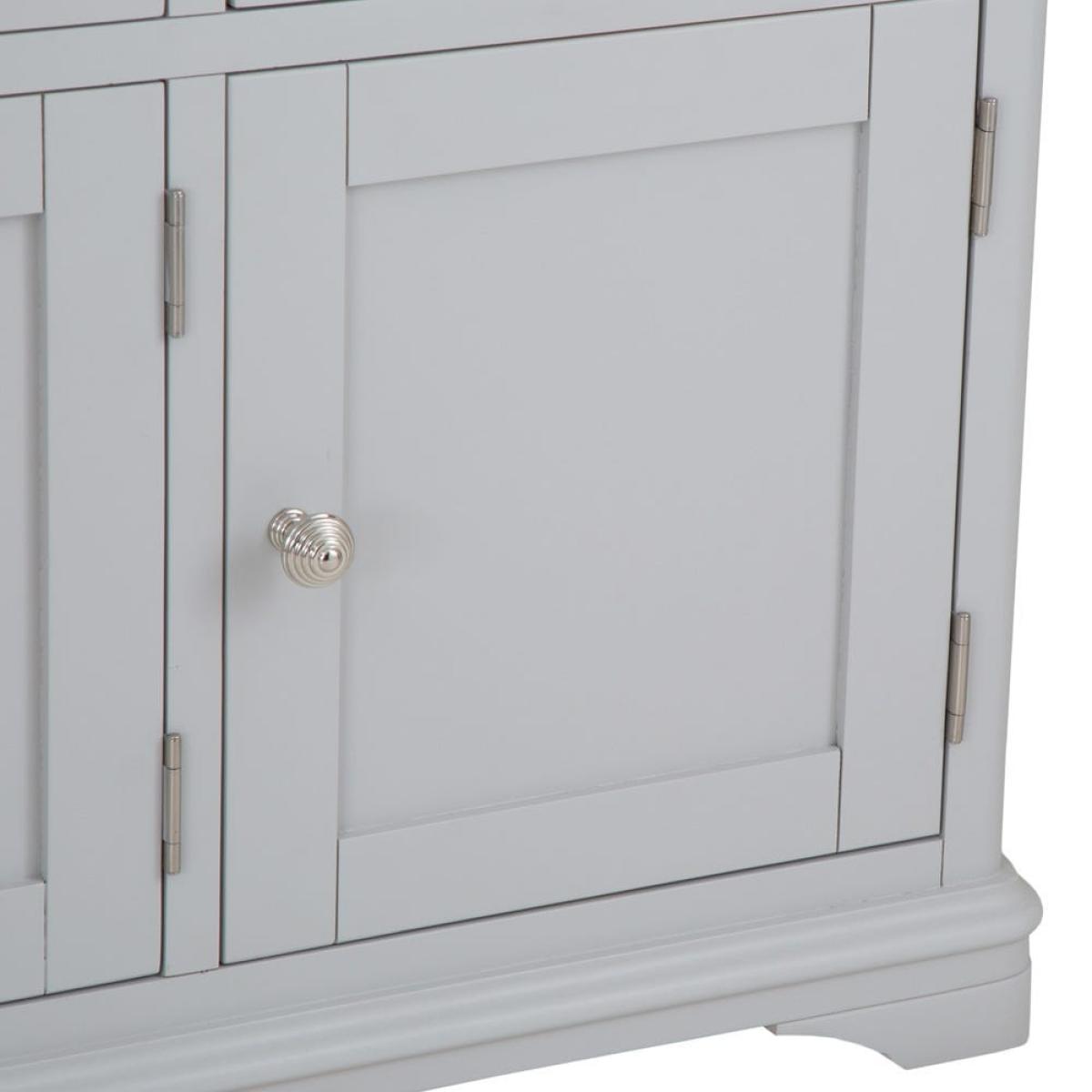 You’ll have more storage space than you’ll know what to do with when you purchase the Ashbourne grey painted 3 door large sideboard. Who knew a simple sideboard could make such a statement?. Stack the shelves with all that surplus glassware you’ve been struggling to find a home for and arrange the oak top with all your favourite vases and ornaments. Despite its impressive size, the subtle grey finish of this sturdy unit blends in seamlessly with neutral white tones or bright, vibrant decors. Whatever look you’re going for, this sideboard will add surface space, storage solutions and style.