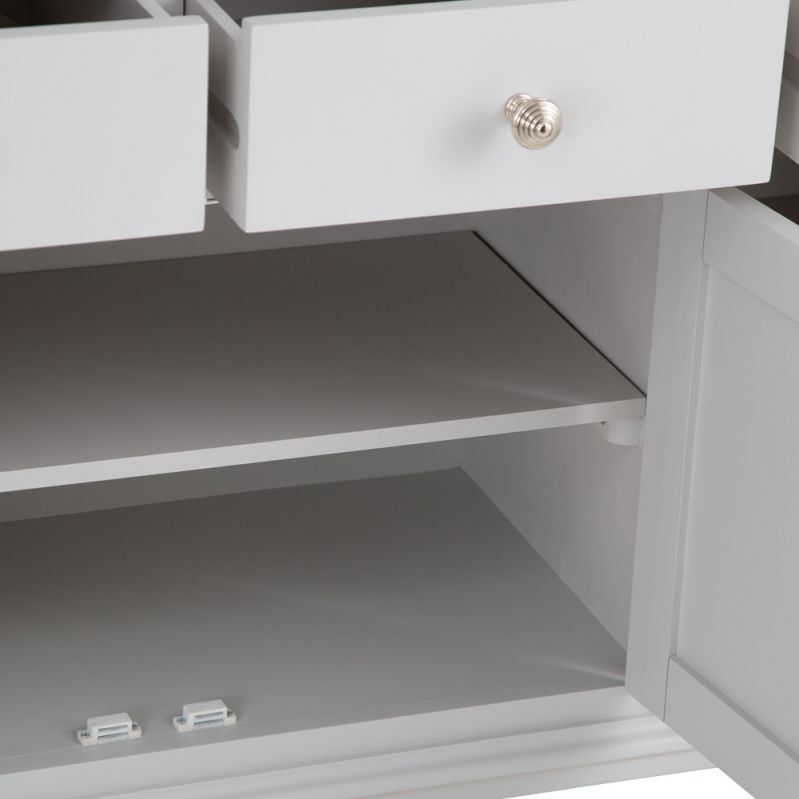 Sometimes furniture just takes your breath away. Our gorgeous new Ashbourne Grey Painted Collection combines luxurious features with an affordable price tag, to create a range of furniture that's sure to leave family and friends asking; ″So, where did you get that from?″ The perfect blend of contemporary styling and classic trends, Ashbourne Grey features a curved, lime-washed top surface and intricately detailed chrome knob handles, alongside French-inspired bracket feet which compliment the high-end look and feel that this collection exudes. The soft grey painted finish is a fabulously neutral colour which blends seamlessly in to various interior design styles. We're really excited about this new Collection, be one of the first to get your hands on it.