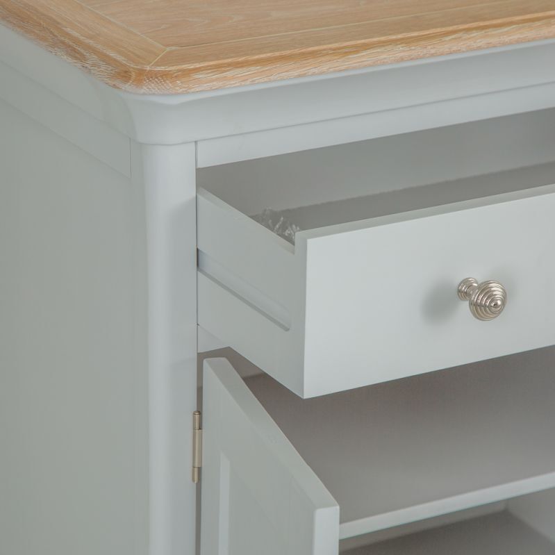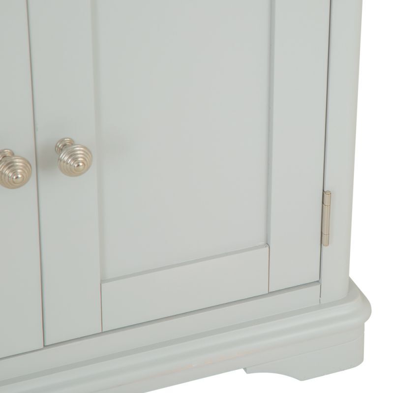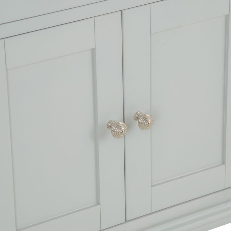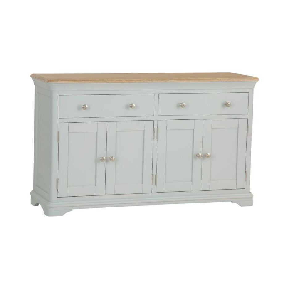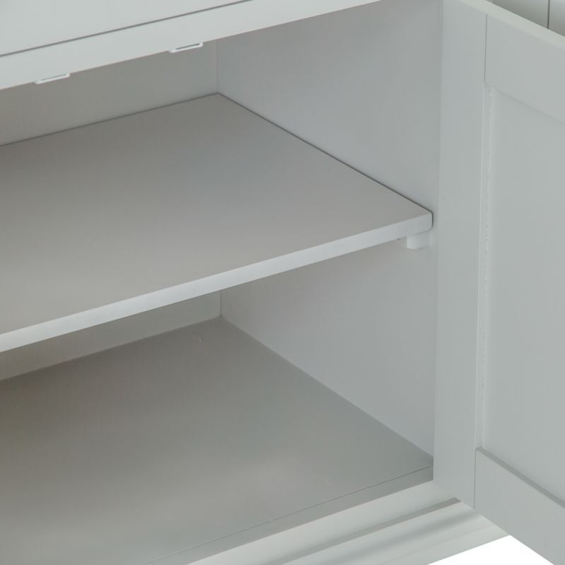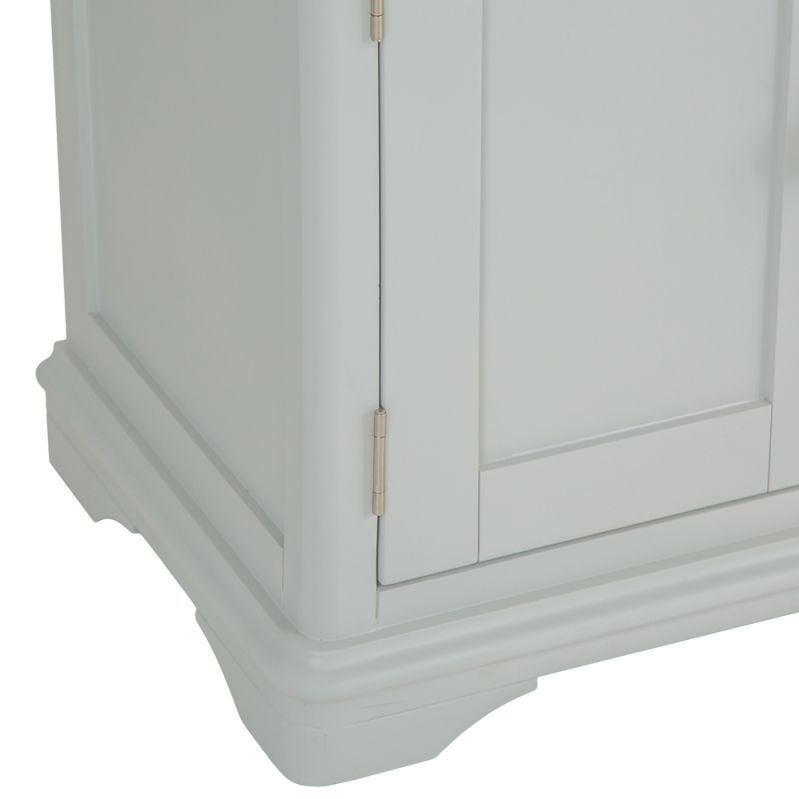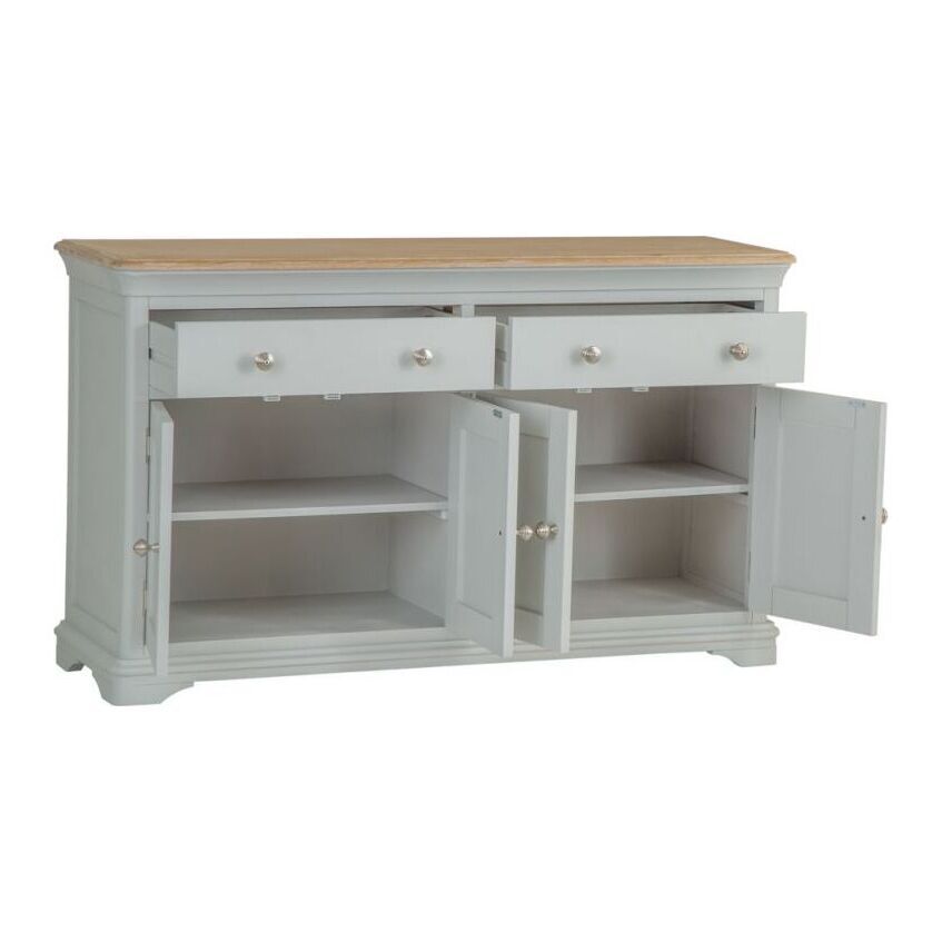 Whether you decide to use the Ashbourne Grey Painted 4 Door Extra Large Sideboardto transform the kitchen, dining room, or living room is up to you, but there's no disputing the new options it gives you. The beautifully dovetailed drawers and seamlessly joined doors are perfectly finished by the grey paintwork and chrome handles that are the hallmarks of the Ashbourne collection. Look closer and you'll see the subtle artistry of the bracket feet and gently curved top that brings your new Storage Unit to life. Perfect for adding a timeless piece to your home that you'll treasure for a lifetime.