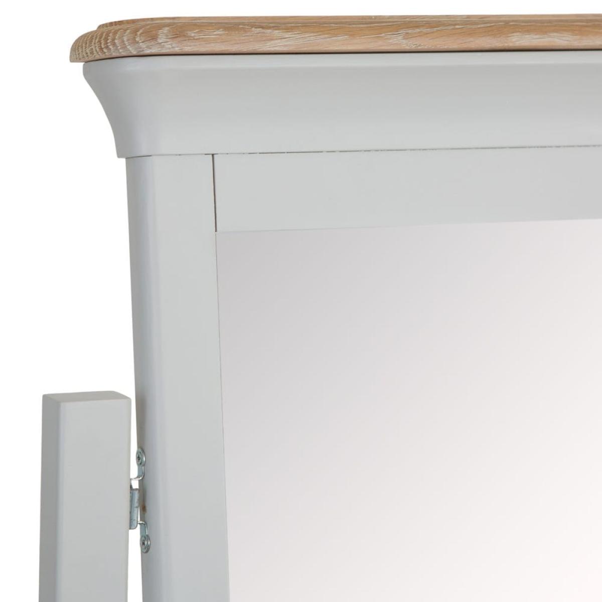 Who’s that handsome devil? Why, it’s you, gazing at your own reflection in your new Ashbourne grey painted vanity mirror. Designed to match the dressing table from the Ashbourne range, this vanity mirror is a demure yet delightful piece of bedroom furnishing. Finished in soft grey and signature lime-wood oak, this mirror adds a touch of glam to getting glammed up for the night. Easy to set at whichever angle suits you best, the mirror adds light and space to any room – along with a hint of elegance and poise.