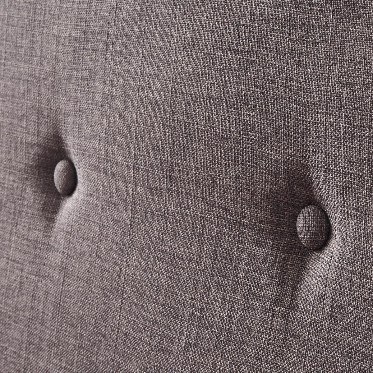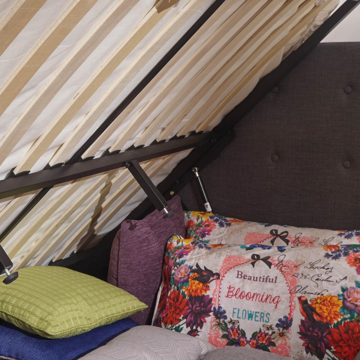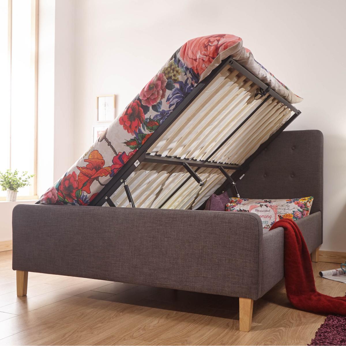 A lovely - and super-practical - addition to any contemporary home, this retro-style bedframe based on our existing Ashbourne bedstead features a fantastic raised storage area with a solid base. The sleek padded frame is upholstered in a smart, yet restrained hopsack in dark grey, with pale wooden legs providing effective contrast. A comfortable buttoned headboard provides a stylish boutique nish. Ashbourne makes a great partner for a chic, understated bedroom and is a good match for modern colour schemes.