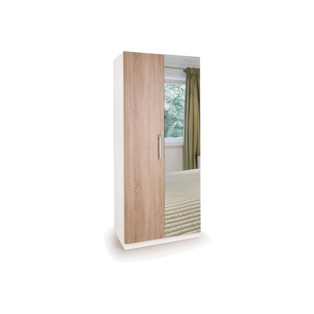Complete your bedroom's aesthetic with the wonderful Ashburton Two Door Wardrobe with Mirror. Use this stylish unit as a stand-alone piece, or use its pre-drilled carcass to attach it to other Ashburton wardrobes for a storage solution tailored to your requirements. The doors open to reveal a hang rail and spacious shelf, perfect for keeping your favourite garments, shoes and bedding neat, tidy and organised. A full-mirrored door will not only create the appearance of a larger bedroom but will also ensure you look your best for the day ahead. Combining style and practicality, this wardrobe offers an understated yet contemporary style, as it blends smart wooden tones with crisp white shades. The doors are accented with slim plastic handles to complete the modern appearance - simply place this wardrobe in your bedroom for a swift and stylish makeover.