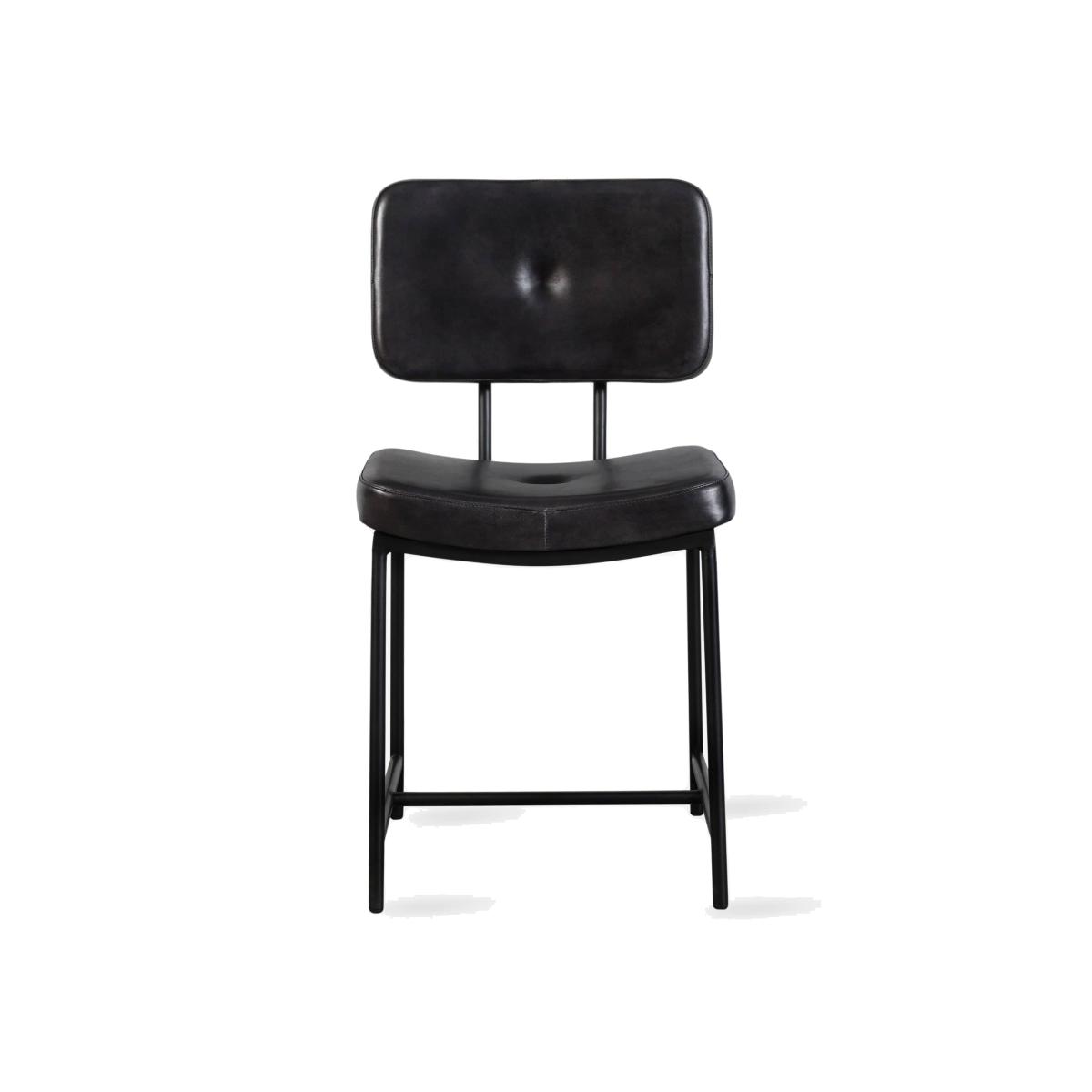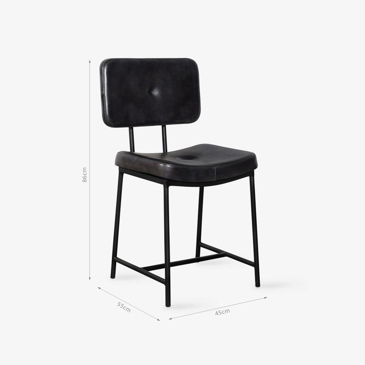 A modern kitchen or bar area will benefit from the stylish addition of our Ashby contemporary dining chair. The square seat and well-padded back, featuring a button stud, are made from soft aniline buffalo leather upholstery. Ashby's cosy padded seat and elegant legs were crafted in India by skilled metal and leather artisans. This elegant chair is a great option for traditional or rustic décor for your dining table or home office.