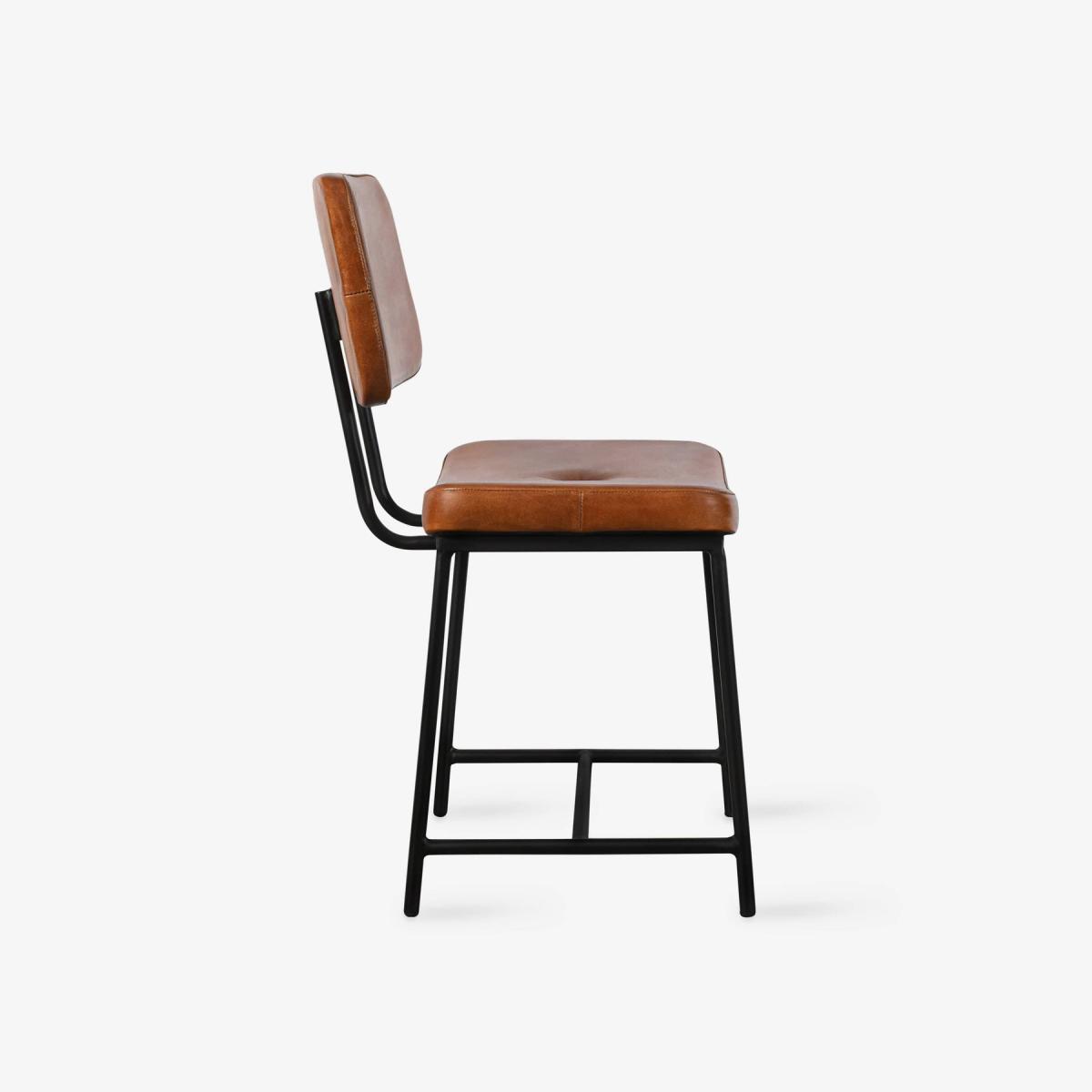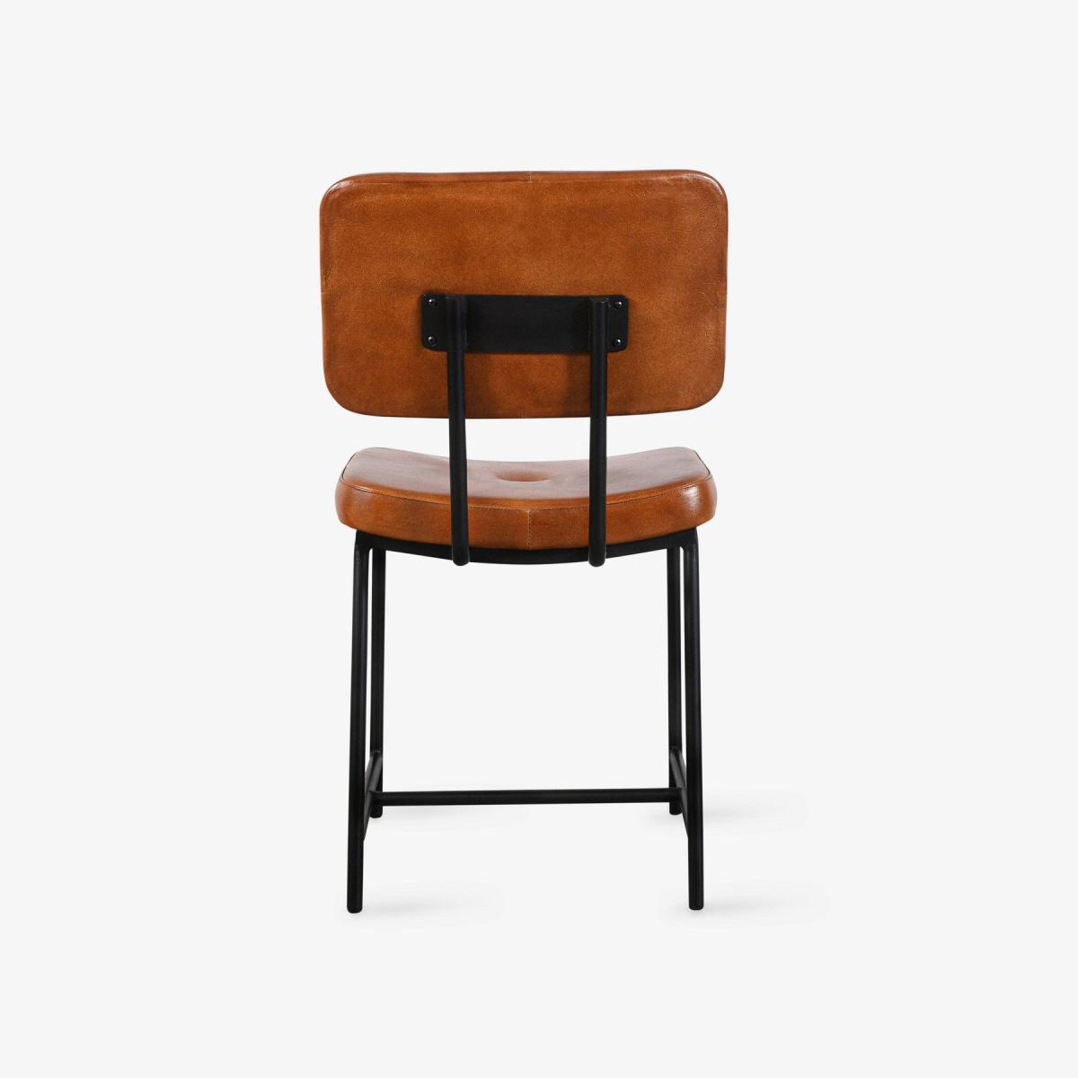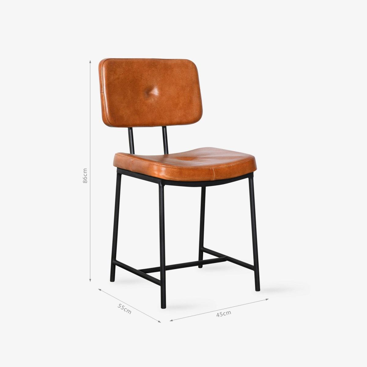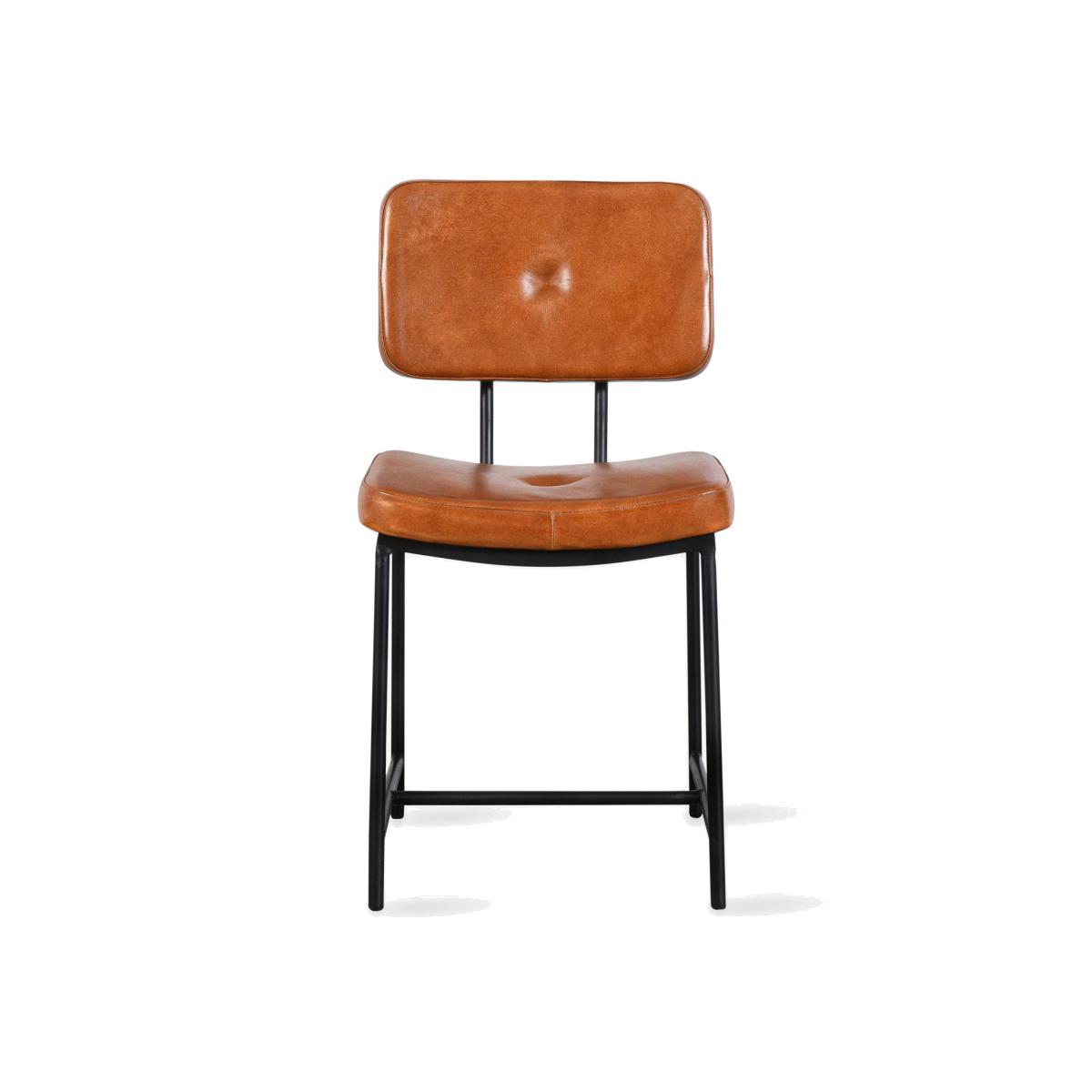 A modern kitchen or bar area benefits from the stylish addition of our Ashby contemporary dining chair, constructed from leather and iron. The square seat and well-padded back featuring a button stud are made from soft aniline buffalo leather upholstery. While its black iron frame and metal legs underscore Ashby's industrial look. Ashby's cosy padded seat and elegant legs were crafted in India by skilled metal and leatherworkers. Upgrade your dining table or home office with this elegant version, a great option for traditional or rustic décor. You can mix and match this dining chair, which is available in tan or black, to suit your interior design. Pair it with our Ashby bar stool for a cohesive look in your entertainment area.