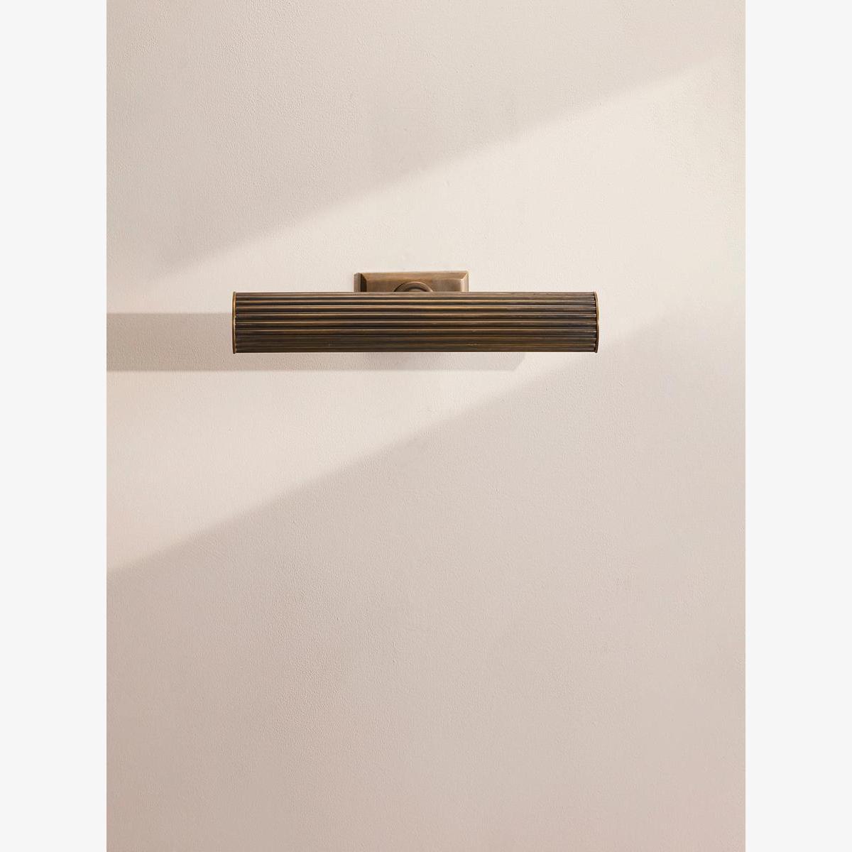 A ribbed, aged brass shade can be adjusted to illuminate your chosen artworks. Mirroring the interiors of Soho House 76 Dean Street, the Ashby picture light is designed to complement your artworks' surroundings. Available in three sizes, this functional, adjustable light is crafted from aged, real solid brass with a ribbed finish.