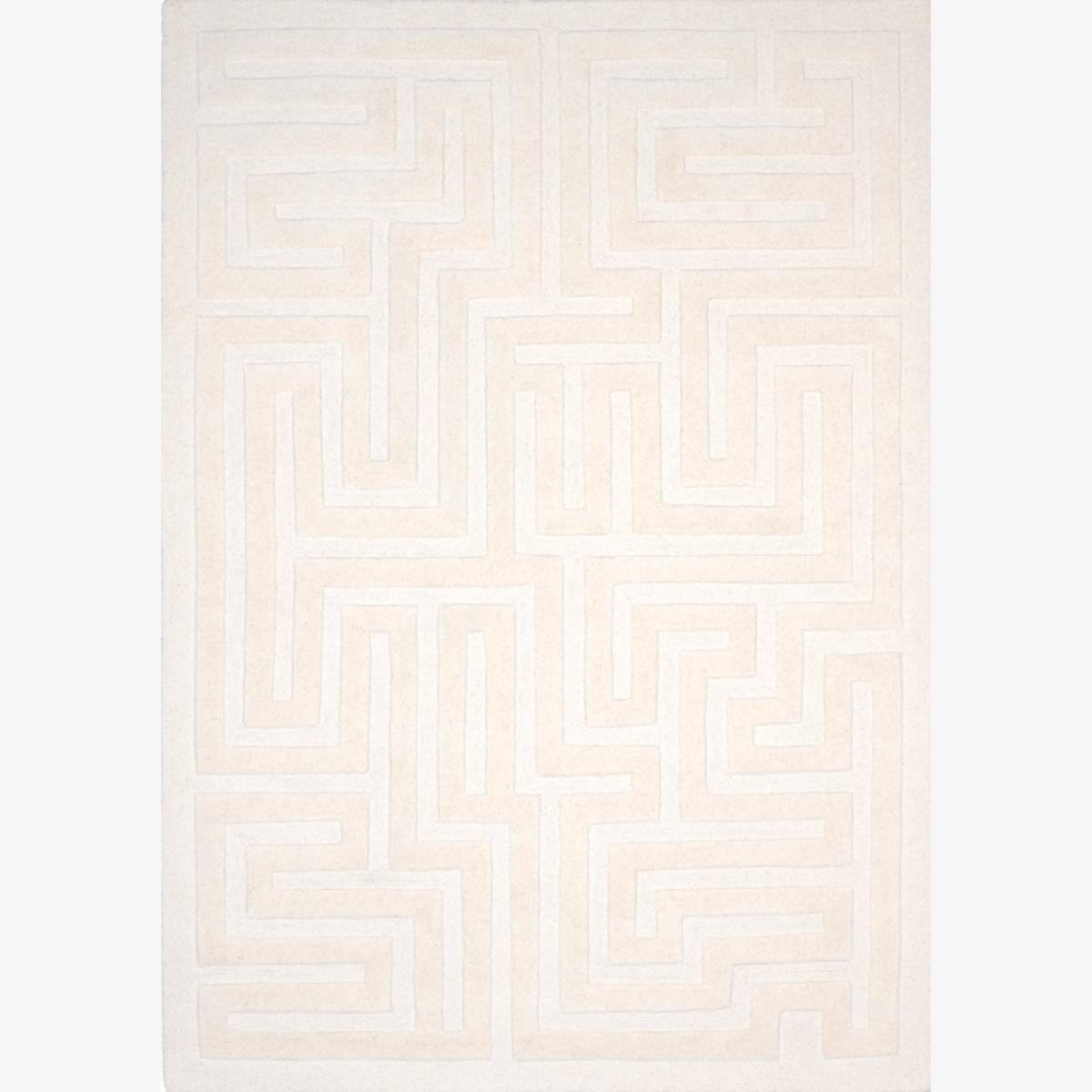 A graphic, tonal maze fashioned from a high/low loop cut pile. Hand Tufted 100% Wool. Wool rugs shed fibres during vacuum cleaning and everyday use; this is not a fault but a natural characteristic. Please use only suction type vacuum cleaner as rotating brush vacuum may damage the rug. Spills should be cleaned immediately to help avoid staining – use a clean white absorbent cloth to dab the spillage, avoid scrubbing.
