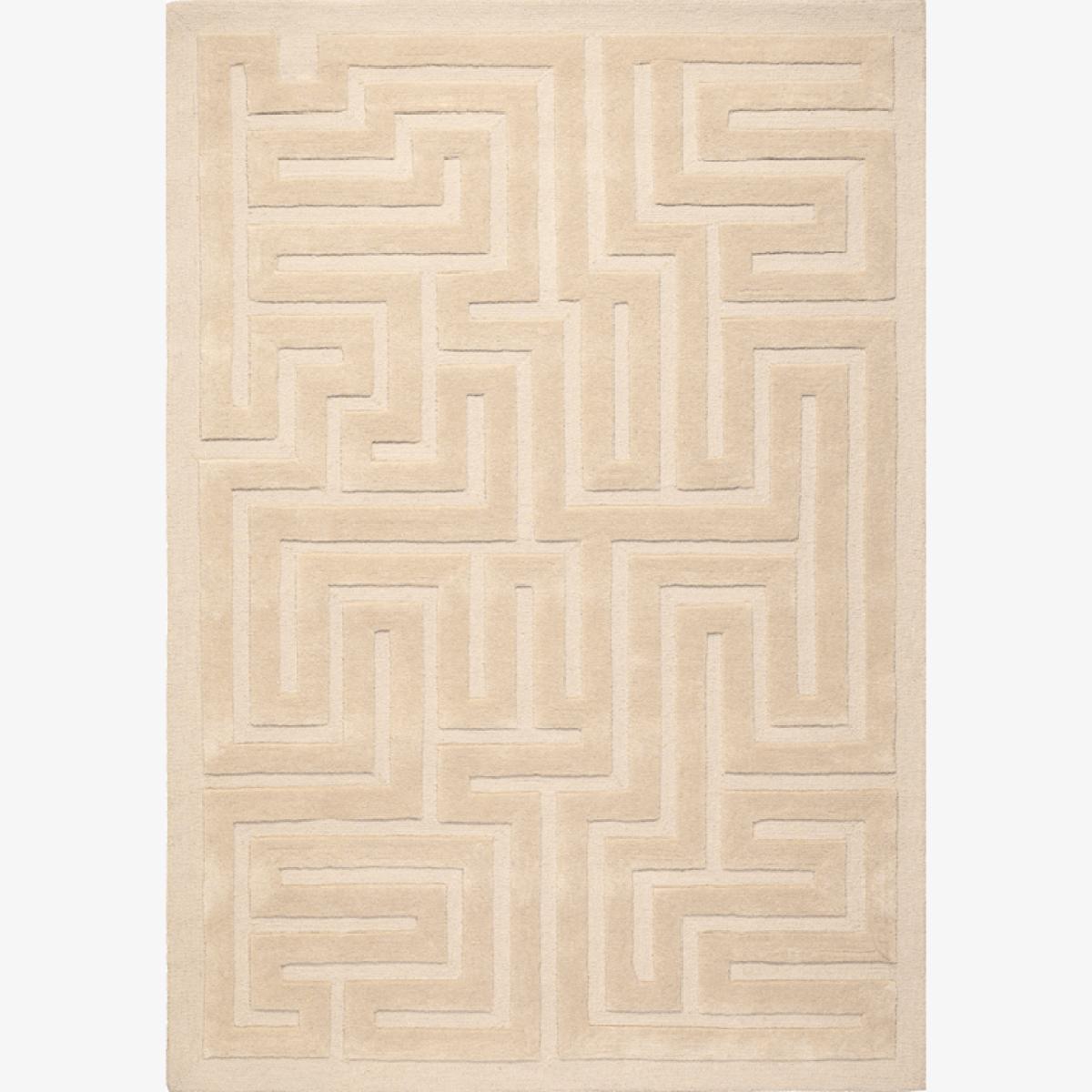 A graphic maze design fashioned from a high/low loop cut pile. Hand-tufted 100% wool. Wool rugs shed fibres during vacuum cleaning and everyday use; this is not a fault but a natural characteristic. Please use only suction type vacuum cleaner as rotating brush vacuum may damage the rug. Spills should be cleaned immediately to help avoid staining – use a clean white absorbent cloth to dab the spillage, avoid scrubbing.