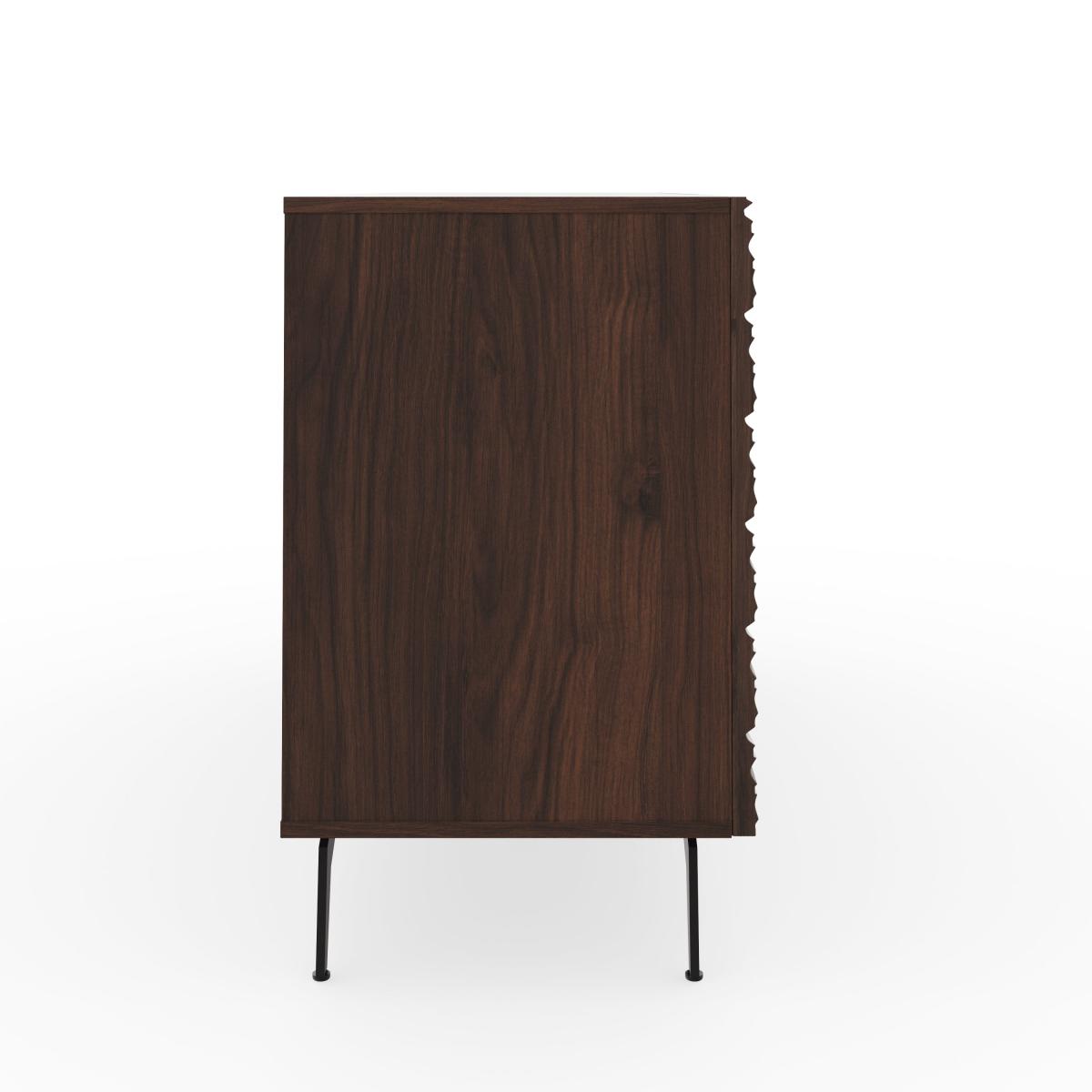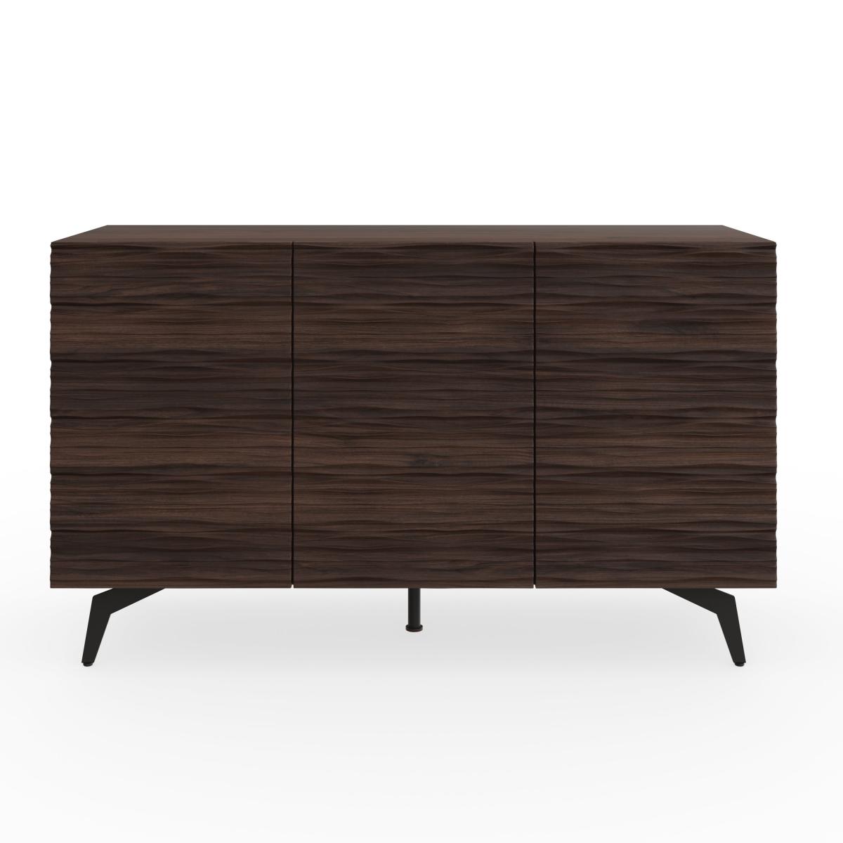 * Dark walnut* Wave textured front* Large storage shelves With soft-close hinges and integrated finger pulls, this sideboard's exterior showcases a captivating wave-textured pattern in dark walnut. This sideboard is a standout addition to any home, offering ample storage space with a touch of elegance.