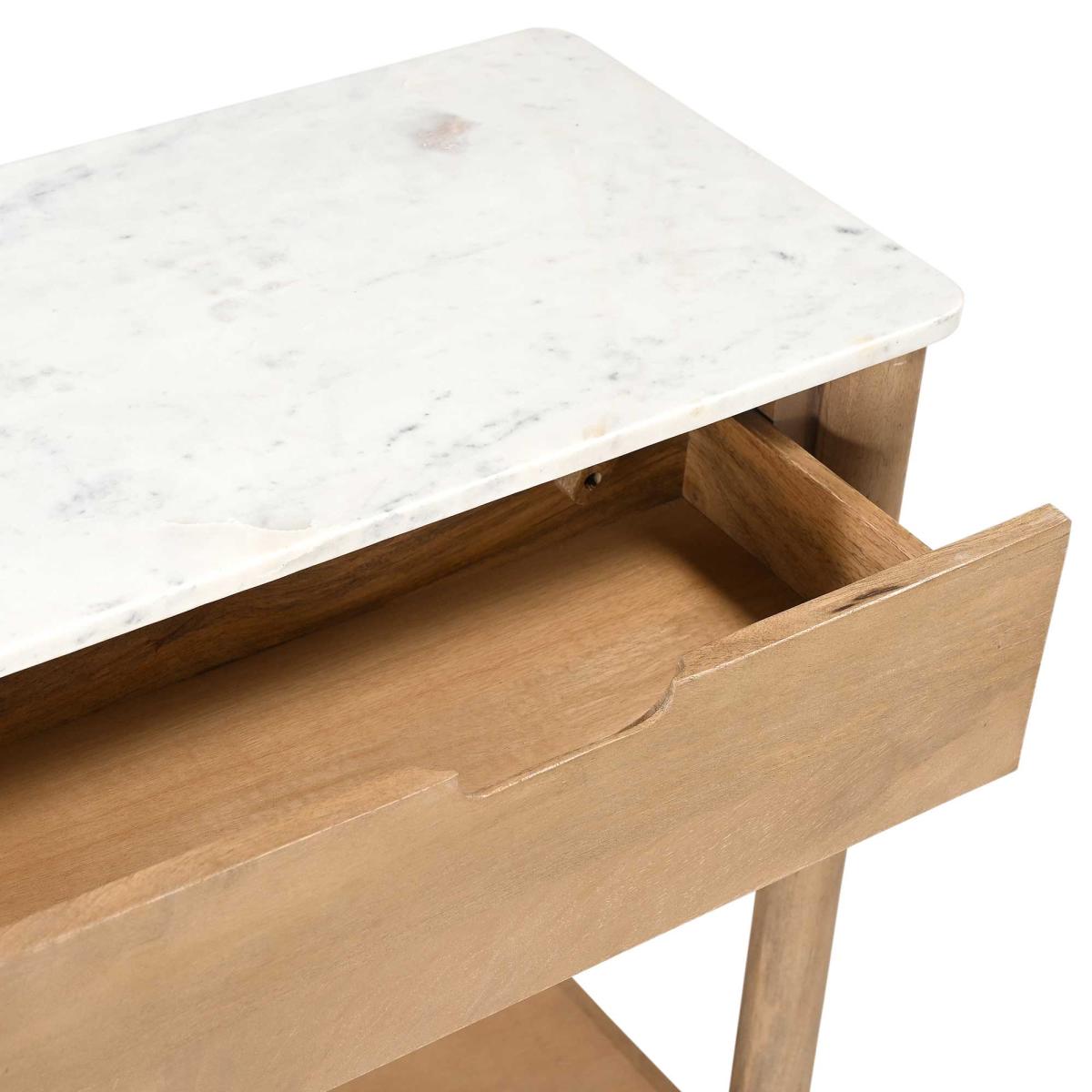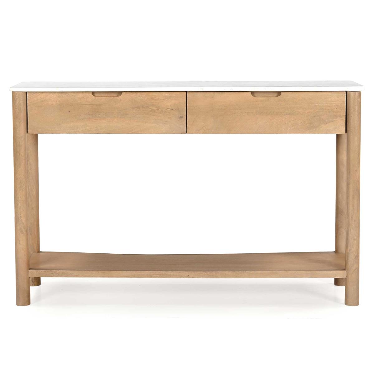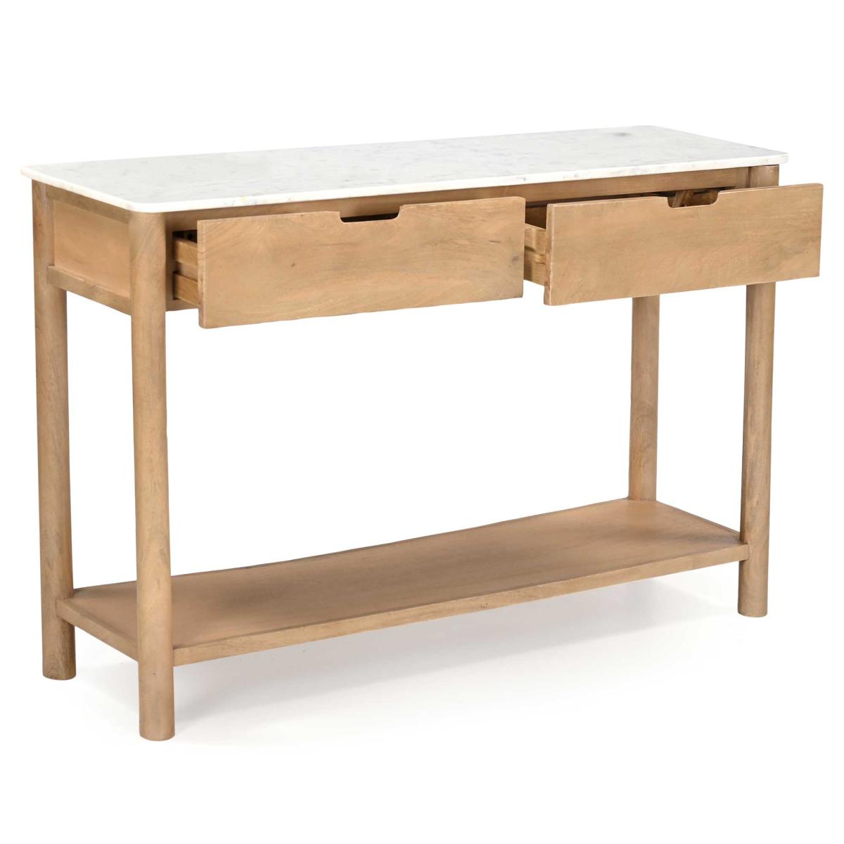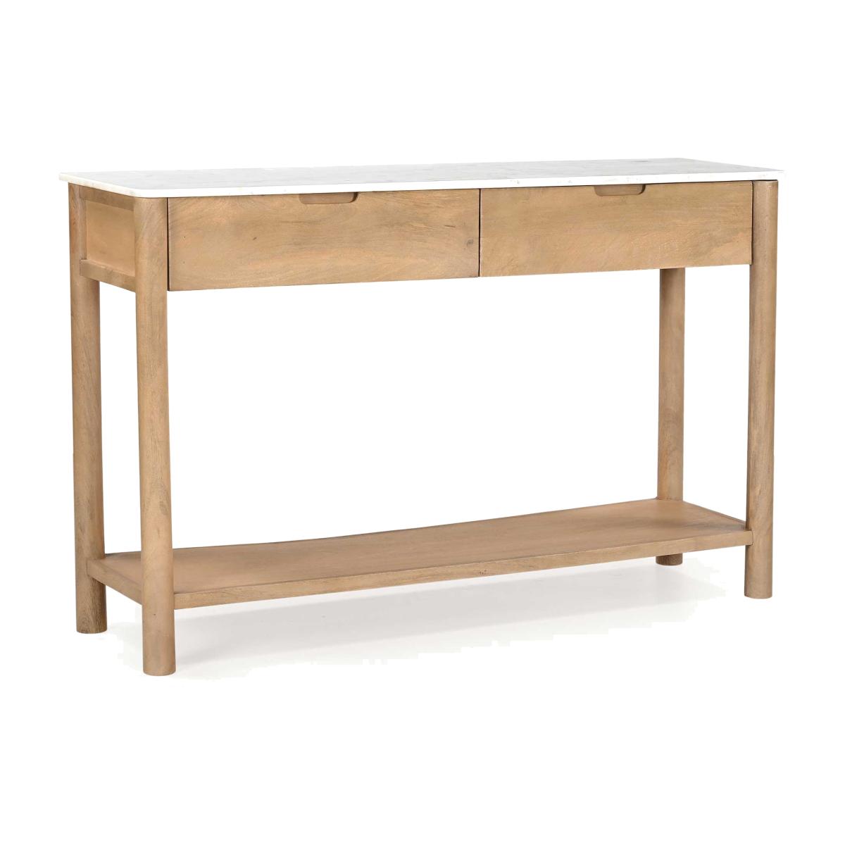The Asher 2 Drawer Console Table is a chic and practical addition to your hallway, living room or dining area. Crafted from natural mango wood to ensure longevity, and a contrasting marble top to exude quality, this piece will work in a variety of interior settings with its soft colour palette. Featuring two spacious drawers and a shelf to the bottom, the Asher Console Table allows you to display accessories and store away trinkets.