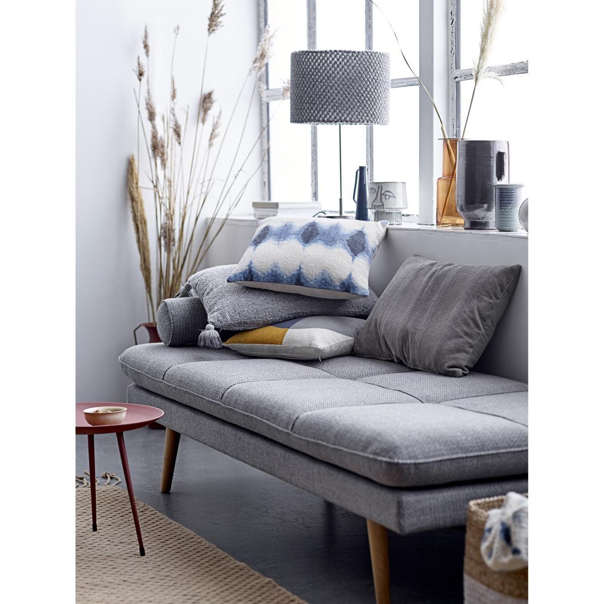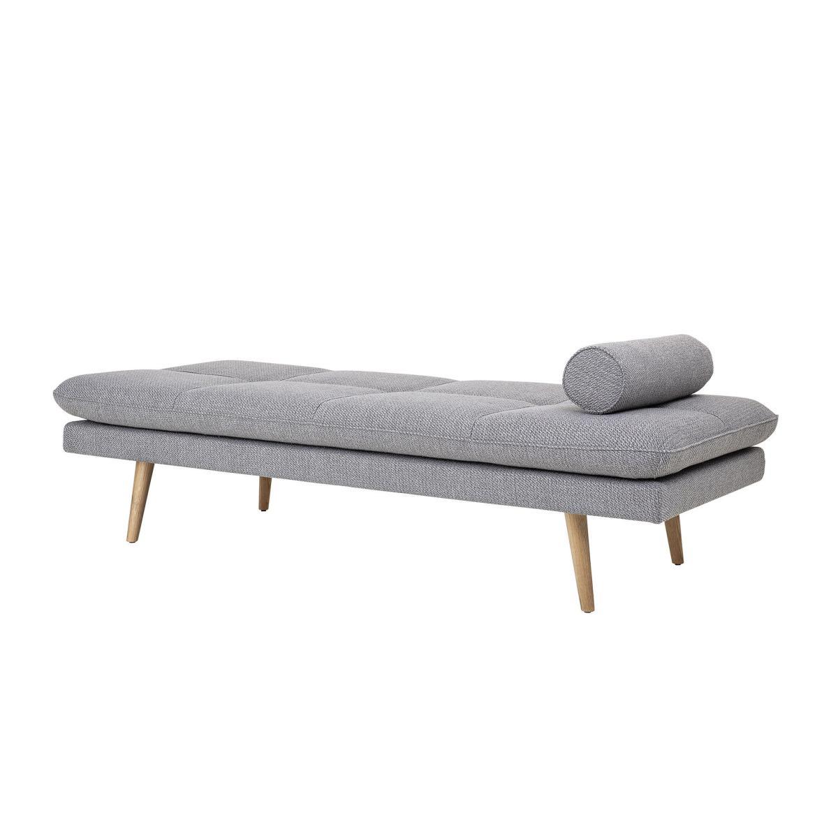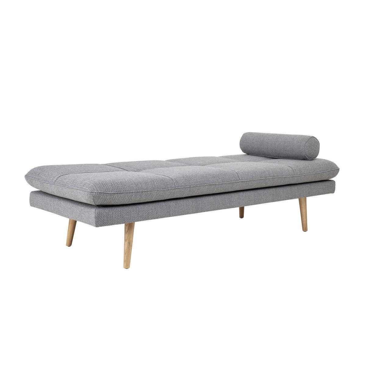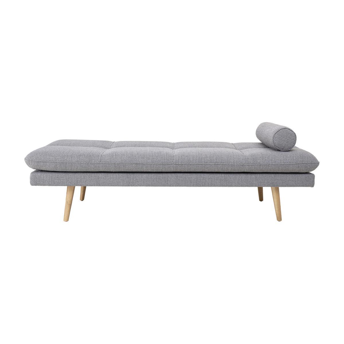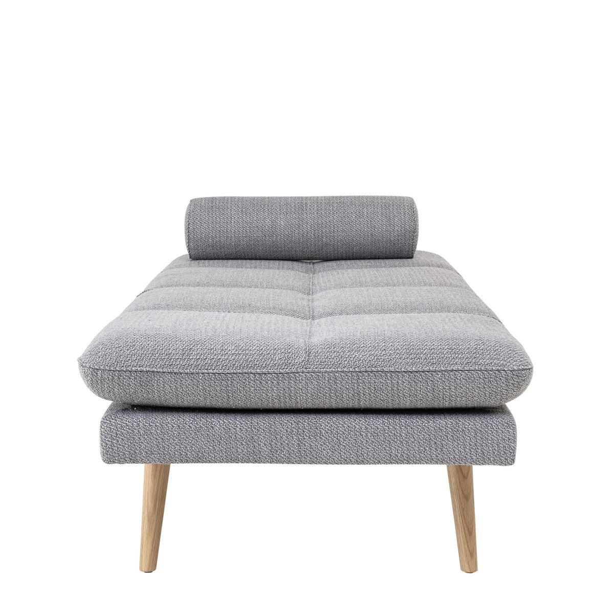 In the purest Scandinavian style, this lounge chair with clean lines combines wood with a light grey covering. The thick fabric is warm, sophisticated and cosy. The legs are made from natural oak. An invitation to idleness, this daybed is an island of peace for a well-deserved break in the middle of the day, or for a guest who is sleeping over. Its large size means you can sit alone or with others, stretch yourself out languorously, or coil up in various positions. Refined and wonderfully elegant, it is a cosy item that will help you create a chic and relaxing corner in a lounge, at the foot of a bookcase, or in an entrance hall, dressing room or bedroom.
