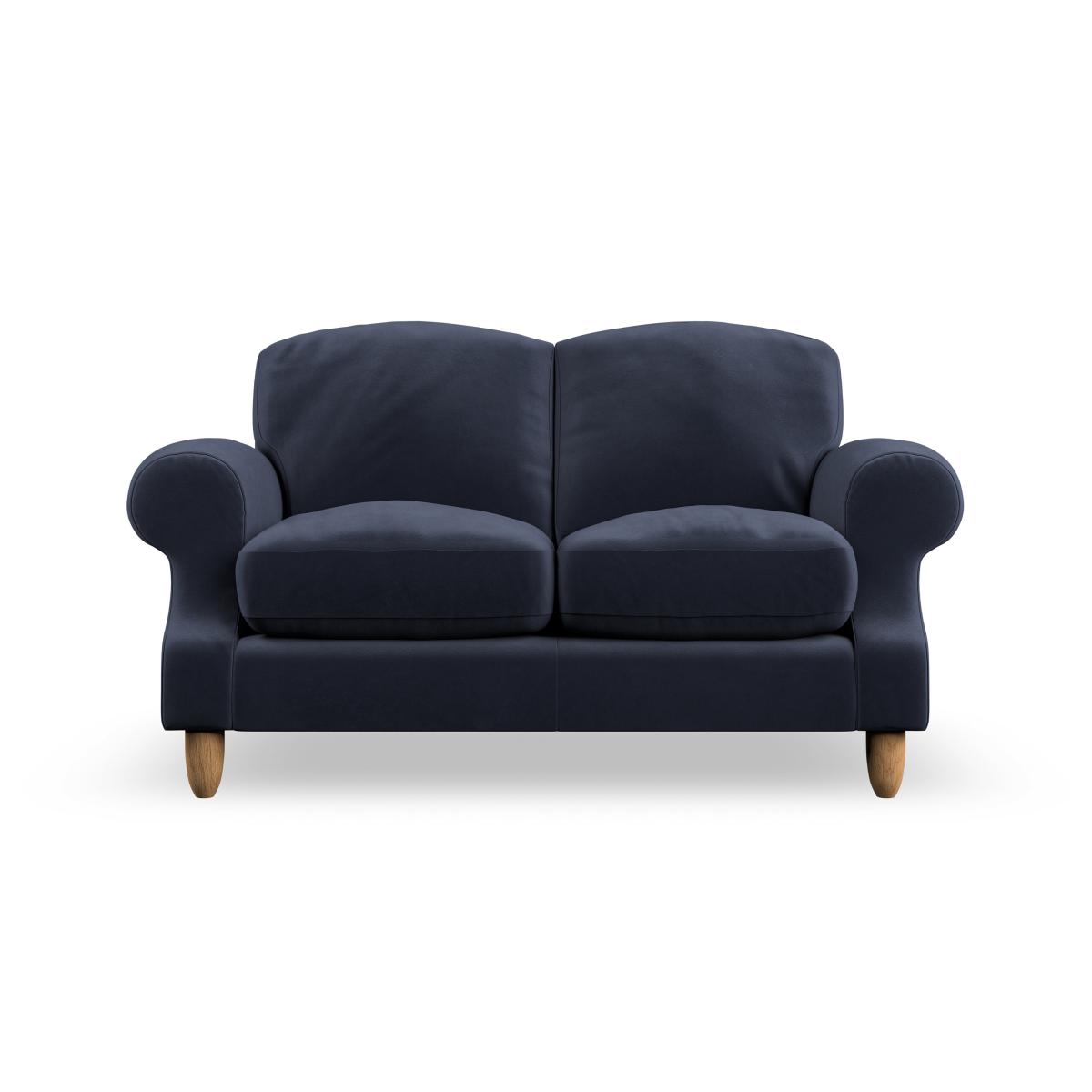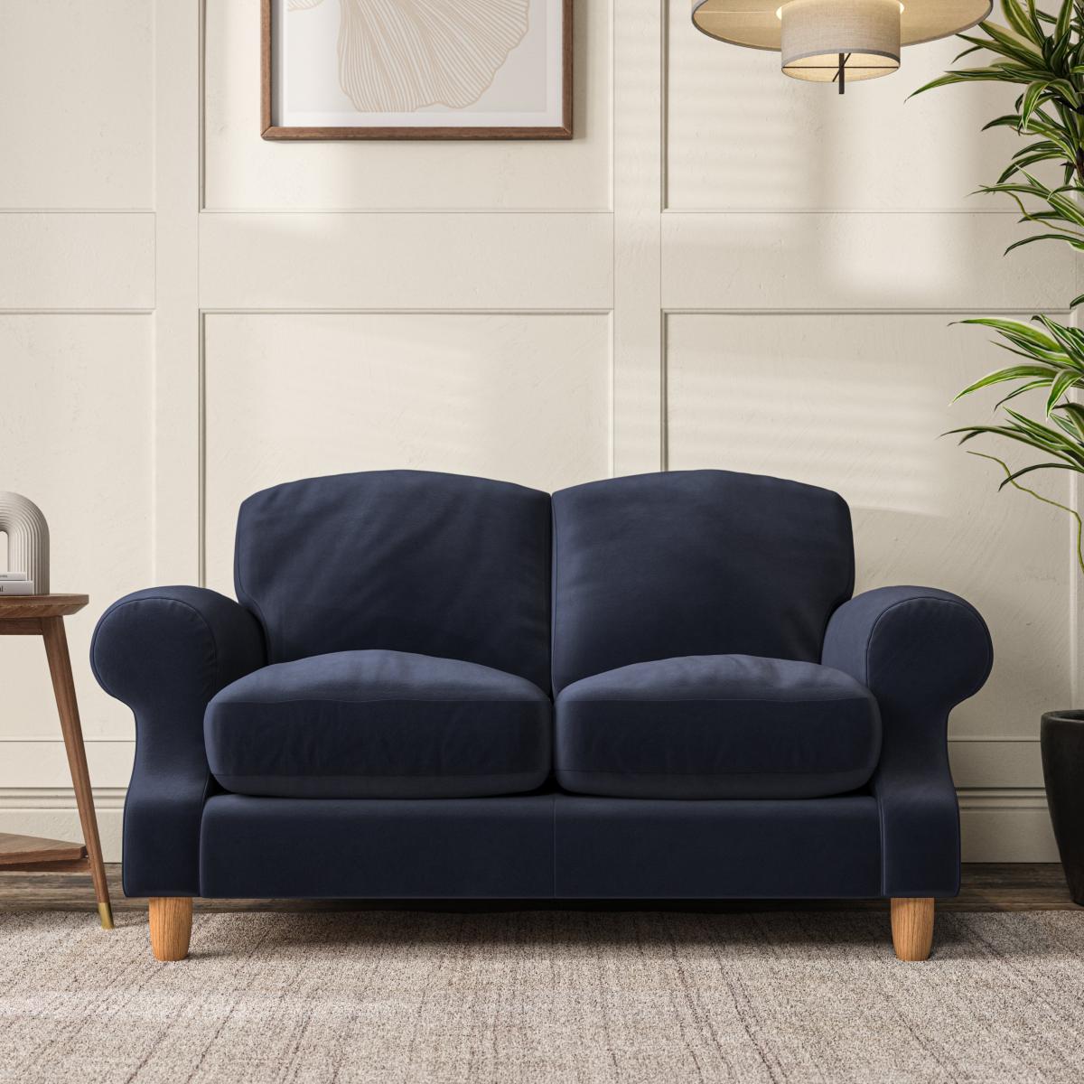 I love this sofa for its classic, versatile design that works well in a range of interiors, from traditional to contemporary. Its deep navy fabric adds a sophisticated touch and can easily be styled with contrasting cushions or throws for a personalised look. The modest size makes it perfect for smaller living spaces or as part of a larger seating arrangement. For styling tips, consider pairing it with neutral-toned rugs and light wood or metallic accents to keep the look fresh and balanced. Adding some patterned cushions can introduce colour and texture, making the sofa a welcoming focal point without overwhelming the room.