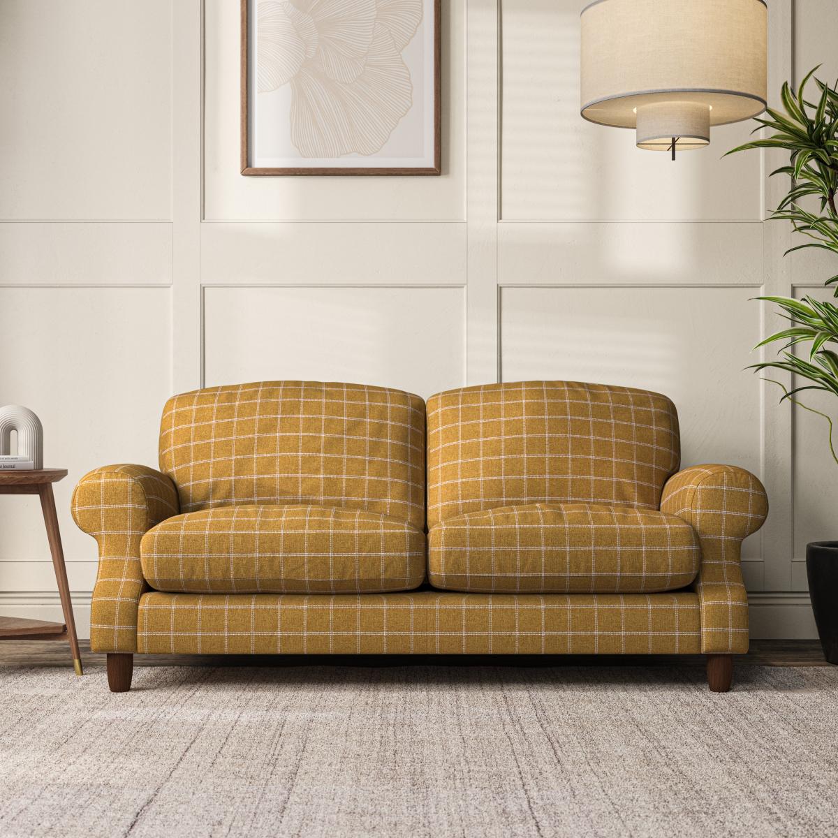 I’m a fan of the Ashford sofa for its neat check pattern and softly rolled arms - it brings a tailored yet relaxed feel to a room. The mustard-toned fabric sits well in Scandi or mid-century schemes, especially alongside oak or ash-finish tables and a neutral jute rug. For a balanced look, layer on a chunky throw and a couple of velvet or leather-trimmed cushions in teal or forest green, then keep your coffee table low-profile to let the sofa’s shape stand out.