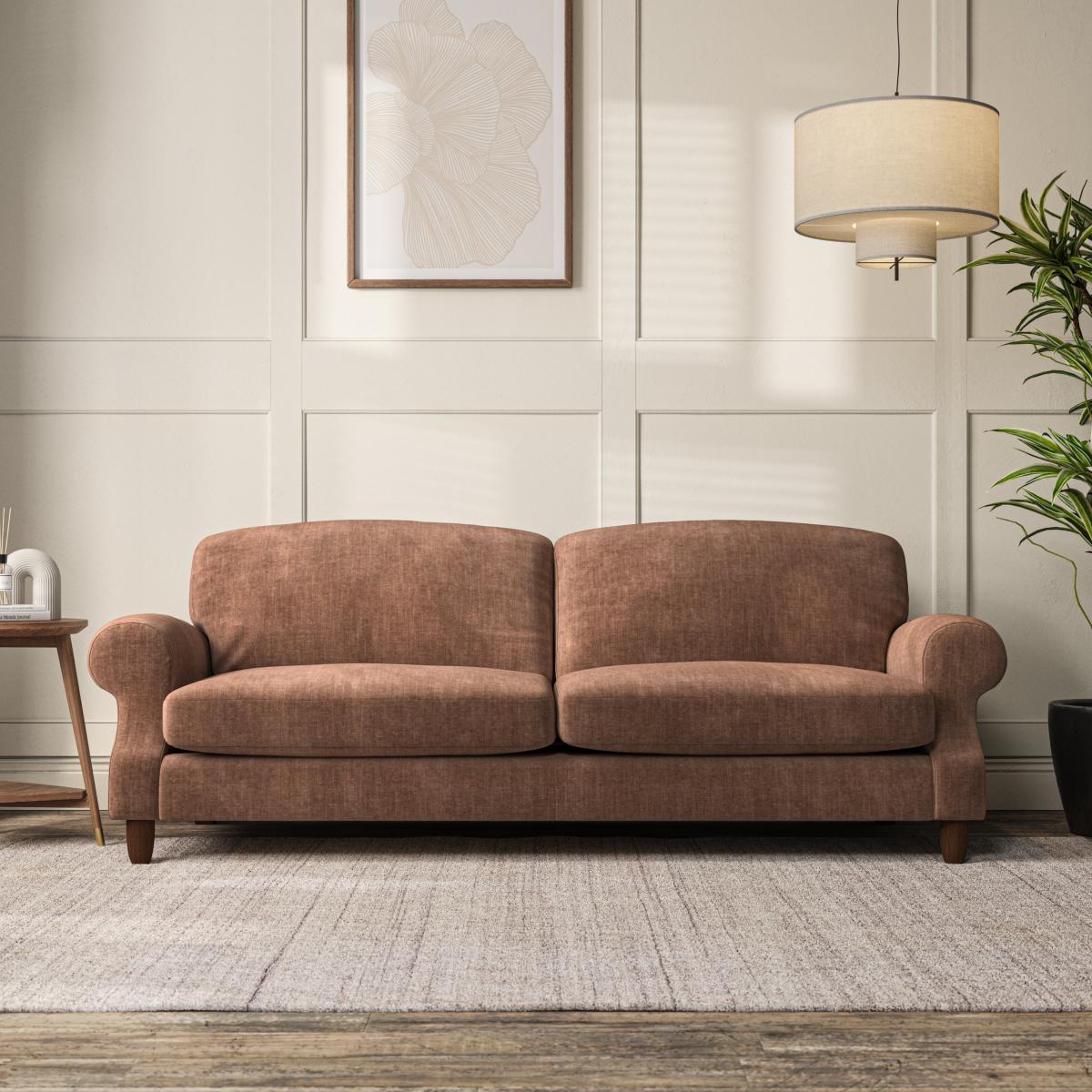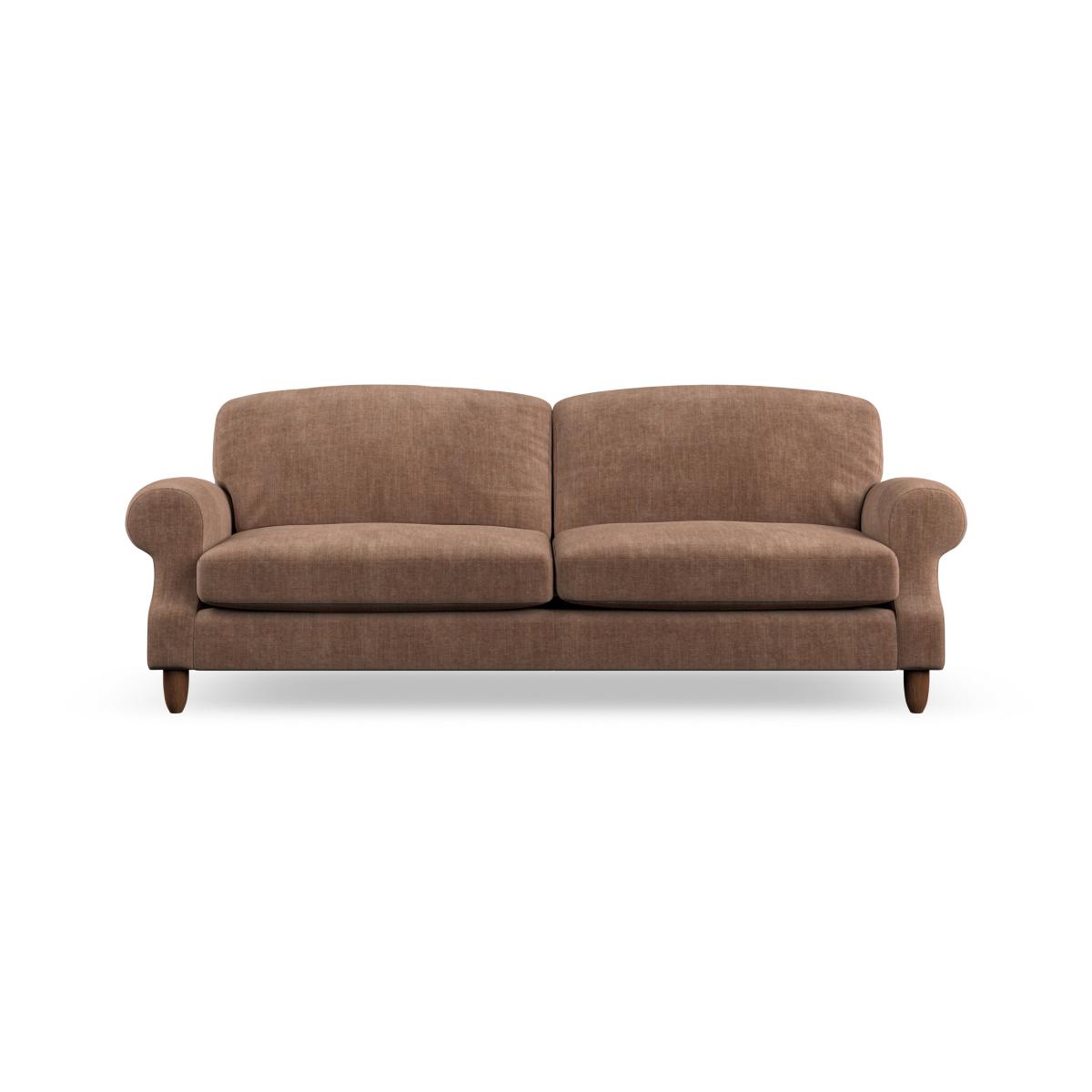 * Elegant style* Top stitched detail* High back cushions* Serpentine seat springs* Choose your support, fabric and leg colour This sofa features a cut back scroll arm and elegant, gently arched back cushions, providing both style and comfort. The top-stitched detail on the arm front adds a touch of sophistication. Higher back cushions with generous fibre filling offer excellent support for your back and shoulders. Customise your comfort by choosing between a low-maintenance foam seat or the inviting ‘Qualofill Blue’ fibre seat, made from 100% recycled polyester. Built for longevity, it includes serpentine seat springs for added comfort. The turned hardwood legs, available in two finishes, are easy to fit.