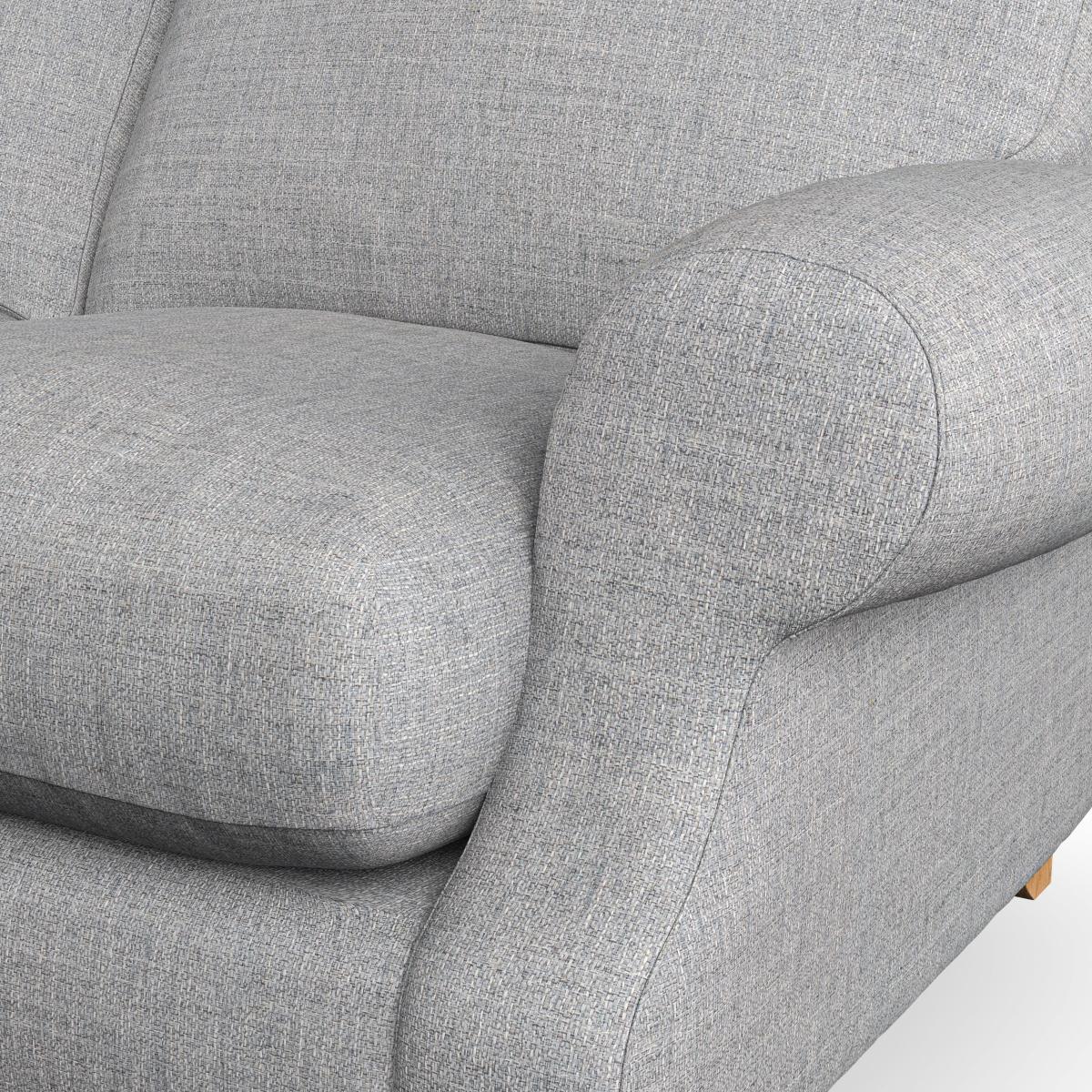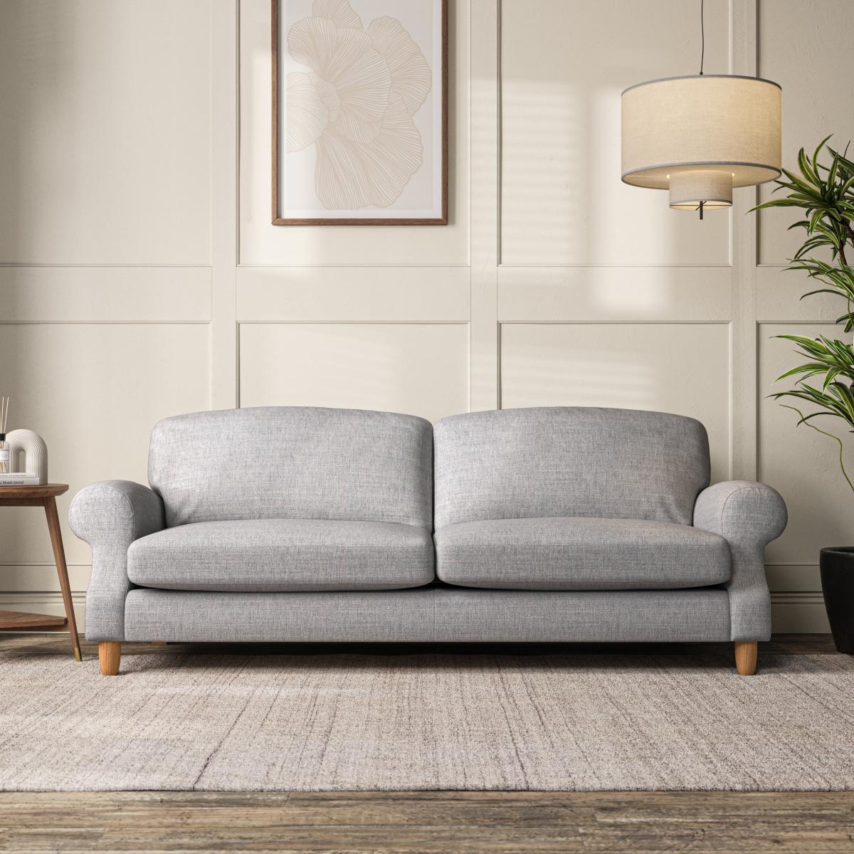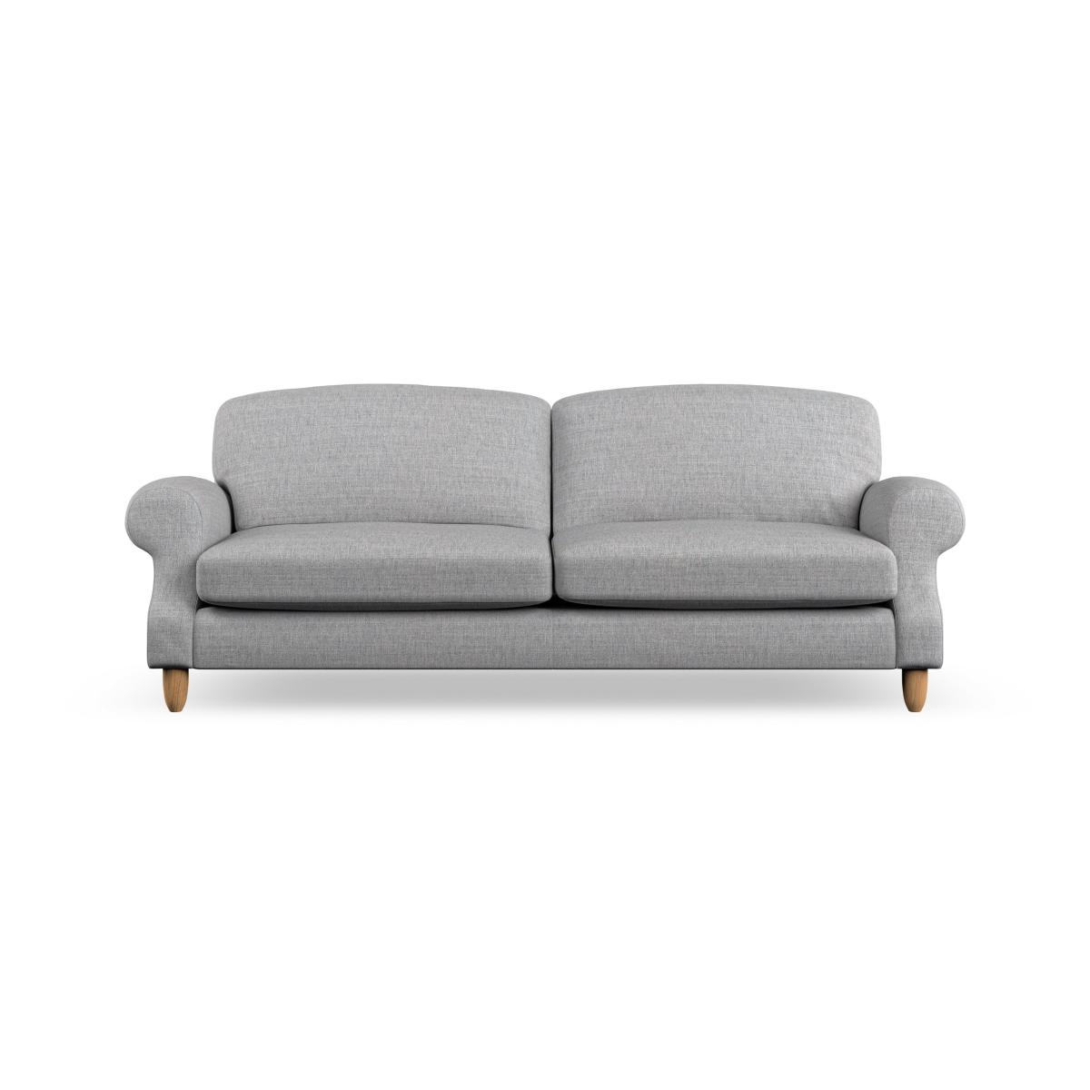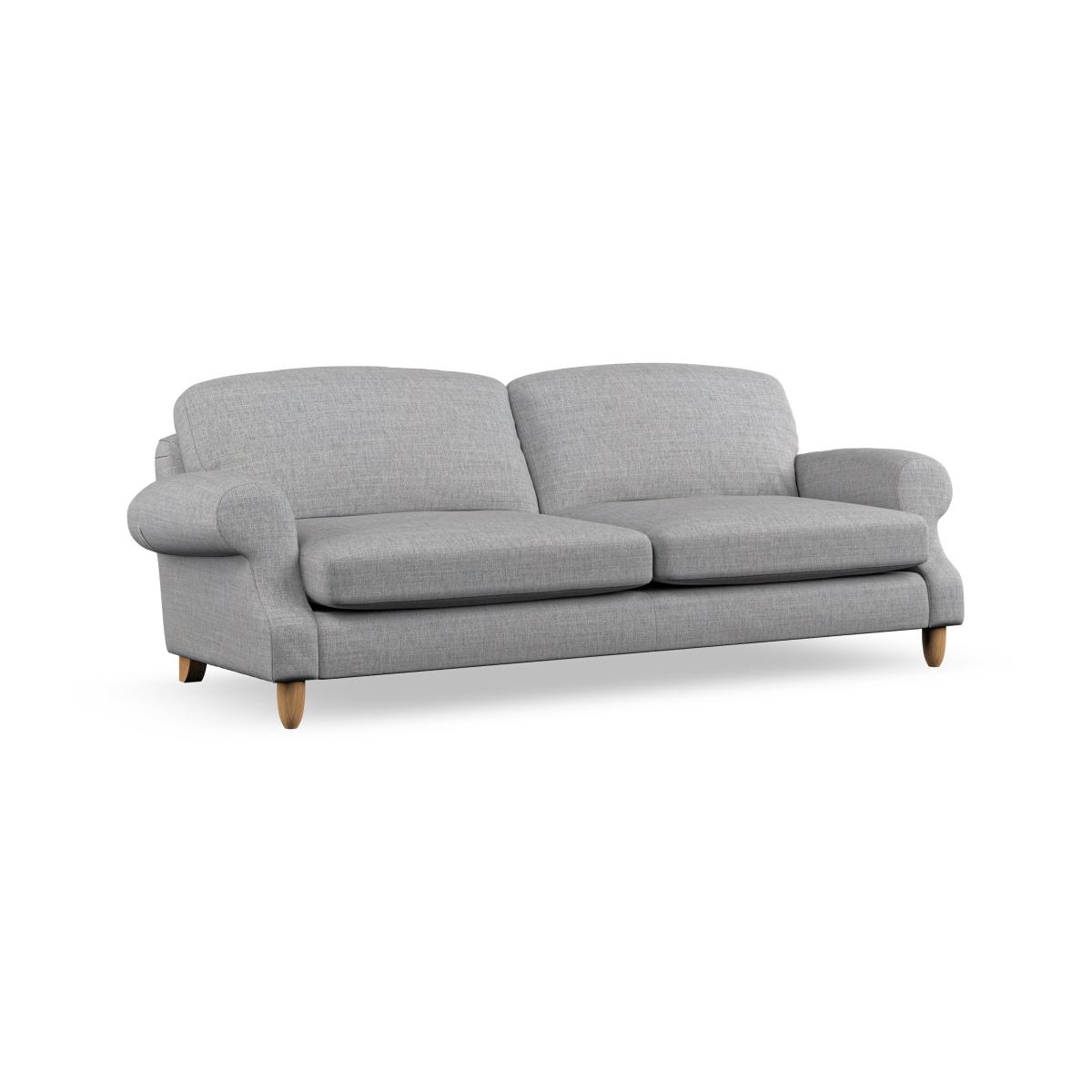 * Elegant style* Top stitched detail* High back cushions* Serpentine seat springs* Choose your support, fabric and leg colour This sofa features a cut back scroll arm and elegant, gently arched back cushions, providing both style and comfort. The top-stitched detail on the arm front adds a touch of sophistication. Higher back cushions with generous fibre filling offer excellent support for your back and shoulders. Customise your comfort by choosing between a low-maintenance foam seat or the inviting ‘Qualofill Blue’ fibre seat, made from 100% recycled polyester. Built for longevity, it includes serpentine seat springs for added comfort. The turned hardwood legs, available in two finishes, are easy to fit.
