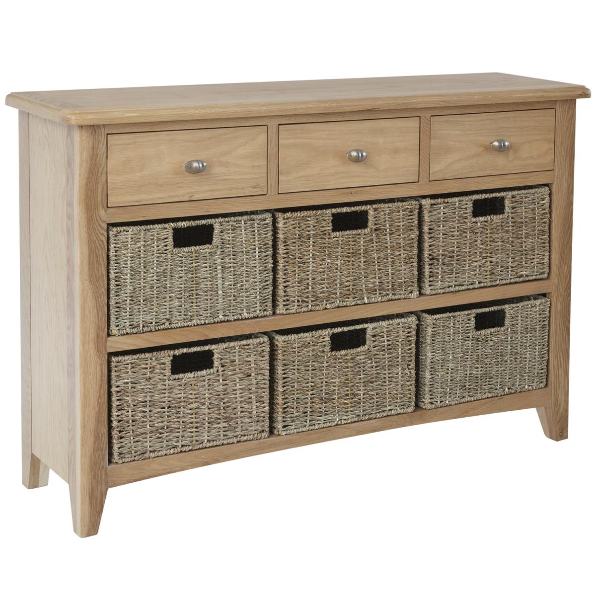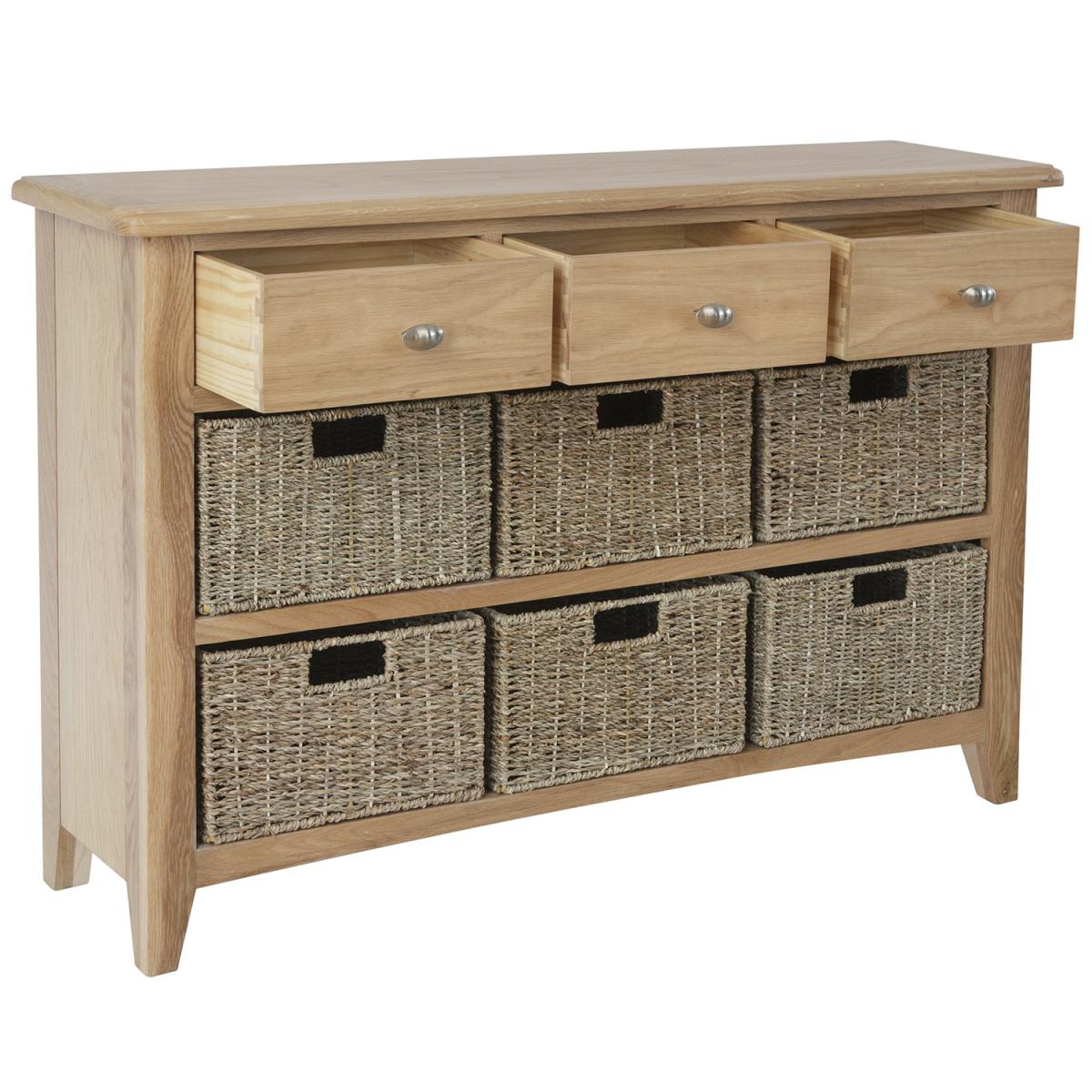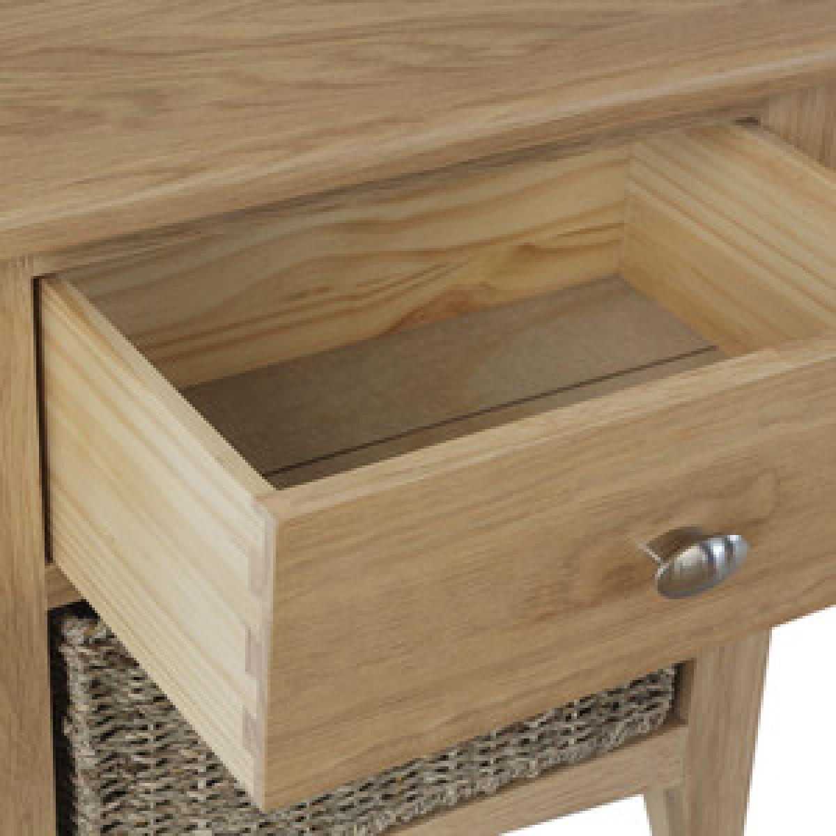 The beauty of the Ashford Oak 1 Drawer 1 Basket Unit is the way in which it effortlessly combines style and storage in perfect harmony. By contrasting the solidity and permanence of light oak with the free-flowing look of finely woven wicker, we’ve created a Storage Unit that allows you to have the best of both worlds. The result is a versatile piece you can use in just about any room in the house without having to reinvent your use of space or existing decor. Ideal when all you want is storage and style with the click of a button.