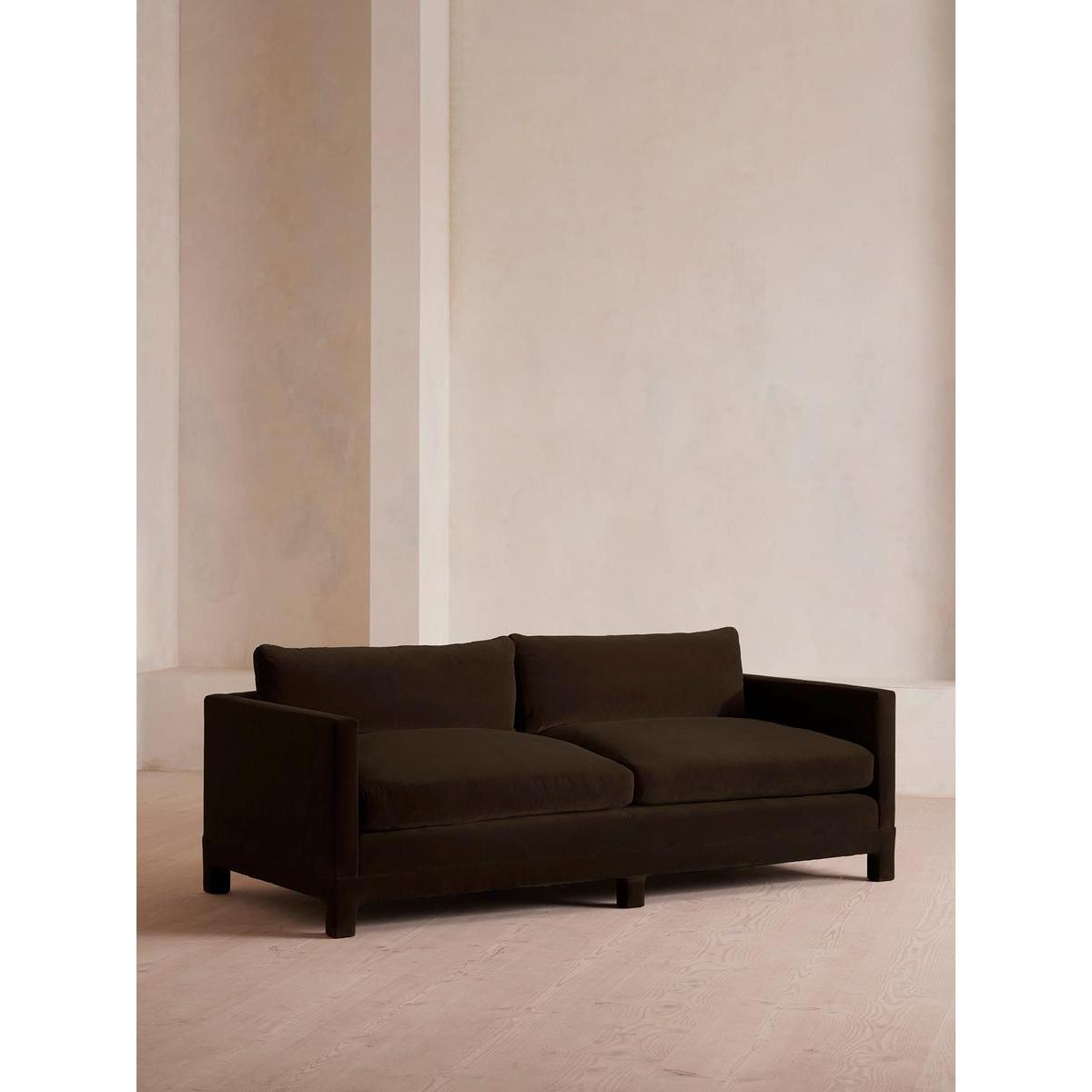 Our versatile Ashford sofa references the comfy seating styles seen in DUMBO House in Brooklyn with a deep seat for true relaxation. Fully upholstered in velvet, angular arms lend structute to this contemporary design, resting on solid beech legs.