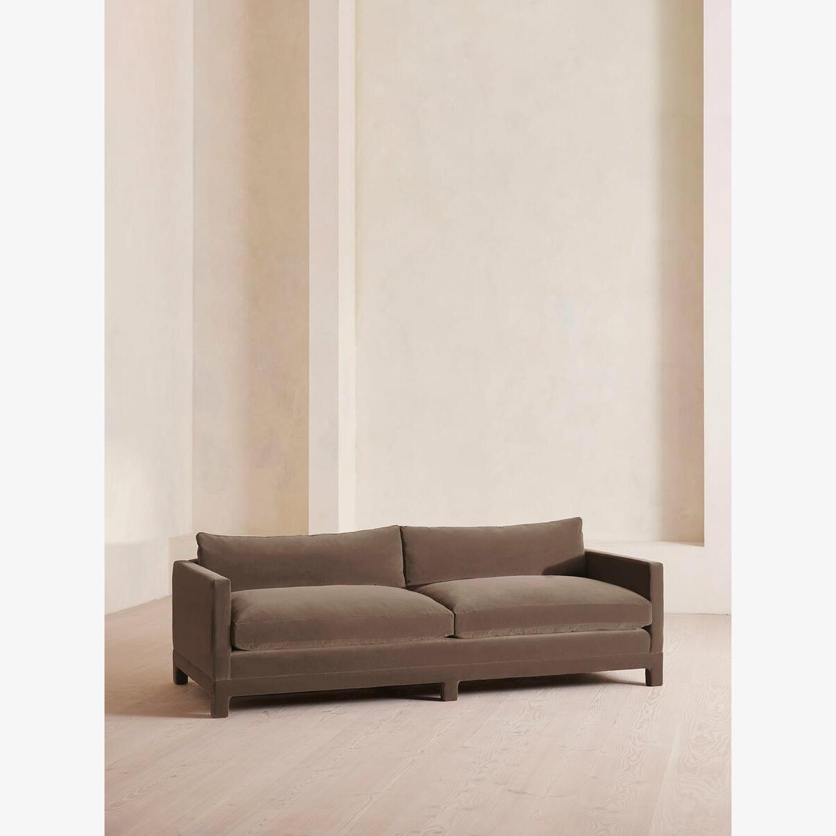 I love this sofa for its versatile and understated style, making it ideal for both classic and contemporary interiors. The velvet fabric adds a touch of luxury and warmth, while the taupe colour ensures it blends seamlessly into a variety of colour schemes. It works particularly well in neutral or muted palettes, offering a cosy yet sophisticated focal point. Practical styling tips include pairing it with textured cushions or throws to soften its sleek silhouette, and placing it in a living space with layered lighting to highlight its elegant fabric. Its clean lines and generous seating make it perfect for both relaxed family rooms and more formal sitting areas.