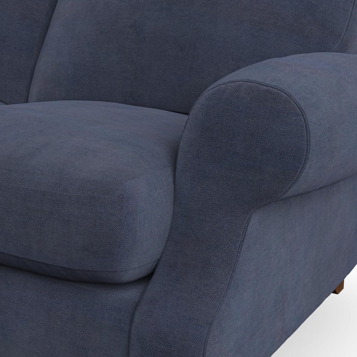 * Elegant style* Top stitched detail* High back cushions* Serpentine seat springs* Choose your support, fabric and leg colour This sofa features a cut back scroll arm and elegant, gently arched back cushions, providing both style and comfort. The top-stitched detail on the arm front adds a touch of sophistication. Higher back cushions with generous fibre filling offer excellent support for your back and shoulders. Customise your comfort by choosing between a low-maintenance foam seat or the inviting ‘Qualofill Blue’ fibre seat, made from 100% recycled polyester. Built for longevity, it includes serpentine seat springs for added comfort. The turned hardwood legs, available in two finishes, are easy to fit.