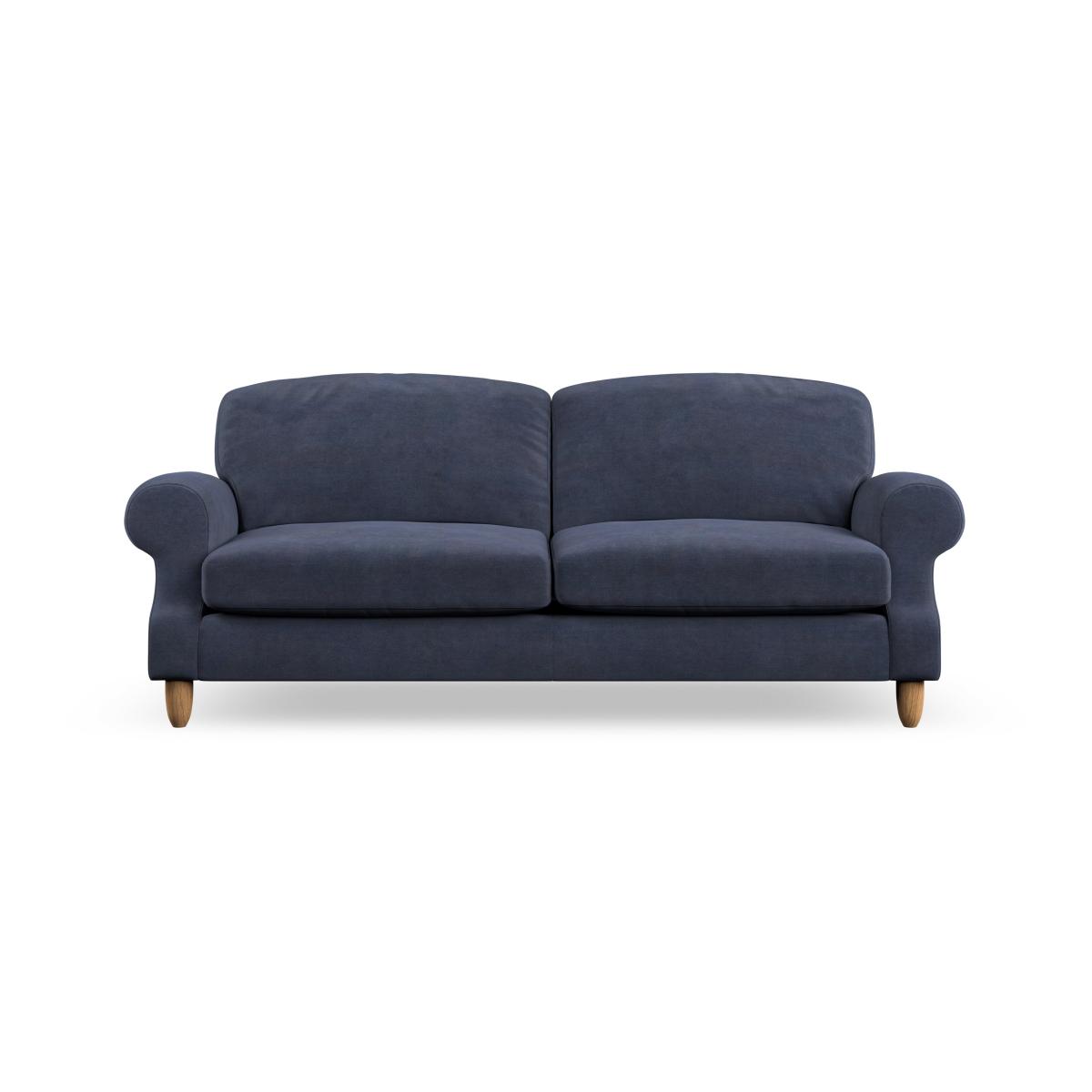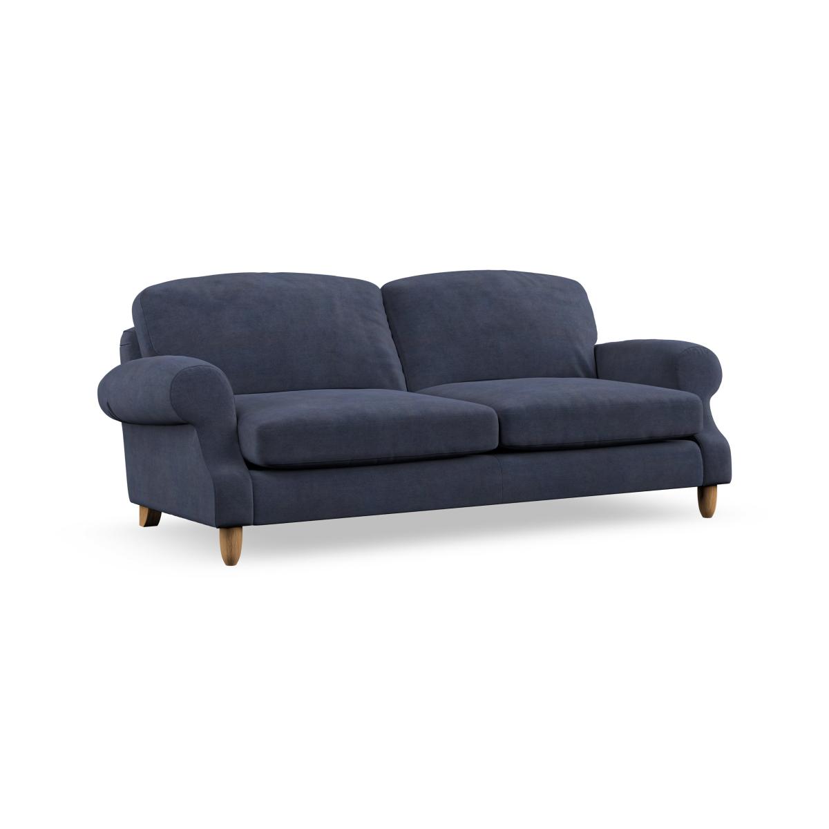 * Elegant style* Top stitched detail* High back cushions* Serpentine seat springs* Choose your support, fabric and leg colour This sofa features a cut back scroll arm and elegant, gently arched back cushions, providing both style and comfort. The top-stitched detail on the arm front adds a touch of sophistication. Higher back cushions with generous fibre filling offer excellent support for your back and shoulders. Customise your comfort by choosing between a low-maintenance foam seat or the inviting ‘Qualofill Blue’ fibre seat, made from 100% recycled polyester. Built for longevity, it includes serpentine seat springs for added comfort. The turned hardwood legs, available in two finishes, are easy to fit.