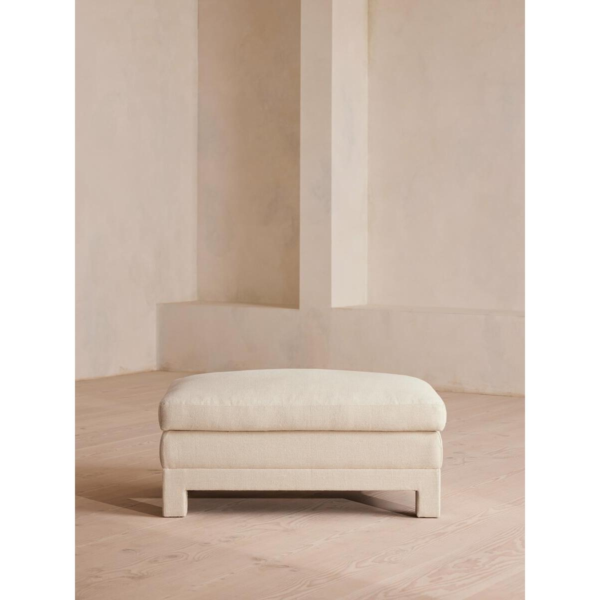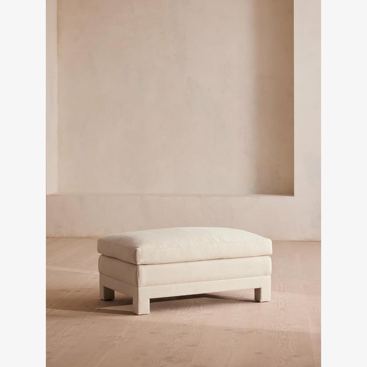 Our Ashford ottoman is made to suit a variety of living room interiors. Referencing the cosy seating areas of DUMBO House in Brooklyn, it's upholstered in natural linen with beech legs and a deep seat; great for kicking off your shoes and relaxing or as an additional seating option. Pair with our Ashford sofa for a complete look. Upholstered in 100% linen Available in other colours and fabrics Also available in velvet Deep seat Beech legs Inspired by DUMBO House, Brooklyn
