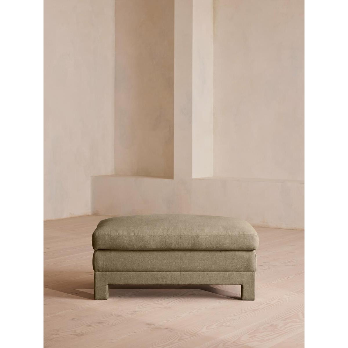 Our Ashford ottoman is made to suit a variety of living room interiors. Referencing the cosy seating areas of DUMBO House in Brooklyn, it's upholstered in natural linen with beech legs and a deep seat; great for kicking off your shoes and relaxing or as an additional seating option. Pair with our Ashford sofa for a complete look. Upholstered in 100% linen Available in other colours and fabrics Also available in velvet Deep seat Beech legs Inspired by DUMBO House, Brooklyn