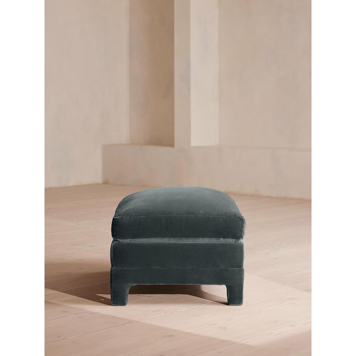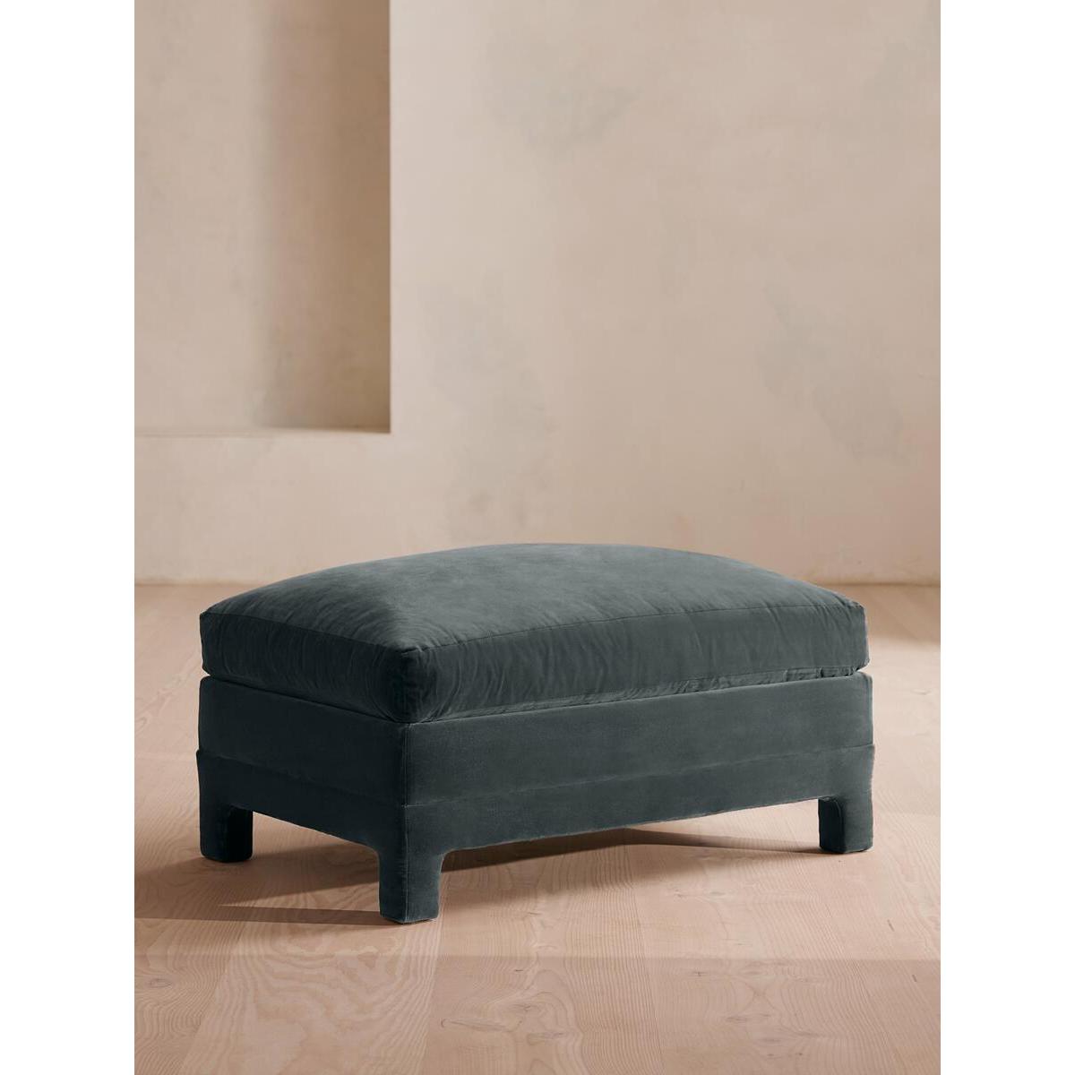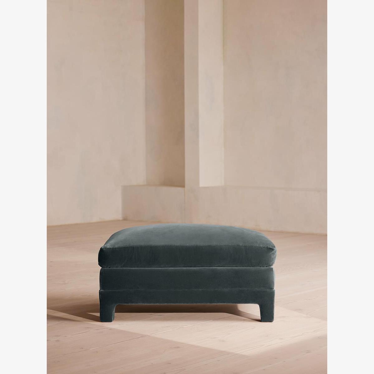 Ashford Ottoman, Velvet, Grey Blue
