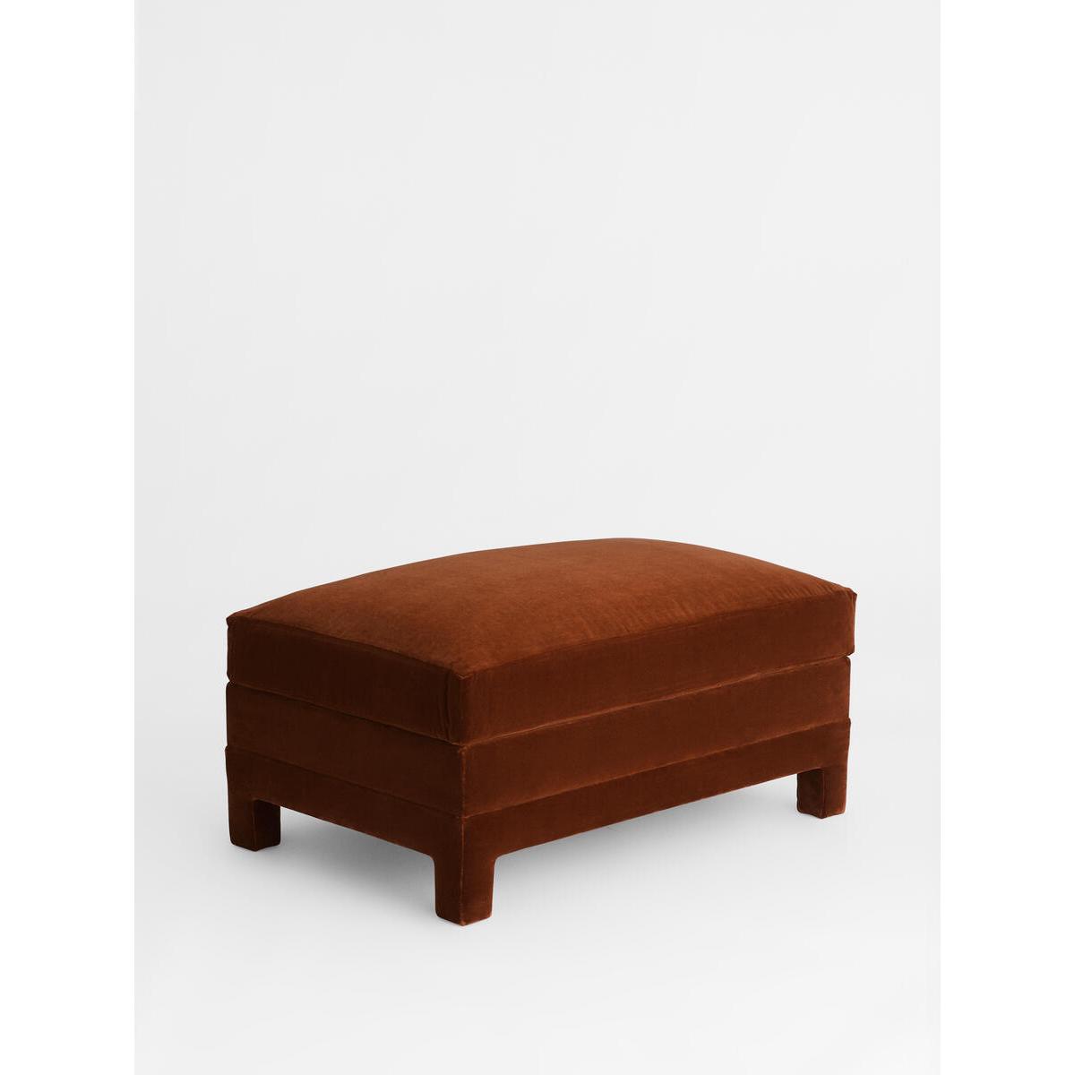 A great choice for a variety of living room schemes, the Ashfordottoman references the cosy seating areas at DUMBO House in. Brooklyn. Crafted from cotton velvet with beech legs, the ottomonis fully upholstered with a comfortable deep seat to contrast thestructured frame. Pair with the Ashford sofa for a coordinatedliving room aesthetic. 100% cotton velvet ottoman. Pair with Ashford sofa. Beech legs. Deep seat. Structured frame. Fully upholstered. Inspired by DUMBO House.