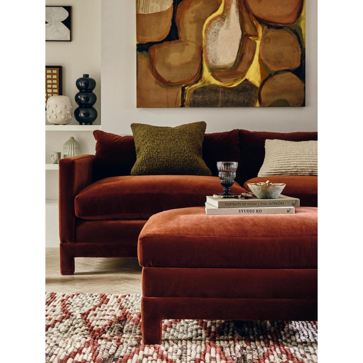I love the Ashford Ottoman in velvet for its rich, warm rust tone - it adds instant colour and texture to a neutral scheme. Its lush velvet finish elevates any space, making it perfect for luxe or contemporary interiors. This piece works well as a footrest, extra seating, or even a cosy spot for a tray with afternoon tea. For styling tips, try pairing it with deep, earthy colours like olive green or mustard for a layered look, or use it as a statement against cooler tones. It's versatile enough to suit both traditional and modern settings, and its size makes it easy to incorporate into smaller or open-plan living rooms. Keep accessories minimal to let the rich fabric take centre stage, or add a textured throw for extra comfort and visual interest.