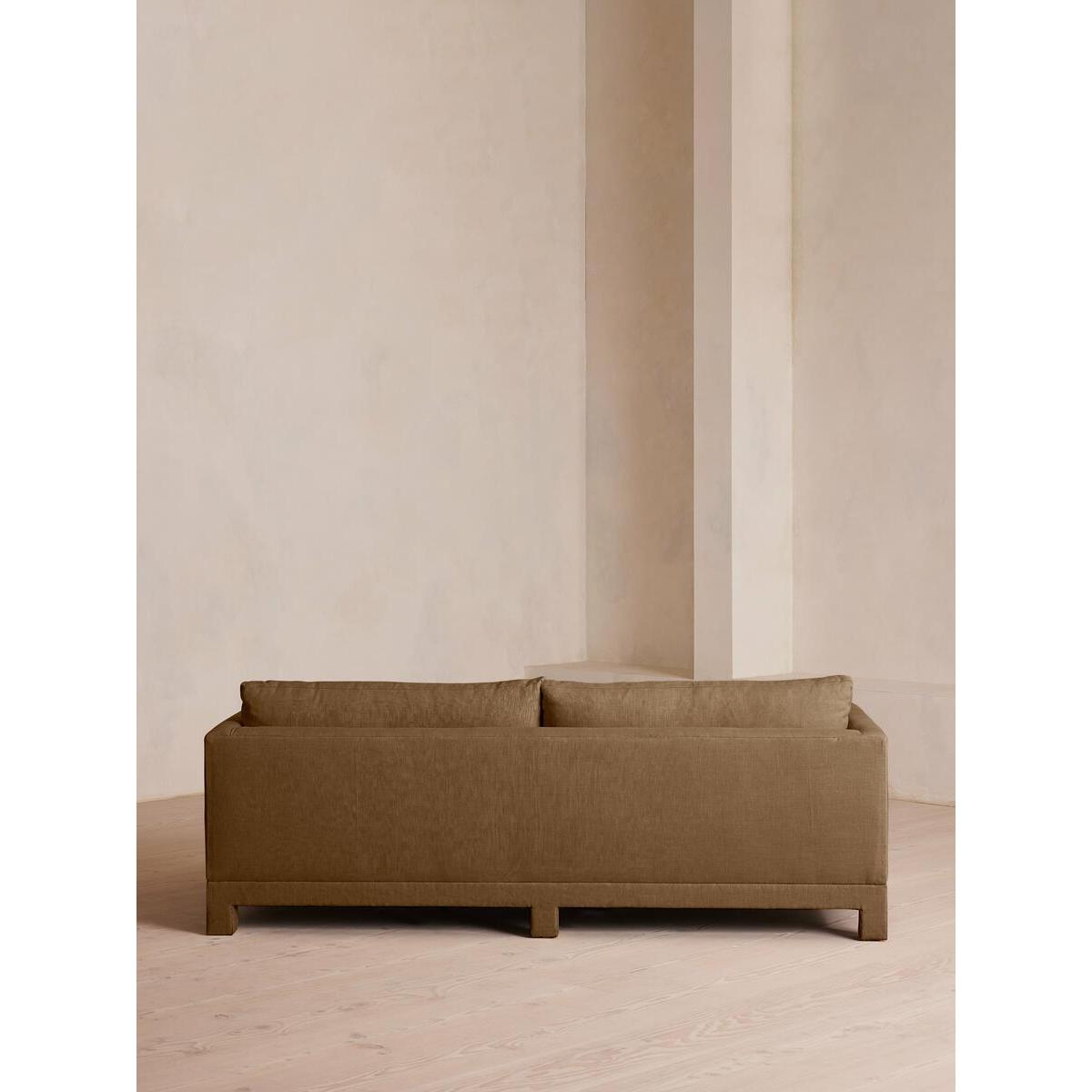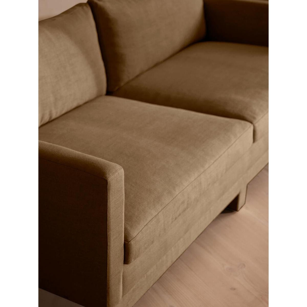 Our versatile Ashford sofa is made to suit a variety of living room interiors. Referencing the cosy seating areas of DUMBO House in Brooklyn, this three-seater style sits on beech legs and is fully upholstered in natural linen with a comfortable, deep seat that's great for kicking off your shoes and relaxing. Angular, structured arms lend a contemporary twist to this classic sofa design. Three-seater sofa Upholstered in 100% linen Available in other colours and fabrics Also available in velvet Deep seat Angular arms Beech legs Inspired by DUMBO House, Brooklyn