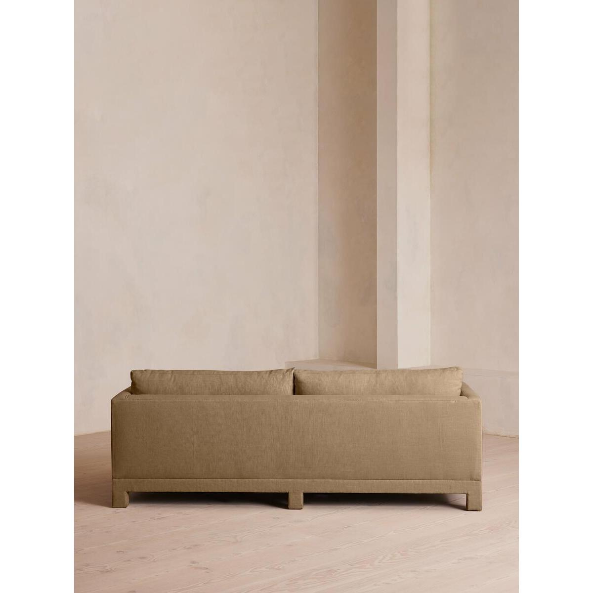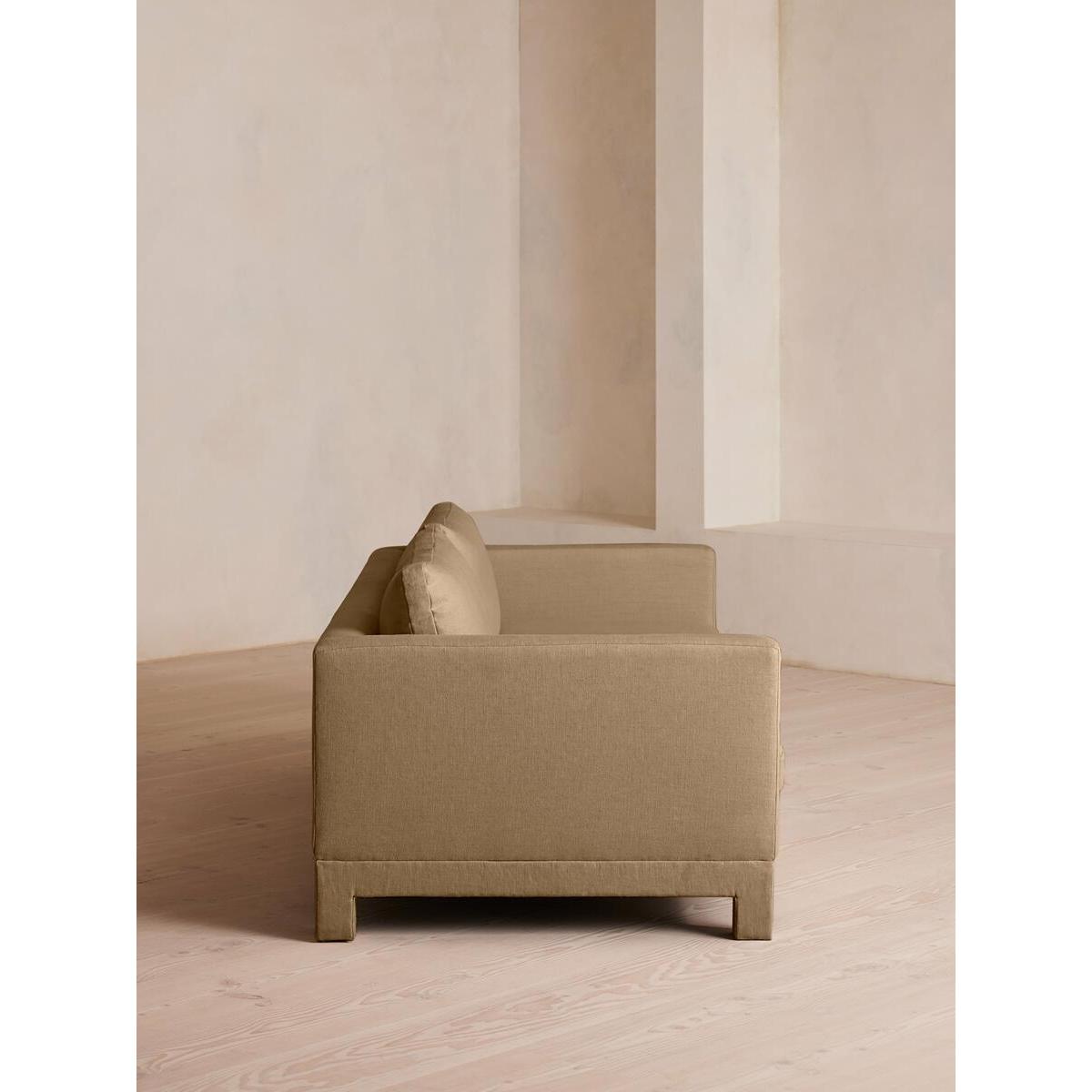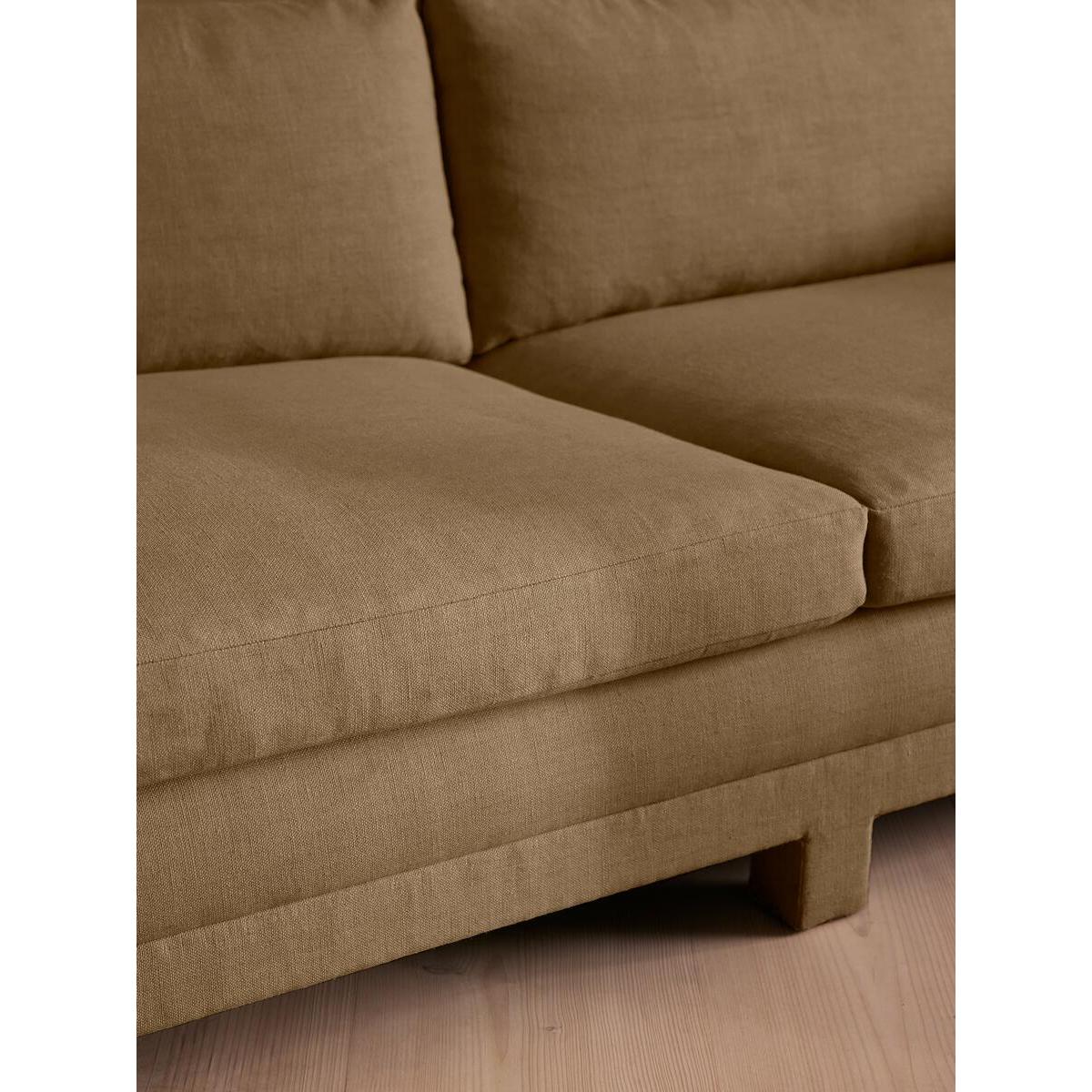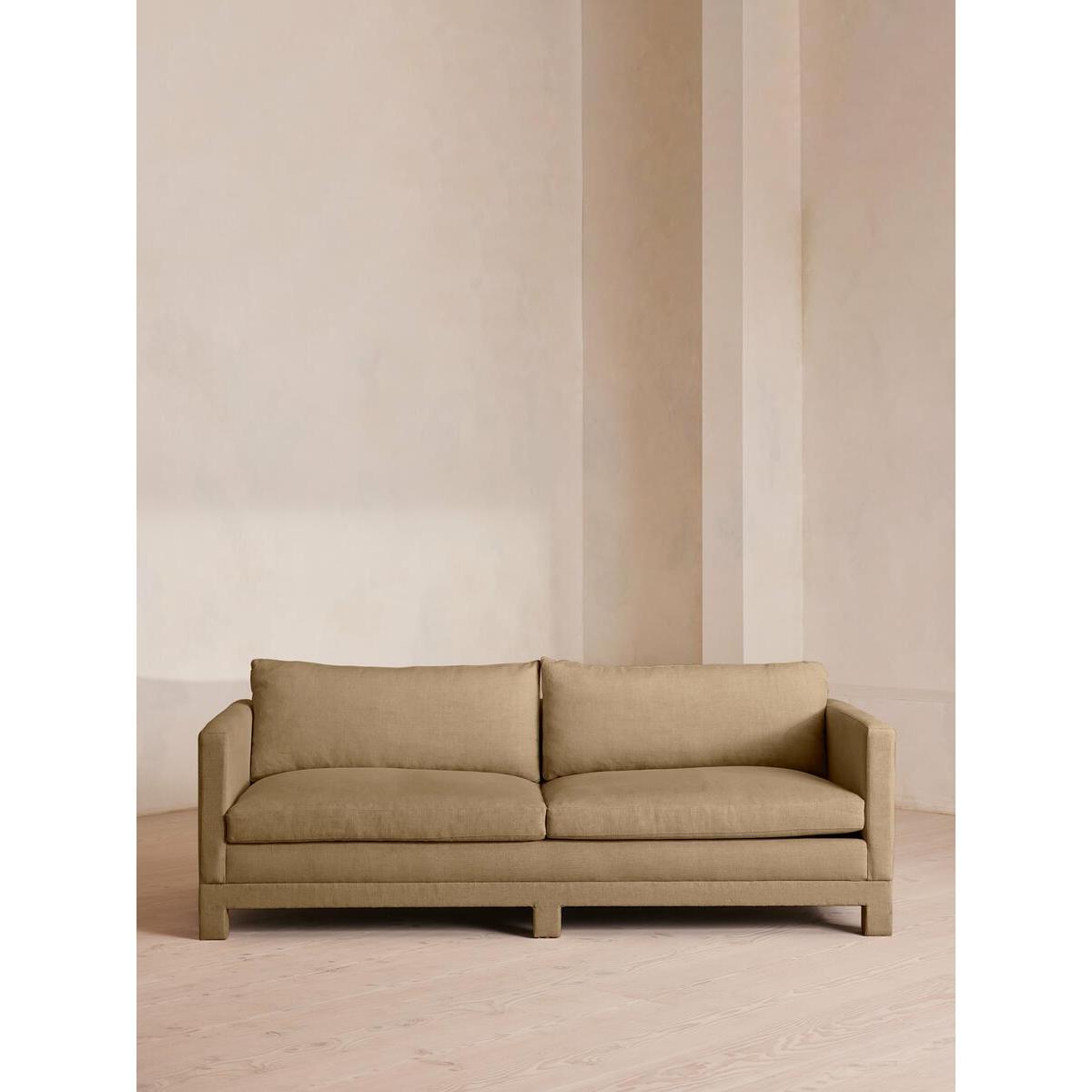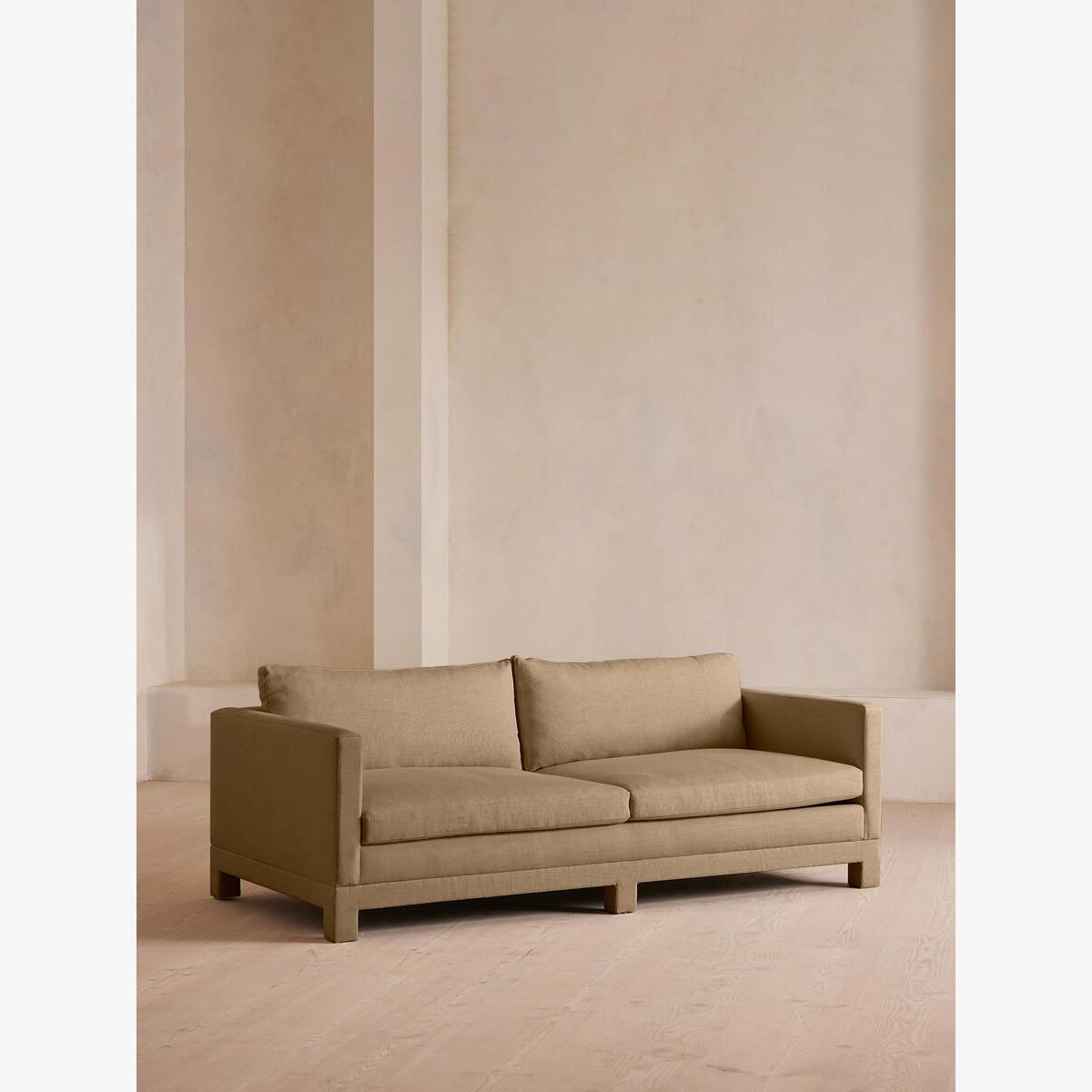 Our versatile Ashford sofa is made to suit a variety of living room interiors. Referencing the cosy seating areas of DUMBO House in Brooklyn, this three-seater style sits on beech legs and is fully upholstered in natural linen with a comfortable, deep seat that's great for kicking off your shoes and relaxing. Angular, structured arms lend a contemporary twist to this classic sofa design. Three-seater sofa Upholstered in 100% linen Available in other colours and fabrics Also available in velvet Deep seat Angular arms Beech legs Inspired by DUMBO House, Brooklyn