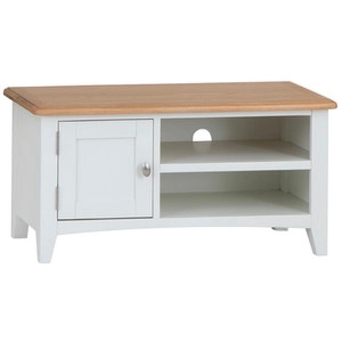 The Ashford Painted TV Unit is an Entertainment Unit that does so much more than add a little touch of the country way of life to your decor. By effortlessly contrasting brushed metal, white paintwork and of course the signature oak top, it provides a primary focal point that you’ll never grow tired of having in your home. The result is a homely, warm look and feels to the lounge that allows you to sit back and relax for hours on end as you take it all in at the end of a long day.