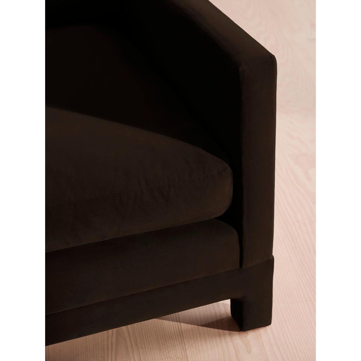 I’m a big fan of this two-seater for its deep chocolate velvet and neatly tailored frame - it feels both cosy and contemporary. The low, squared-off arms and sprung base give it a neat profile that works well in smaller living rooms or as part of an open-plan scheme. Styling-wise, it’s versatile: pair it with brass or matt black side tables and a sheepskin throw for a Scandi-inspired look, or add tactile linen cushions in ochre and stone for a warmer palette. Keep it out of direct sunlight to preserve the velvet, and vacuum lightly to maintain that plush finish.