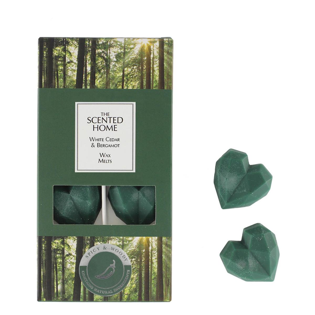 The Ashleigh & Burwood Scented Home White Cedar & Bergamot Wax Melts feature deep, invigorating base notes of mahogany and white cedarwood, enhanced by a warm core of spicy nutmeg and cinnamon. A zesty bergamot top note completes this rich and complex fragrance, adding a refreshing touch to your space. Part of The Scented Home collection, this product allows you to enjoy your favorite scents in a meltable wax format. Each box contains 8 heart-shaped melts, with each melt providing up to 10 hours of fragrance, totaling 80 hours of incredible scent. Perfect for creating a welcoming and fragrant atmosphere in any room. Fragrance Notes -  Mahogany, White Cedarwood, Nutmeg, Cinnamon, Bergamot Each heart melt has up to 10 hours burn time 8* 8g wax melts