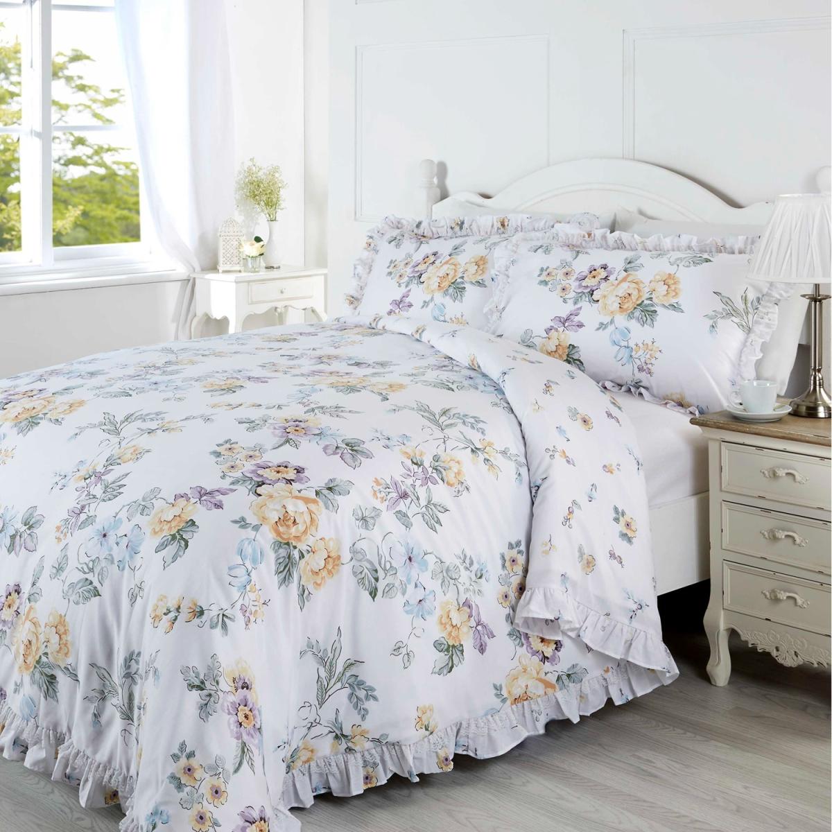 Ashleigh Floral Polycotton Duvet Set With Pillowcase - Lemon