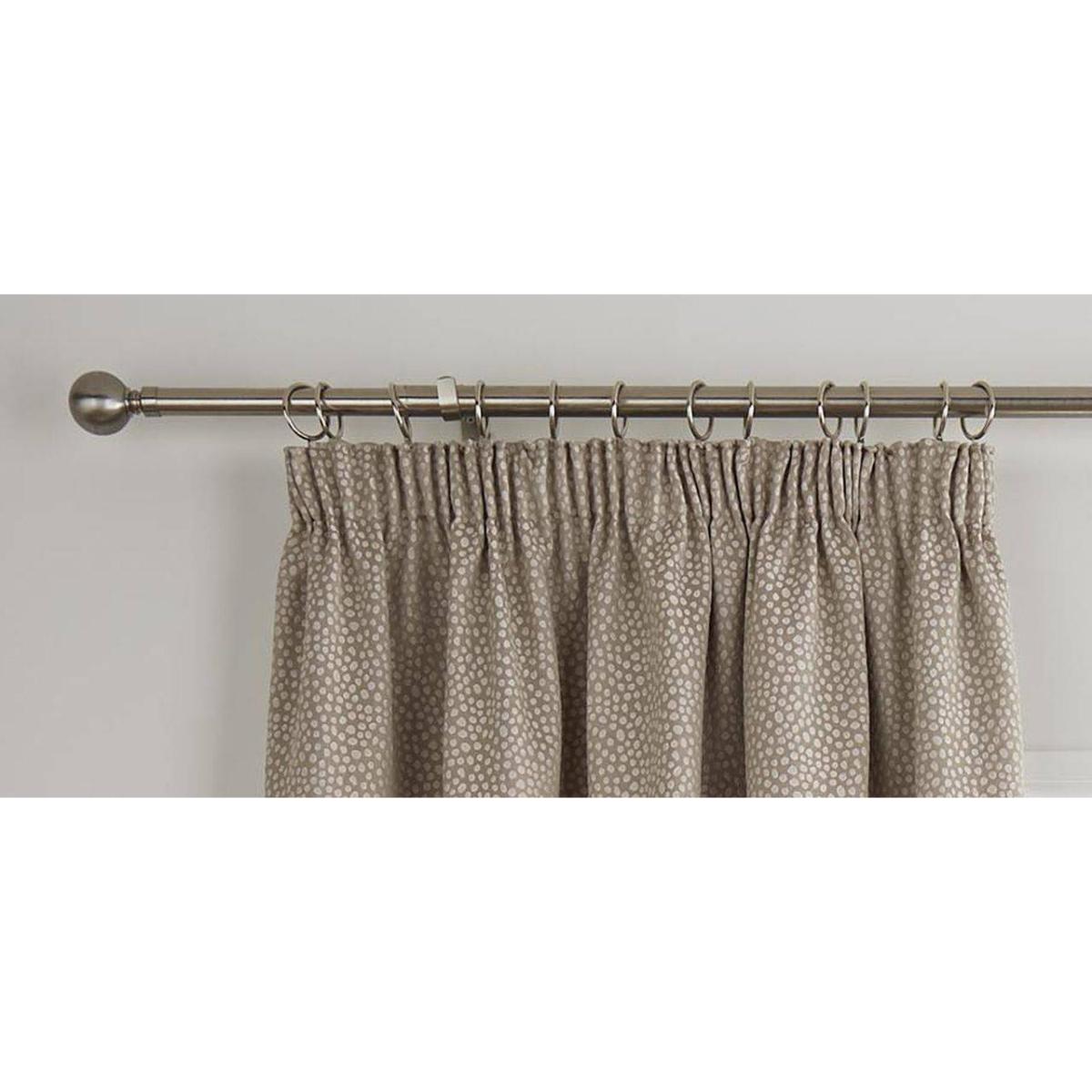 Presented in a soft stone hue, this subtle textured curtain design on a pencil pleat header is a smart and contemporary addition to enhance any room. The blackout lining perfectly finishes off these elegant curtains, this feature is ideal not only for keeping out light but also helps to regulate the room temperature. These curtains have a composition of 98% polyester and 2% elastane. Blackout lining Dry clean only Tie Backs sold separately