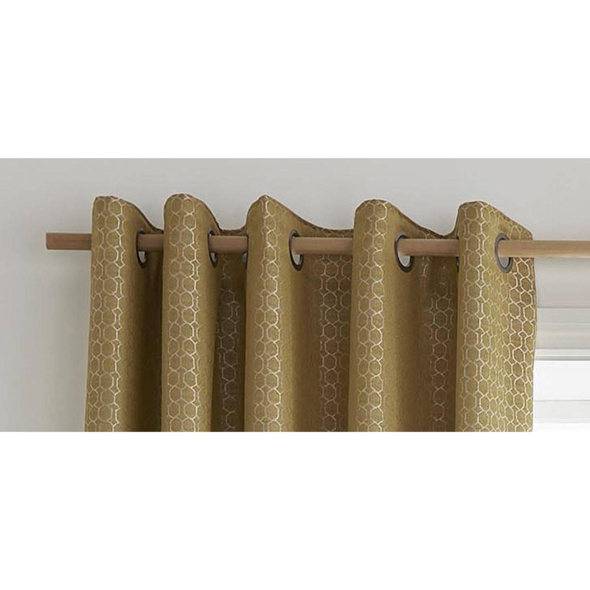 Whether you are looking to introduce a pop of ochre colour to your room or transform your space completely, this subtle geometric detail eyelet curtain is a beautiful addition to your home. The blackout lining perfectly finishes off these contemporary curtains, this feature is ideal not only for keeping out light but also helps to regulate the room temperature. These curtains have a composition of 100% polyester Blackout lining Dry clean only