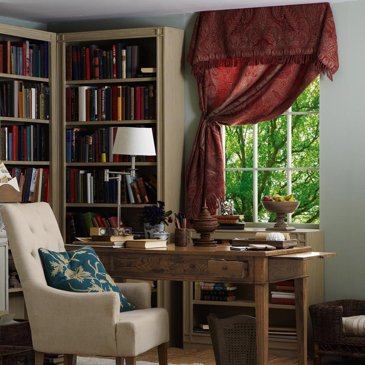 I really like the Ashmolean tall bookcase in flax; its classic wooden design offers a versatile and timeless look that suits a variety of interiors. It works especially well in traditional and farmhouse styles, but its neutral finish makes it easy to incorporate into contemporary or Scandinavian spaces as well. Practical styling tips include grouping books by colour or size for visual interest, and layering decorative objects, plants, or vintage accessories on the shelves to break up the storage and add personality. Because of its tall, slender profile, it’s great for maximising vertical space in smaller rooms or corridors, making it both functional and attractive as a focal point in a reading nook or home office.