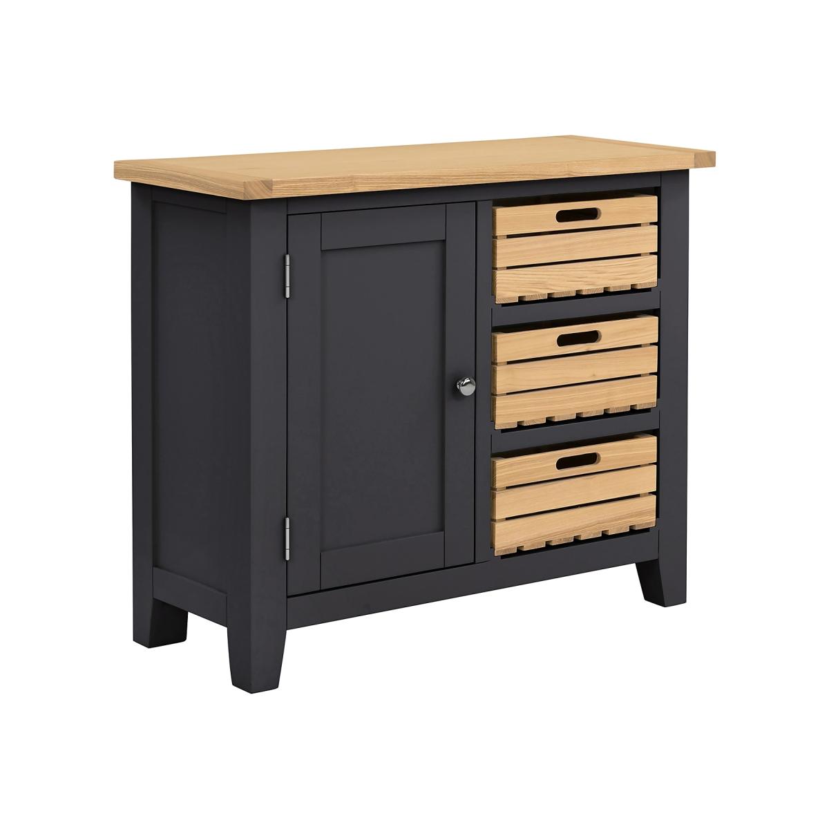 Effortlessly stylish. When we designed this collection, we channelled the look of a charming cottage in the Cotswolds. We've taken that farmhouse style and modernised it. Say hello to our Ashstead range. This two-tone sideboard boasts a thick oak top and chunky charcoal frame to give the unit both presence and stability. With a cupboard and 3 crates, it will really up your storage game. Keep crockery, board games and blankets tucked neatly out of sight, then use the top to show off some of your favourite trinkets. The stand-out feature of this sideboard has got to be the solid oak crates. They offer a wonderful contrast to the painted frames and give you a quaint way to store your belongings.