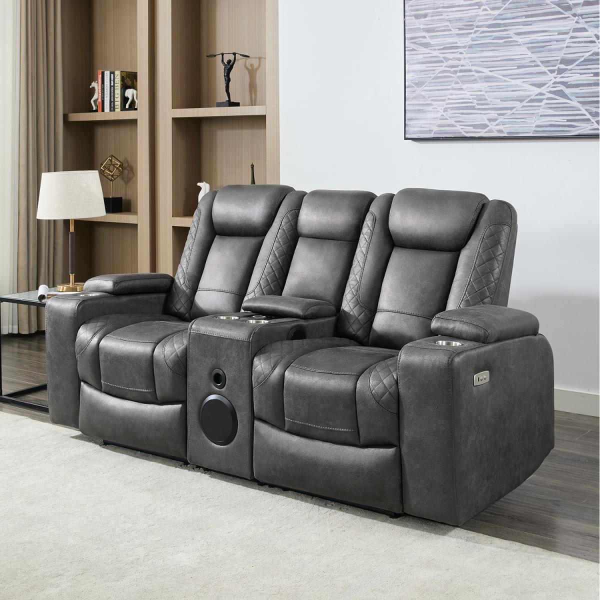 Experience the perfect blend of luxury and technology with the Ashton Electric Recliner 2 Seater Sofa designed to redefine modern comfort. Upholstered in premium Technology Fabric, this sofa is not only soft to the touch but also has the appearance and feel of leather, whilst being highly durable and easy to maintain. The Ashton features an electric recliner mechanism on each side, allowing each person to effortlessly adjust their seating position at the touch of a button. The central console takes convenience to the next level, equipped with wireless charging, USB and USB C ports, an Aux port, plus 2 cupholders, ensuring everything you need is at your fingertips. Hidden storage within the console keeps your space tidy while keeping essentials close at hand. Integrated Bluetooth speakers, controlled directly from the centre console, deliver immersive sound, perfect for movie nights, gaming, or relaxing to your favourite tunes. Whether you are entertaining or unwinding, the Ashton Electric Recliner 2 Seater Sofa combines cutting edge features with luxurious comfort to create the ultimate centrepiece for your living space. Available in sophisticated brown or sleek grey to suit any decor.