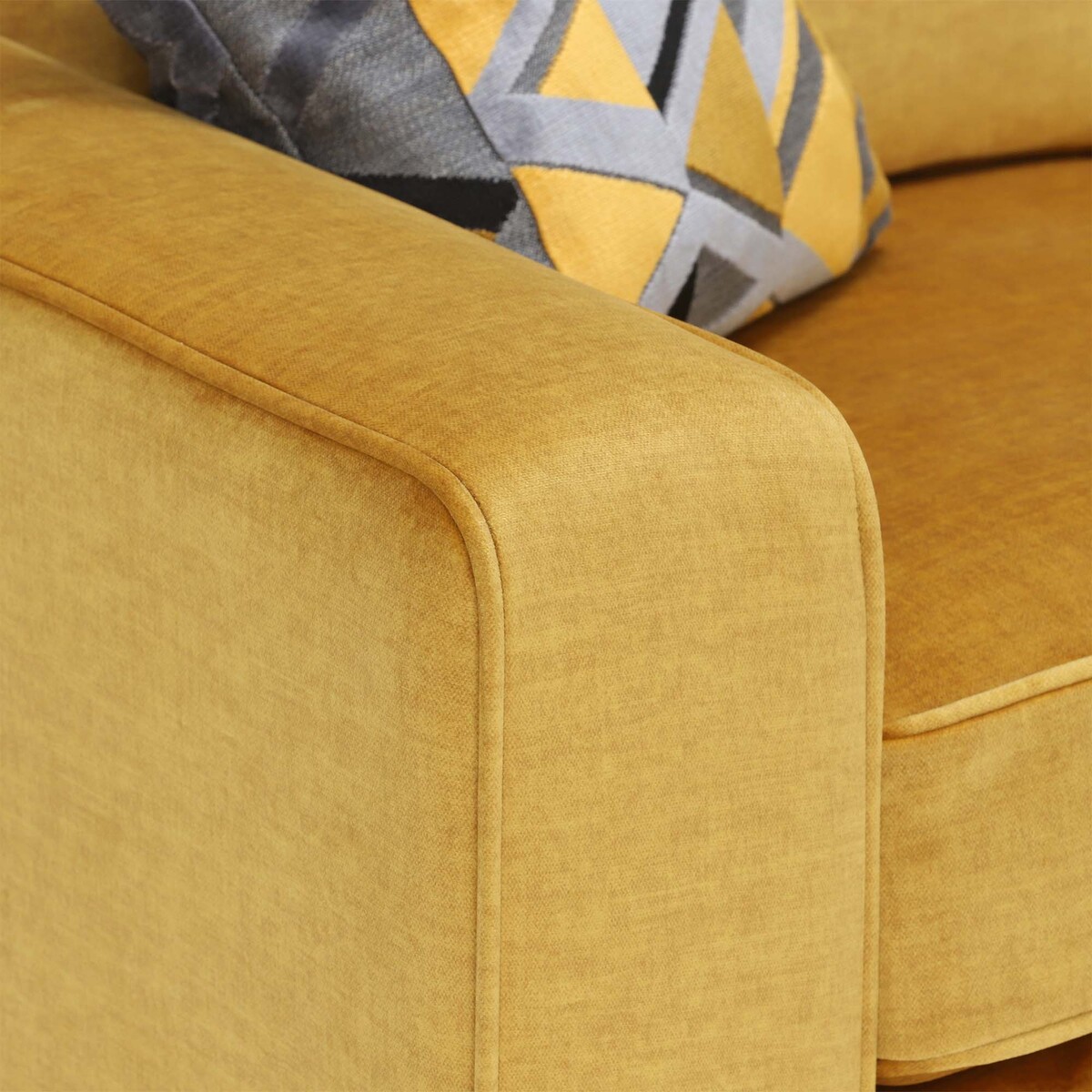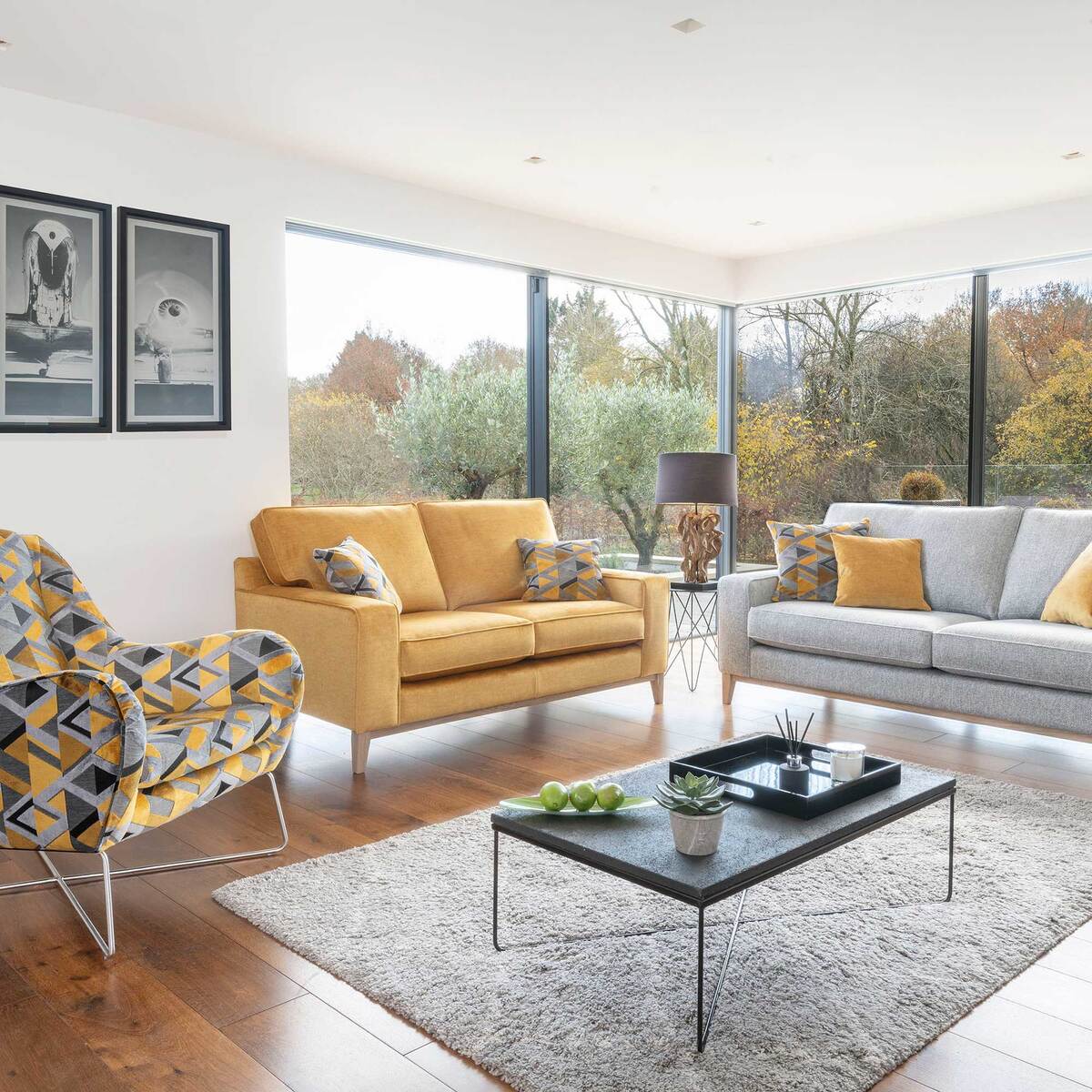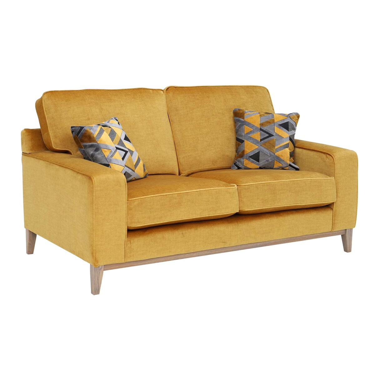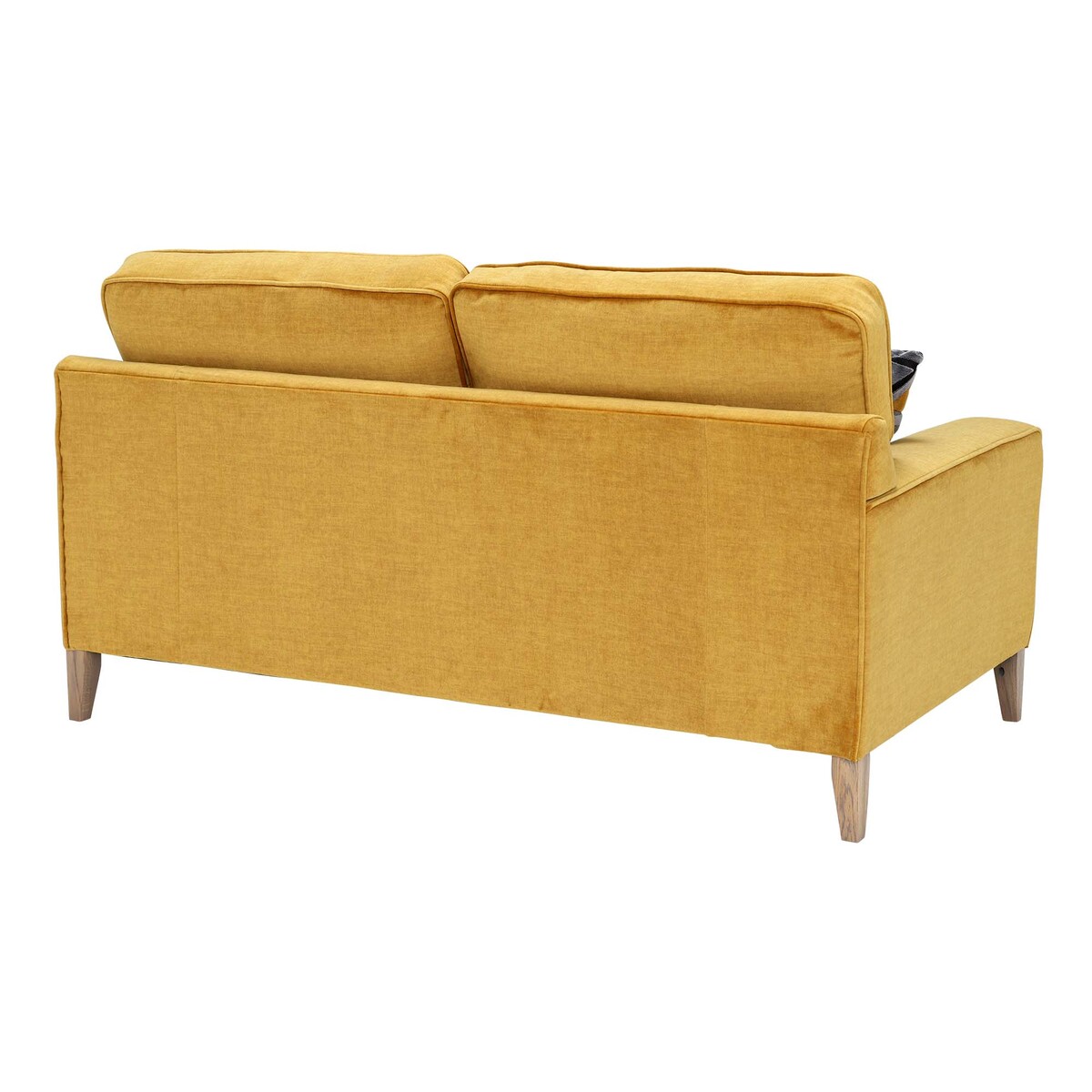 I love this sofa for its bold mustard hue, which works especially well in both modern and eclectic interiors. Its compact two-seater design makes it ideal for smaller living rooms or as a statement piece in a larger space. To style it effectively, I recommend pairing it with neutral or contrasting cushions to add visual interest, much like the patterned ones shown. It can be complemented with layered textures, such as a cosy rug or soft throws, to create a welcoming feel. Practical tip: its clean lines and timeless shape mean it pairs well with both sleek contemporary furniture and more vintage-inspired pieces, offering flexibility for different interior schemes.