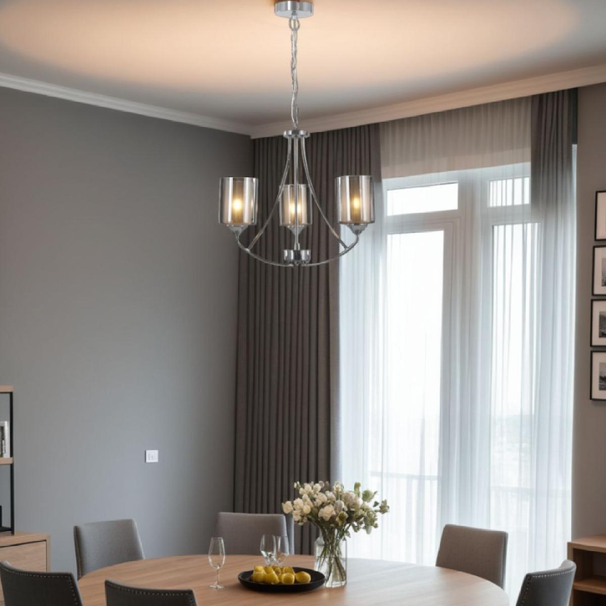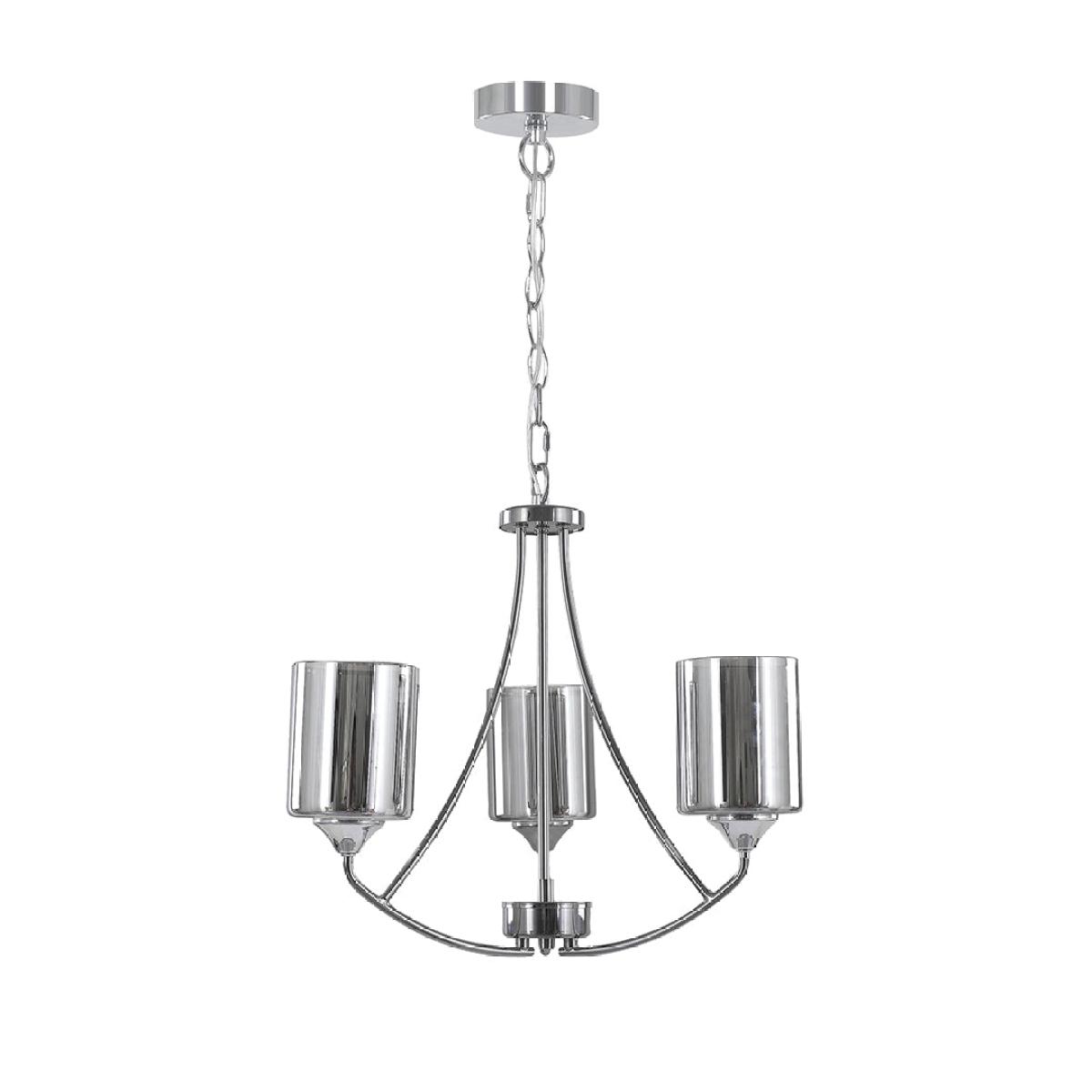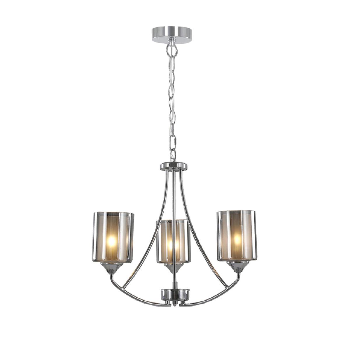 Illuminate your space with the timeless elegance of the Ashton 3-Light Polish Chrome Ceiling Light. This chandelier-style fitting boasts a sleek polished chrome finish and features three gracefully curved arms, each adorned with a double glass shade. The outer shade exudes a chic chrome smoke hue, while the inner shade is frosted to beautifully diffuse the light and create a soft, warm glow in any room. With its luxurious design and impeccable craftsmanship, this ceiling light is sure to add a touch of sophistication to your home decor. This lighting fixture is also available in a larger size. Illuminate your space with the timeless elegance of the Ashton 3-Light Polish Chrome Ceiling Light. This chandelier-style fitting boasts a sleek polished chrome finish and features three gracefully curved arms, each adorned with a double glass shade. The outer shade exudes a chic chrome smoke hue, while the inner shade is frosted to beautifully diffuse the light and create a soft, warm glow in any room. With its luxurious design and impeccable craftsmanship, this ceiling light is sure to add a touch of sophistication to your home decor. This lighting fixture is also available in a larger size.