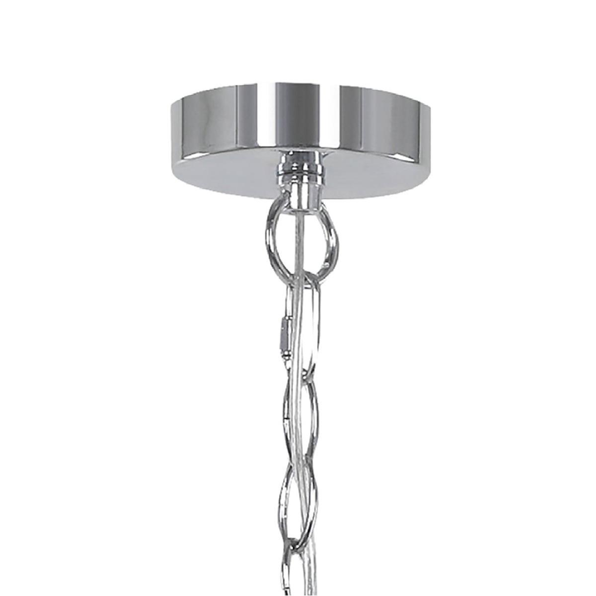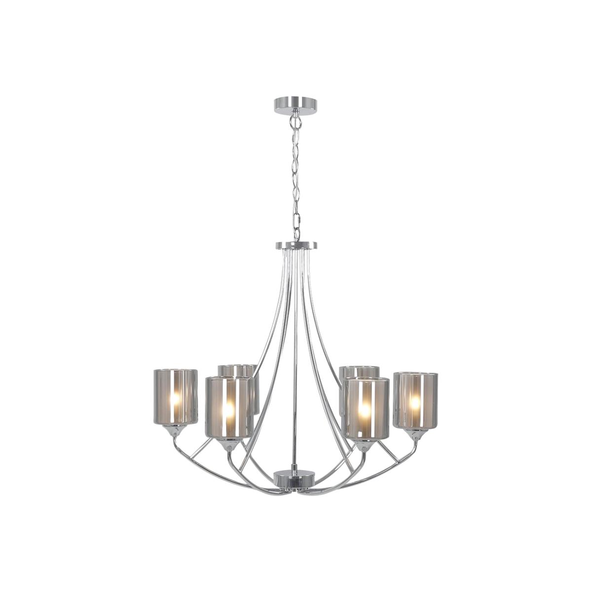 Illuminate your space with the timeless elegance of the Ashton 6-Light Polish Chrome Ceiling Light. This chandelier-style fitting boasts a sleek polished chrome finish and features three gracefully curved arms, each adorned with a double glass shade. The outer shade exudes a chic chrome smoke hue, while the inner shade is frosted to beautifully diffuse the light and create a soft, warm glow in any room. With its luxurious design and impeccable craftsmanship, this ceiling light is sure to add a touch of sophistication to your home decor.. This lighting fixture is also available in a smaller size.