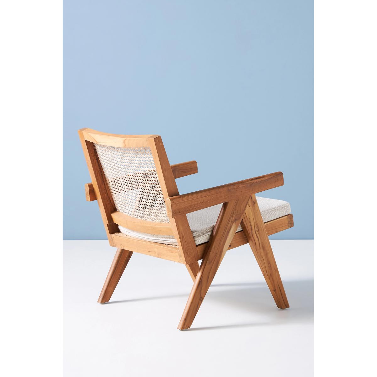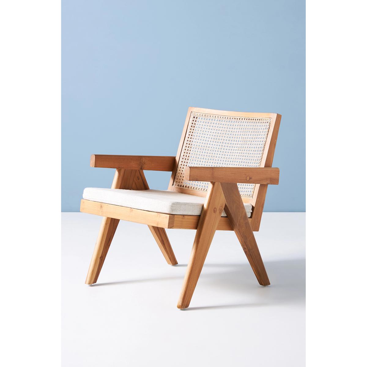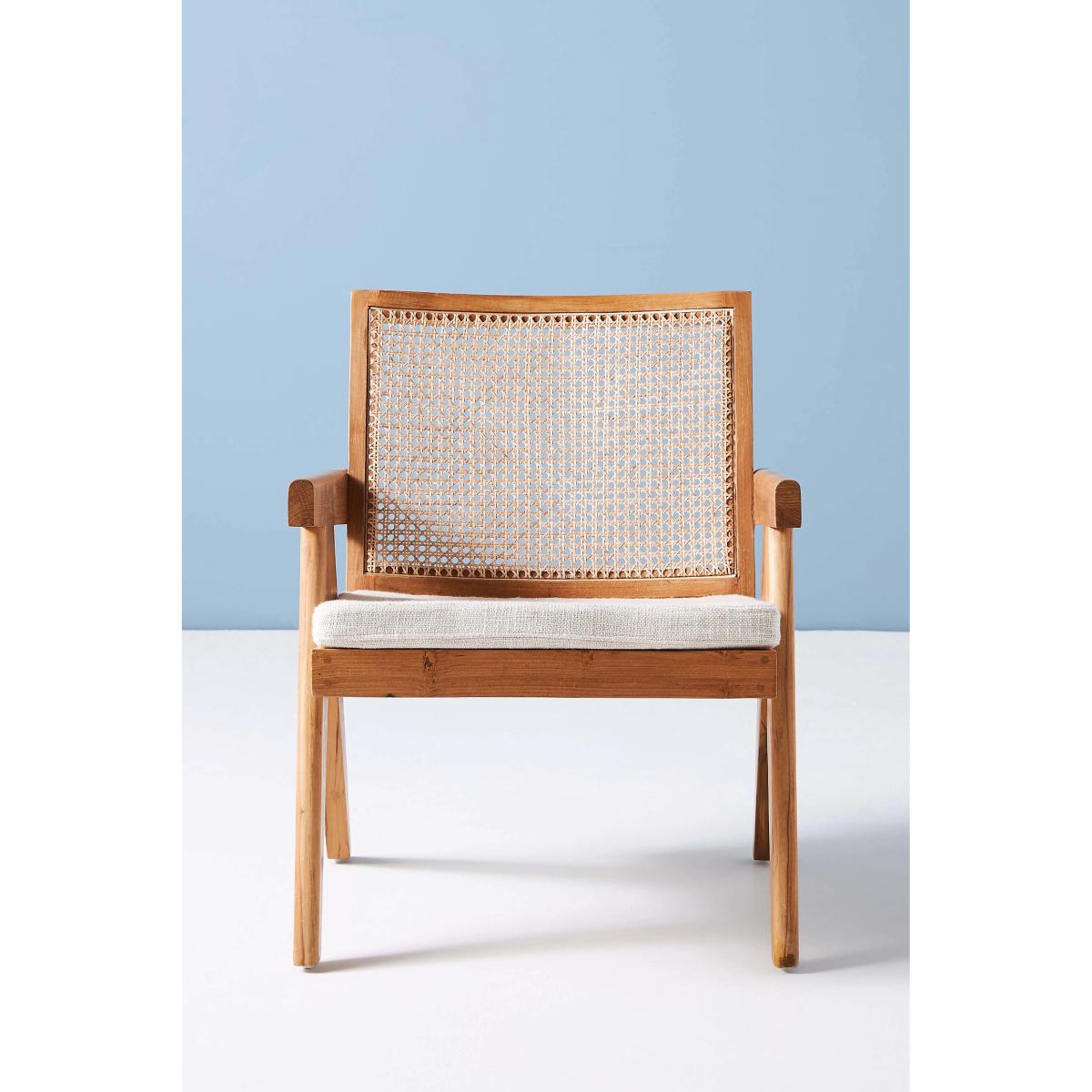 Bring a sense of the outdoors inside with this reclaimed teak wood accent chair. Featuring a caned back and a sculptural silhouette that showcases its natural grain patterns, it's well-suited for sun rooms, reading nooks, and minimalist living spaces. Ashton Caned Teak Accent Chair by Anthropologie in Beige